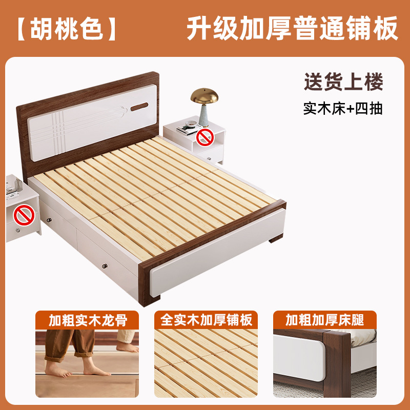• [월넛 컬러] 원목 침대, 넓고 두꺼워진 침대판 + 10CM 브라운 매트 + 서랍 4개 [위층 패키지 설치]