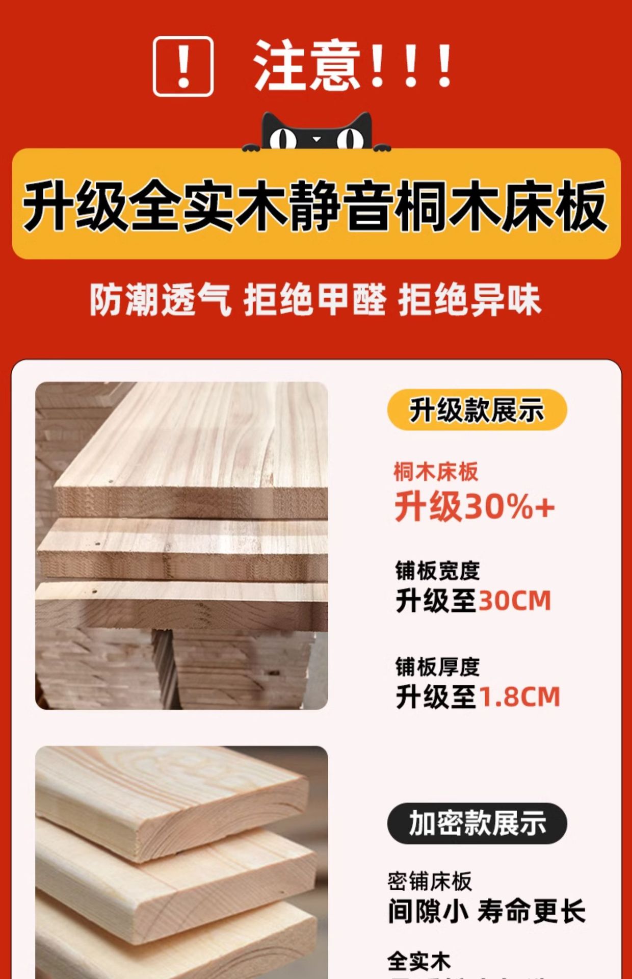 • [월넛 컬러] 원목 침대, 넓고 두꺼워진 침대판 + 10CM 브라운 매트 + 캐비닛 1개 [위층 패키지 설치]