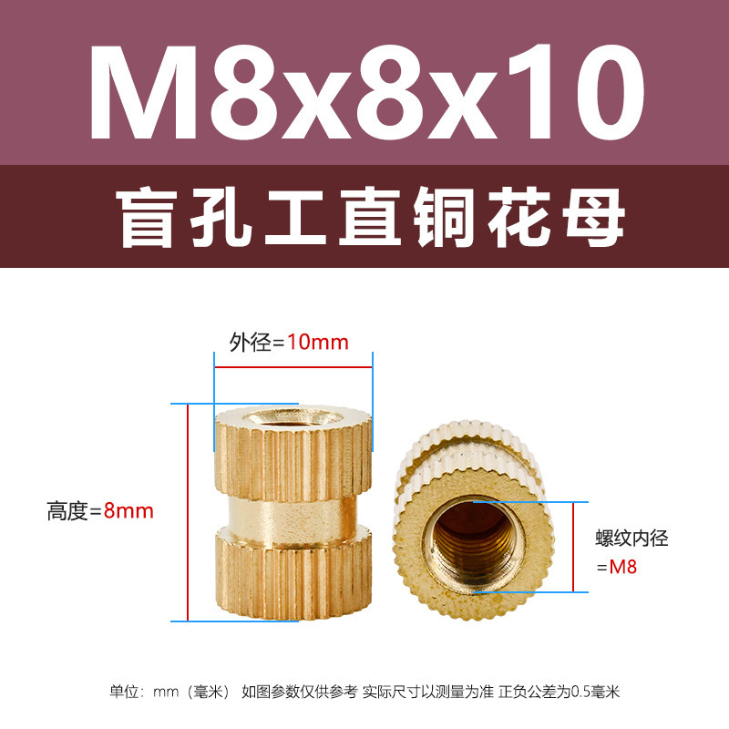• M8*8*10(막힌 구멍 직선 구리 꽃 어머니)