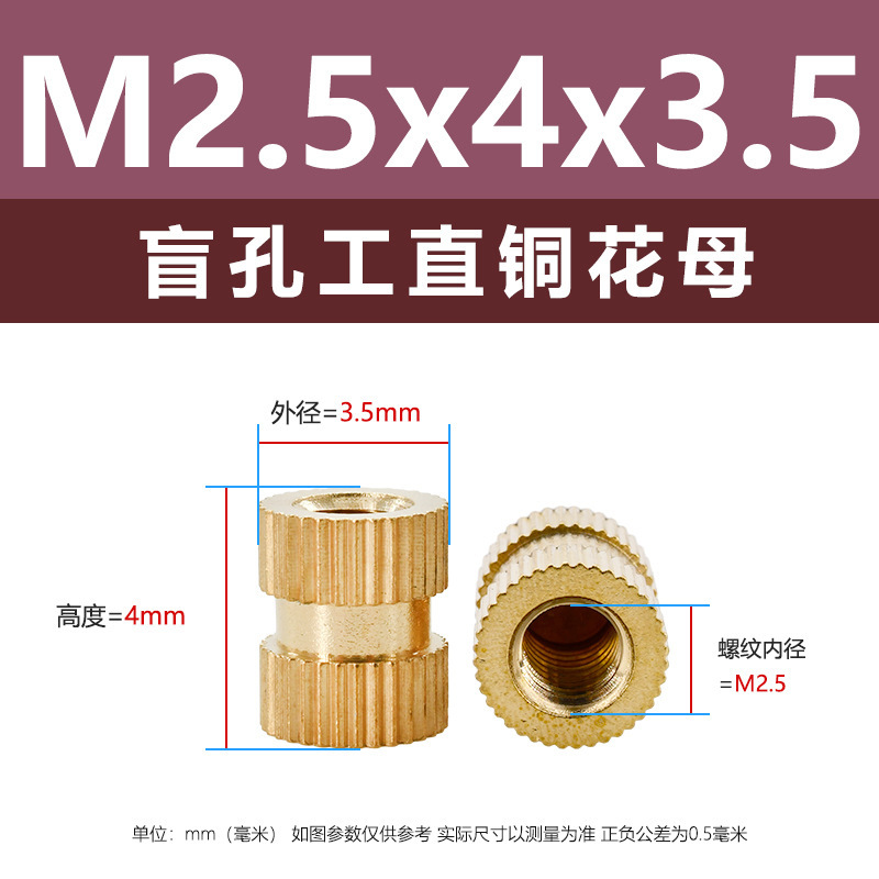 • M2.5*4*4(막힌 구멍, 직선 구리 꽃 어머니)