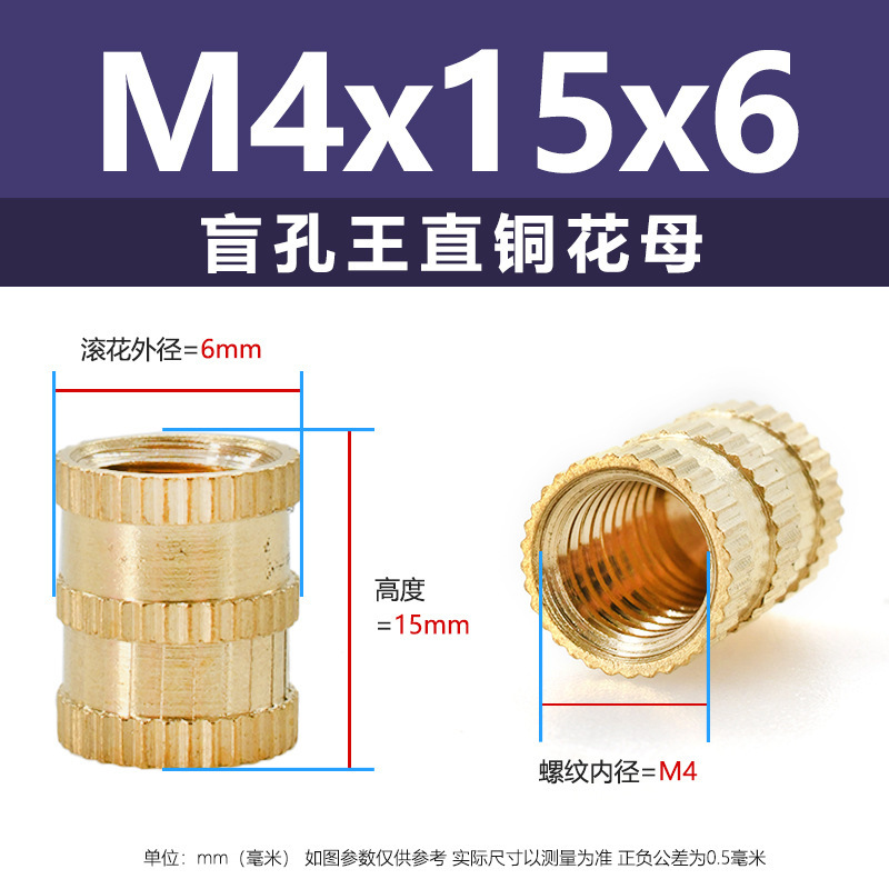 • M4*15*6(막힌 구멍 왕 직선 구리 꽃 어머니)