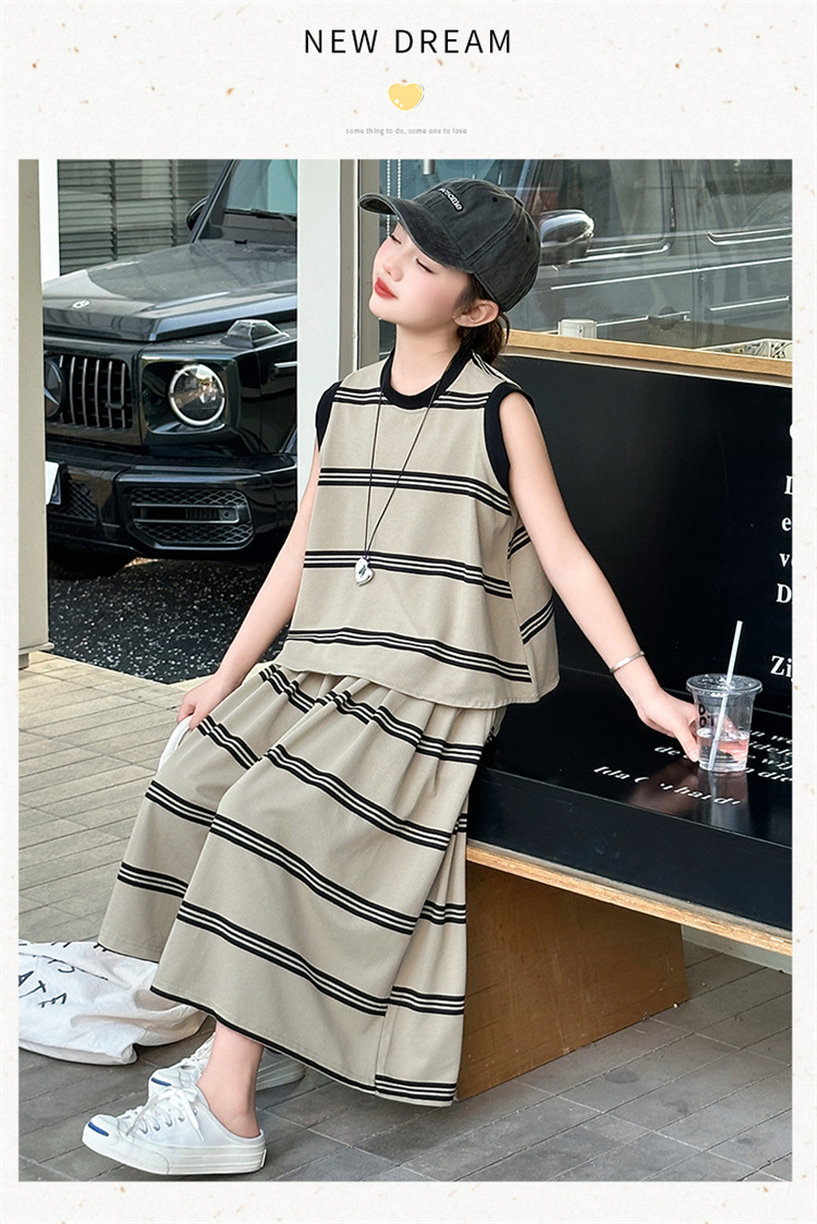 여자 스포츠 세트 2025 새로운 스타일 유행 반팔 어린이 캐주얼 여름 빅 보이 걸스 투피스 유행 세트