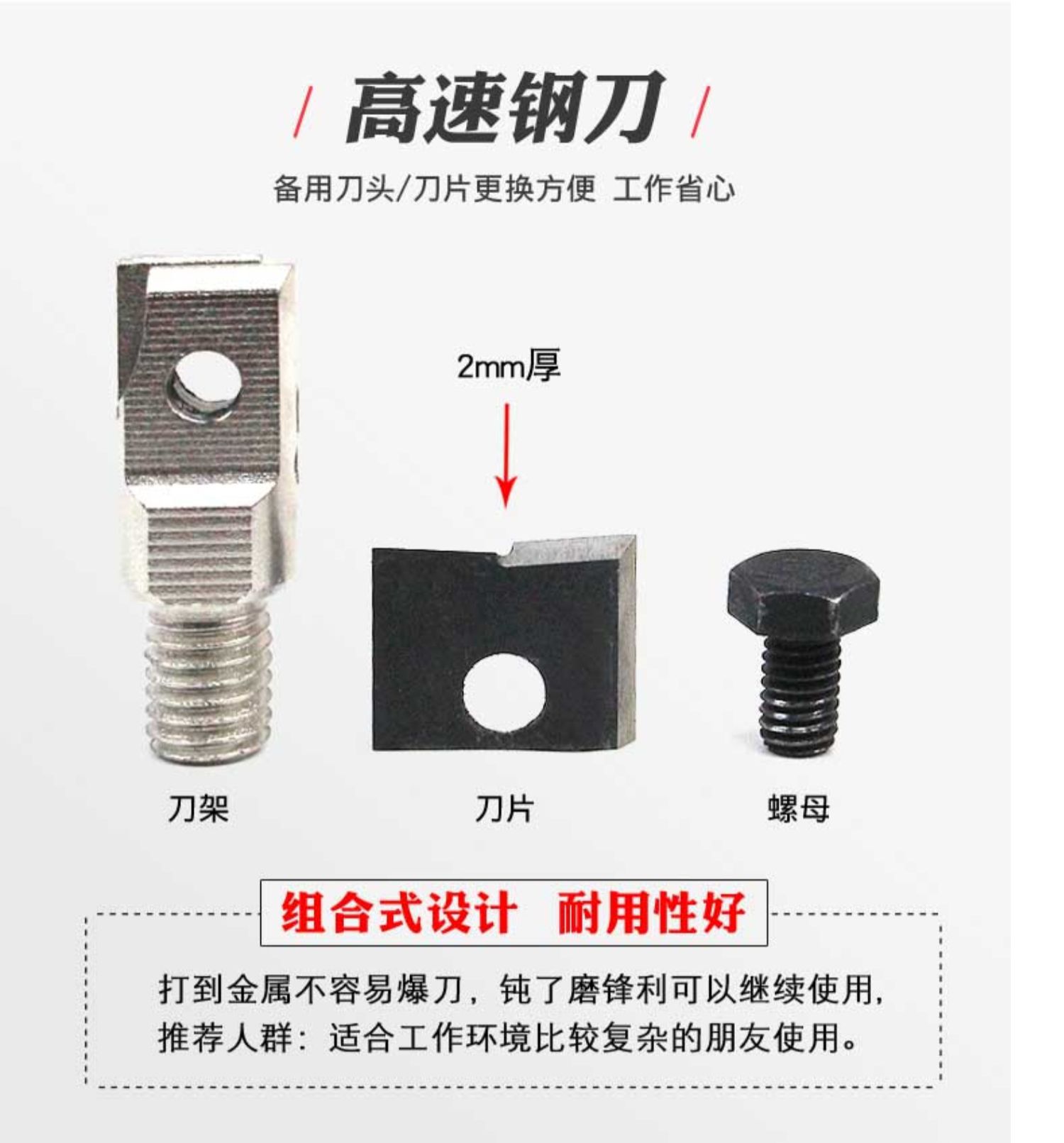 • 20mm 목재 및 알루미늄 이중 목적 고속 강철 칼(교체 가능한 칼날)