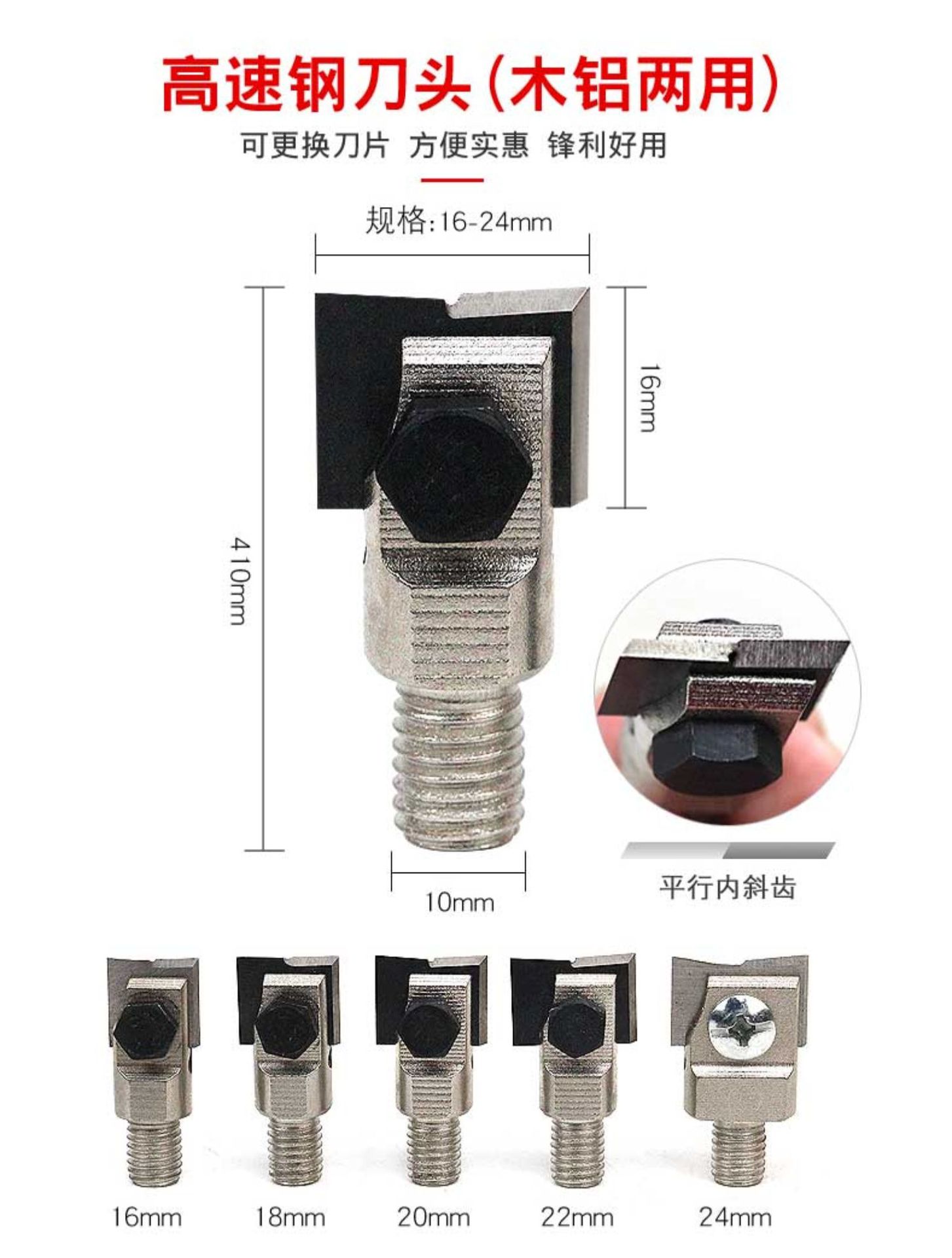• 16mm 목재 및 알루미늄 이중 목적 고속 강철 칼(교체 가능한 칼날)