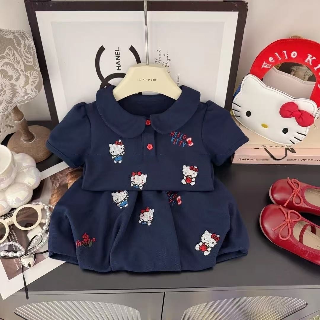 Tongxingyuan 소녀 2025 여름 새로운 한국 만화 전체 인쇄 자수 인형 칼라 외국 스타일 폴로 세트 여름