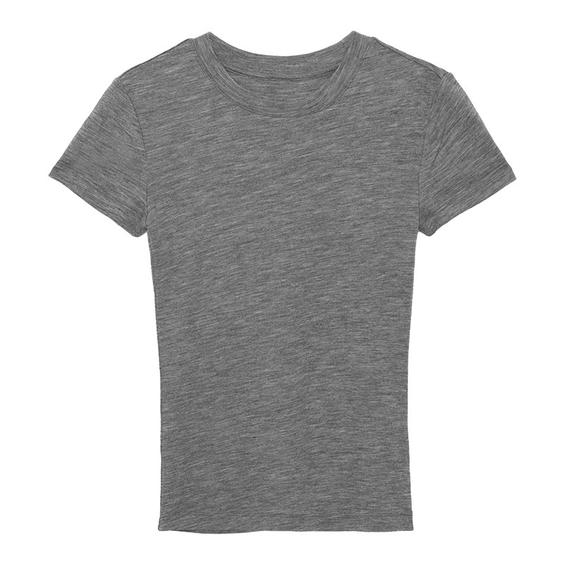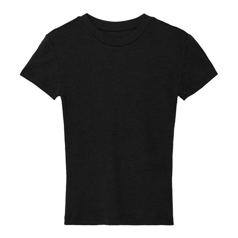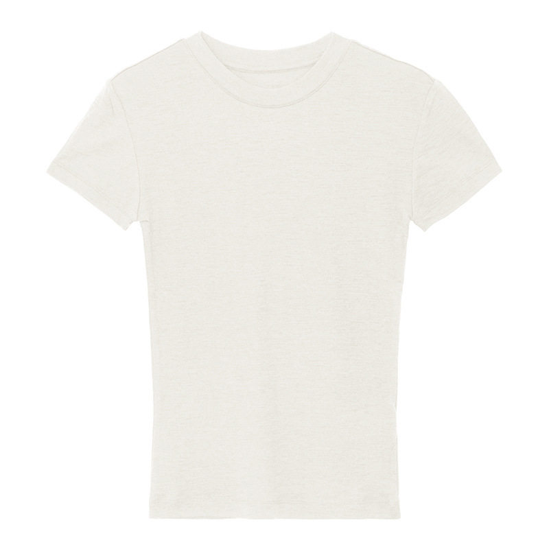 텐셀 울 어깨 반팔 티셔츠 기본 색상 간단한 올 매치 베이스 셔츠 편안한 통기성 슬리밍 탑