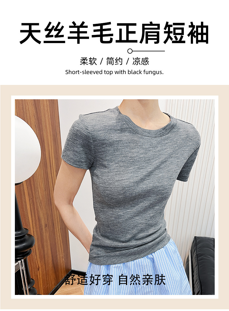 텐셀 울 어깨 반팔 티셔츠 기본 색상 간단한 올 매치 베이스 셔츠 편안한 통기성 슬리밍 탑스토어 가기