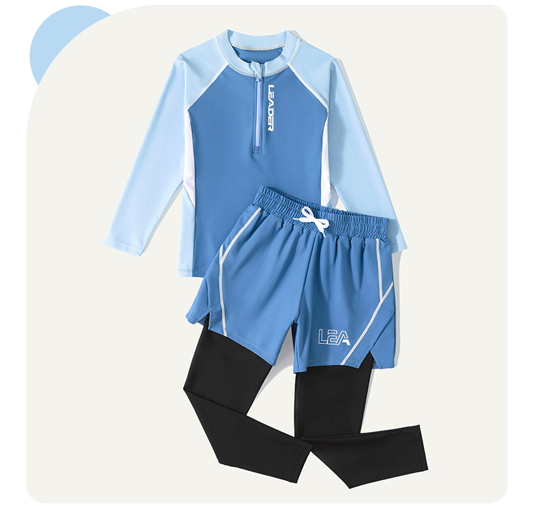 어린이 수영복 소년 분할 수영복 2025 뉴 보이즈 빅 보이 전문 태양 보호 훈련 온천 수영복