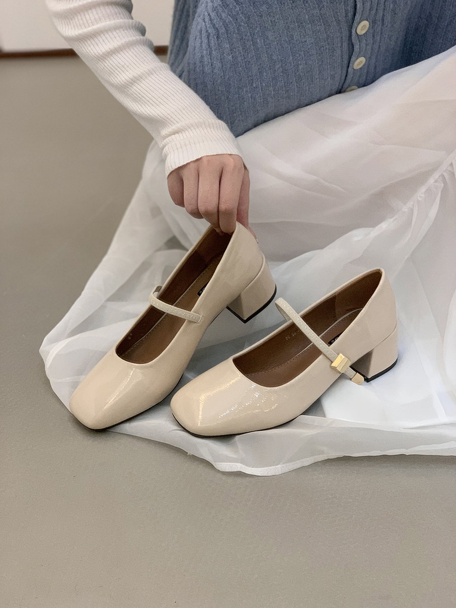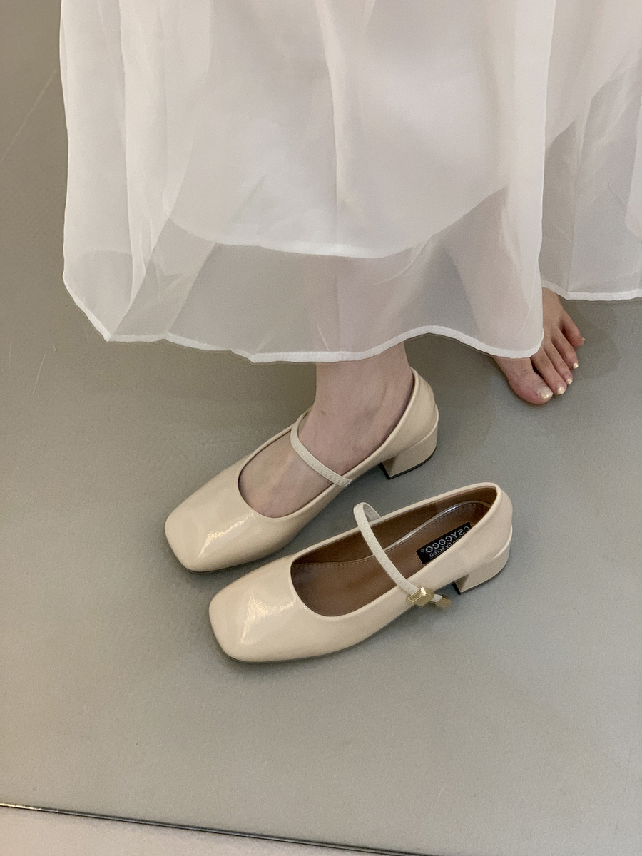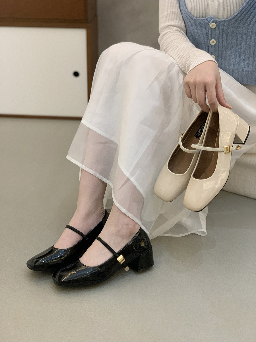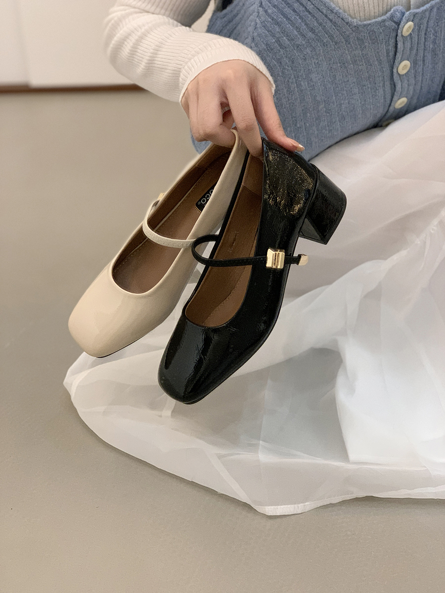 하이 엔드 스퀘어 토 블랙 메리 제인 슈즈 2025 봄 신상 프렌치 복고 기질 하이힐 두꺼운 굽 작은 가죽 신발스토어 가기