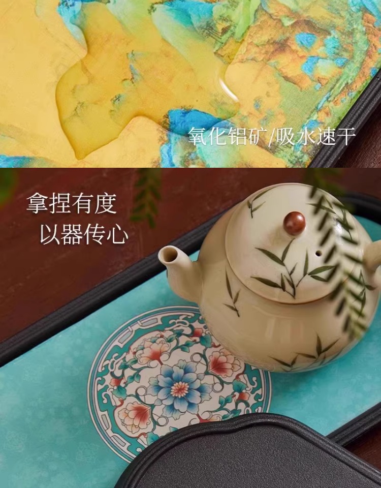 새로운 중국식 선(禪) 스타일 1인용 소형 티 테이블, 복고풍의 절묘한 티 트레이, 티 트레이, 티컵 매트, 흡수성 차 세트, 건조 티 테이블