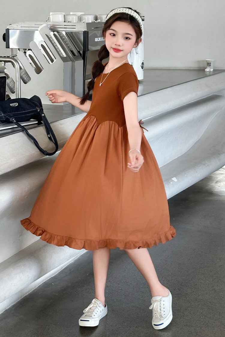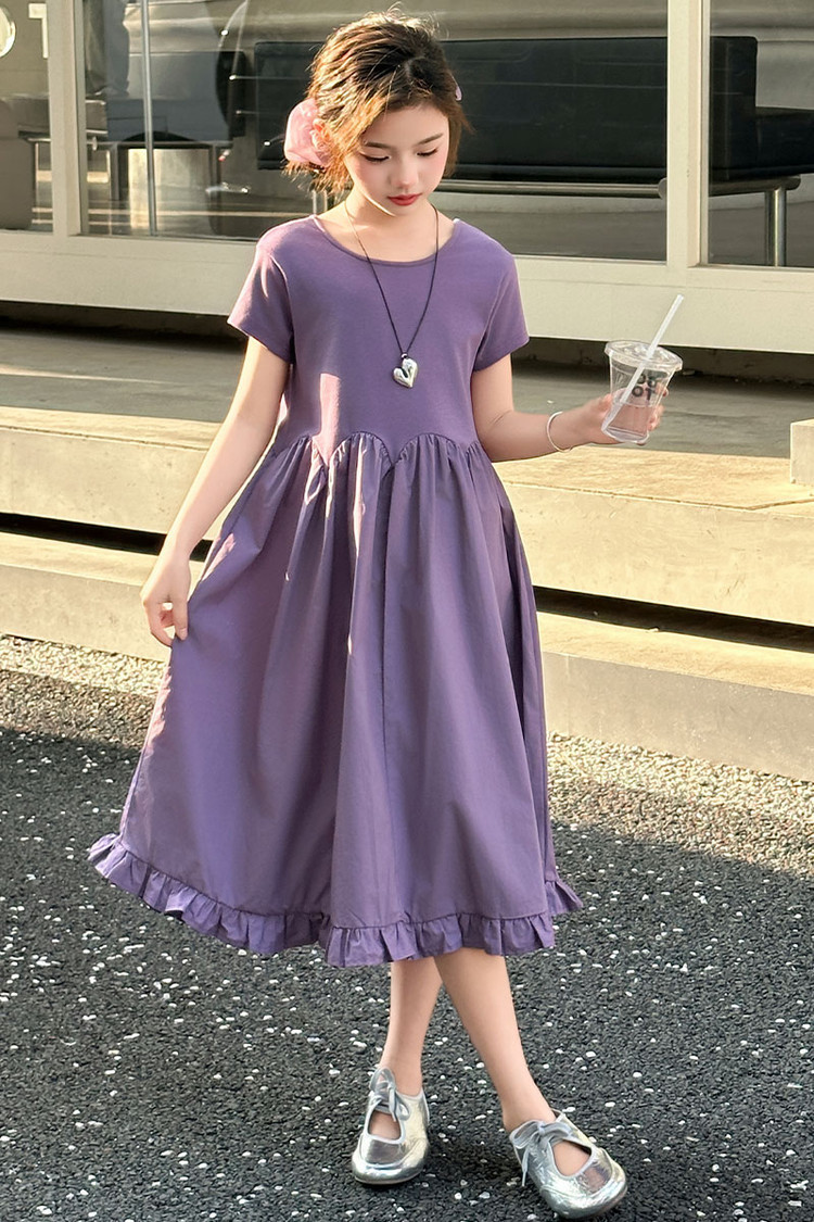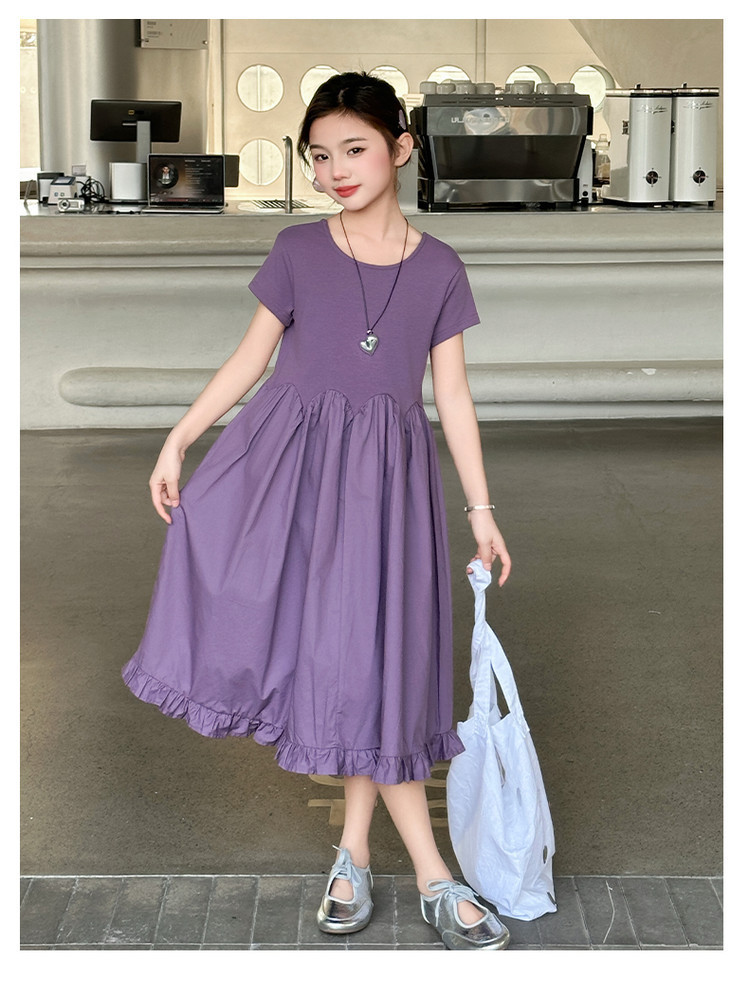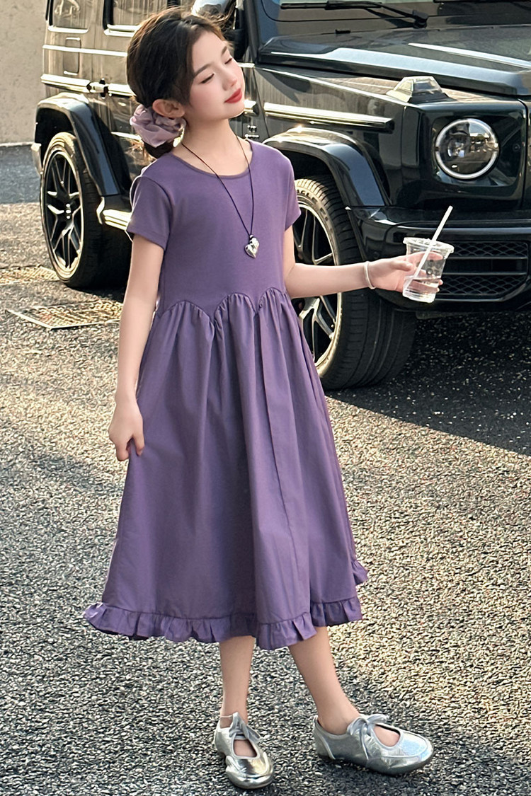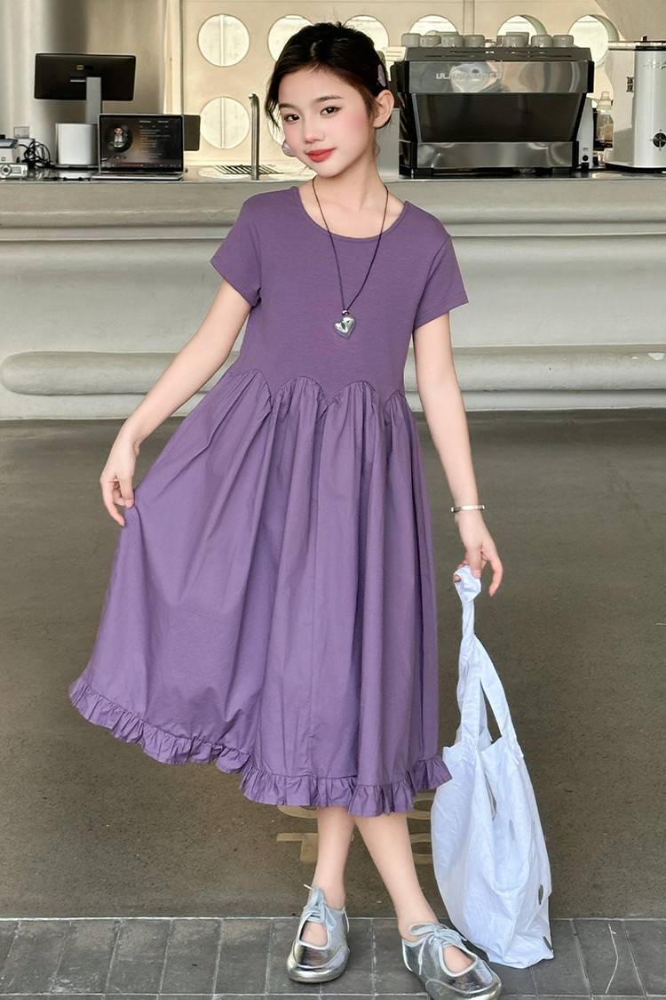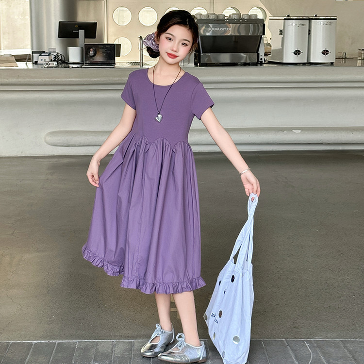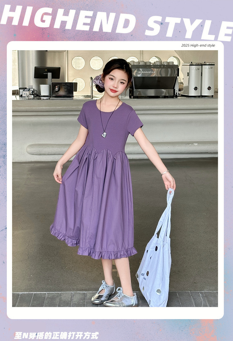 여자 소녀의 치마 2025 서양식 공주 원피스 한국 스타일 바느질 레이스 짧은 소매 원피스 꽃잎 달콤한 여름스토어 가기