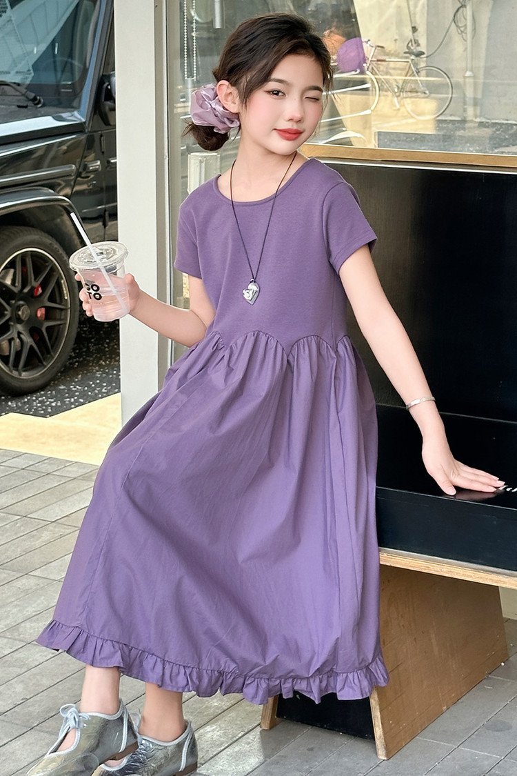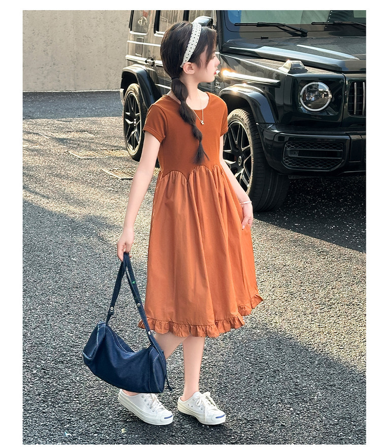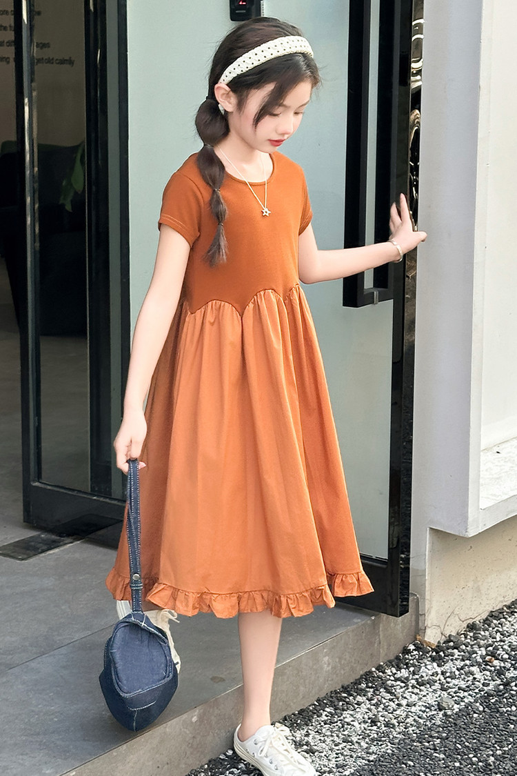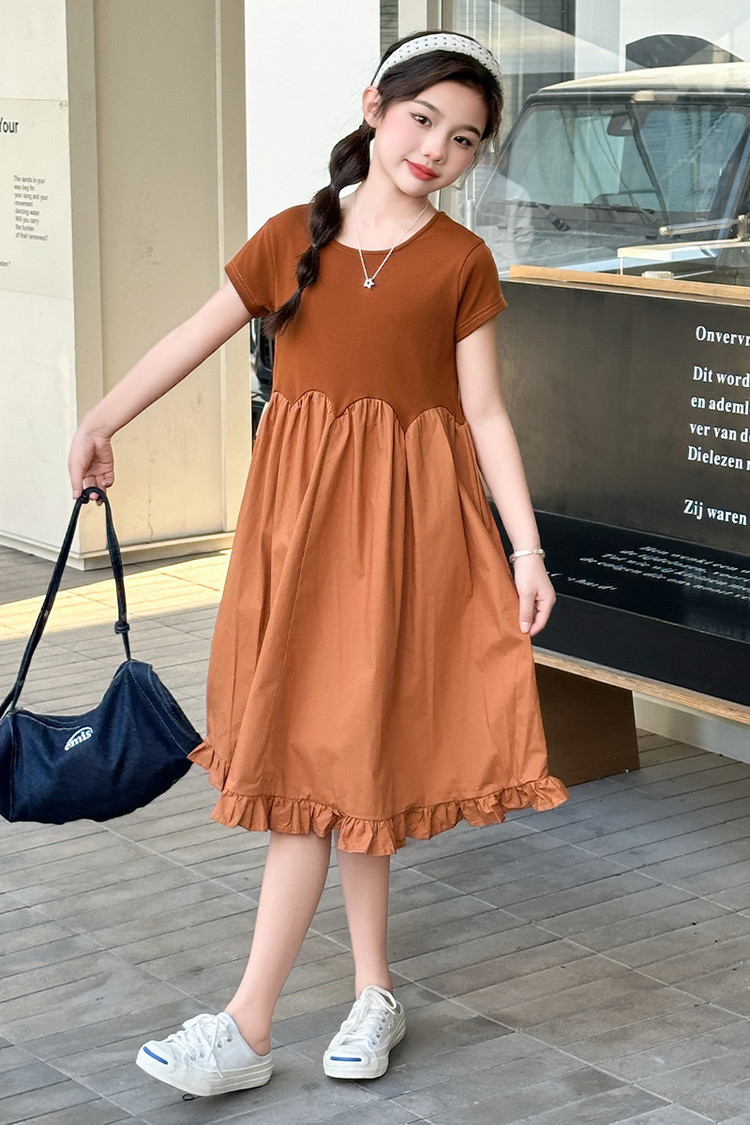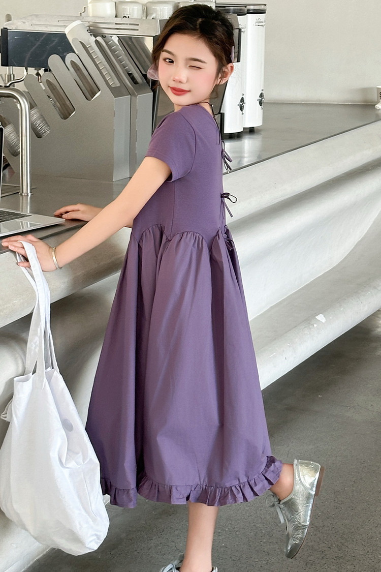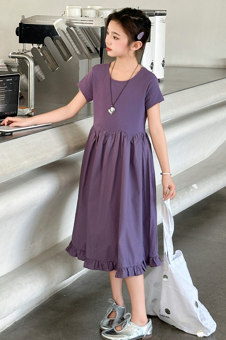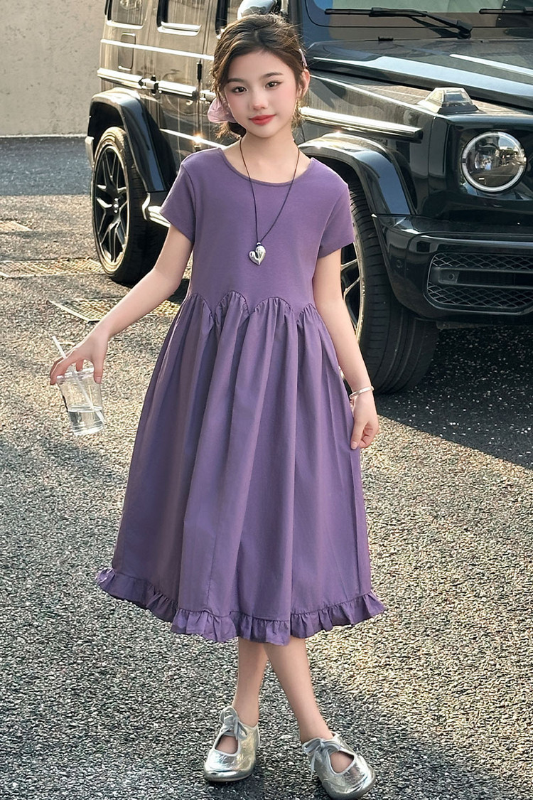 여자 소녀의 치마 2025 서양식 공주 원피스 한국 스타일 바느질 레이스 짧은 소매 원피스 꽃잎 달콤한 여름스토어 가기