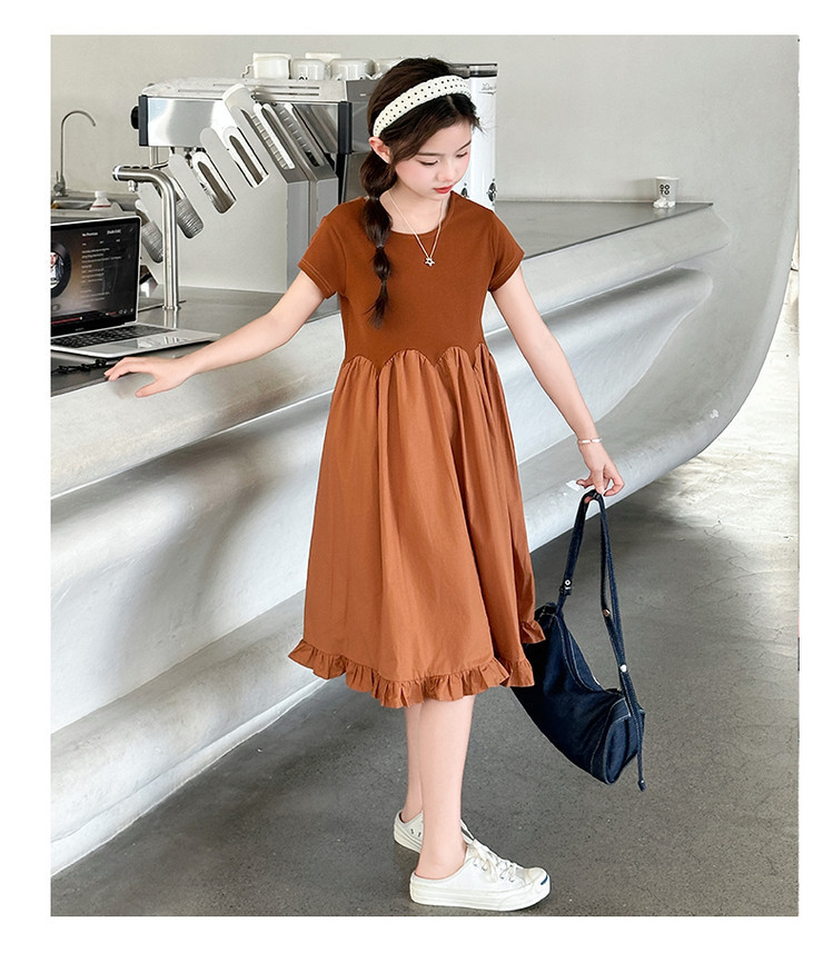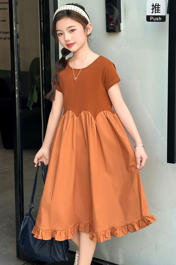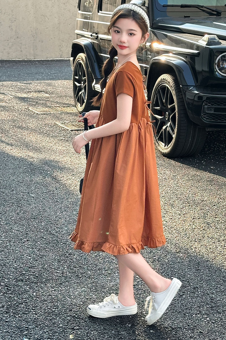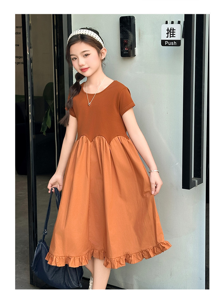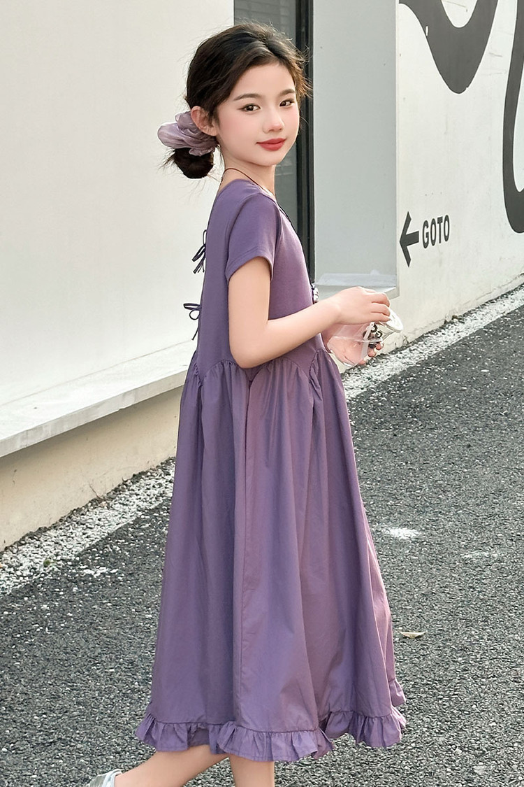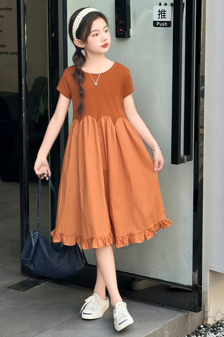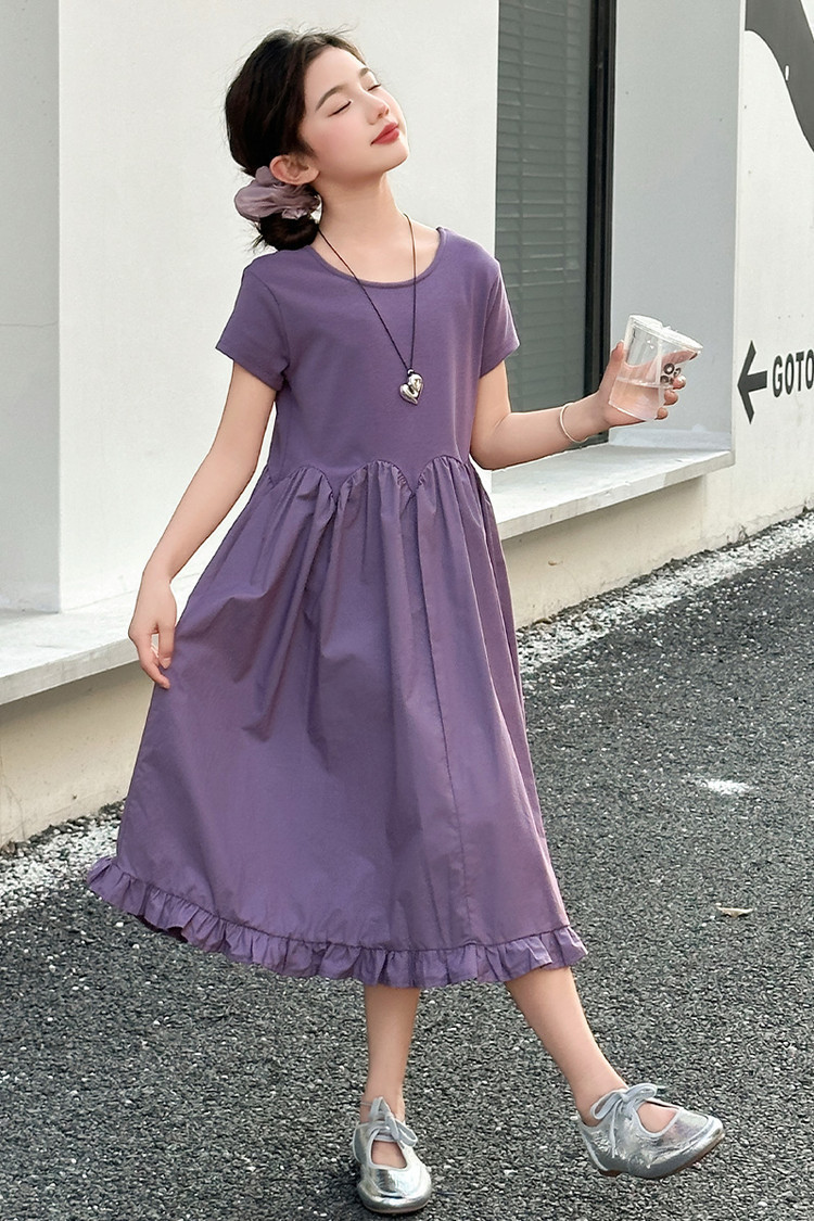 여자 소녀의 치마 2025 서양식 공주 원피스 한국 스타일 바느질 레이스 짧은 소매 원피스 꽃잎 달콤한 여름스토어 가기
