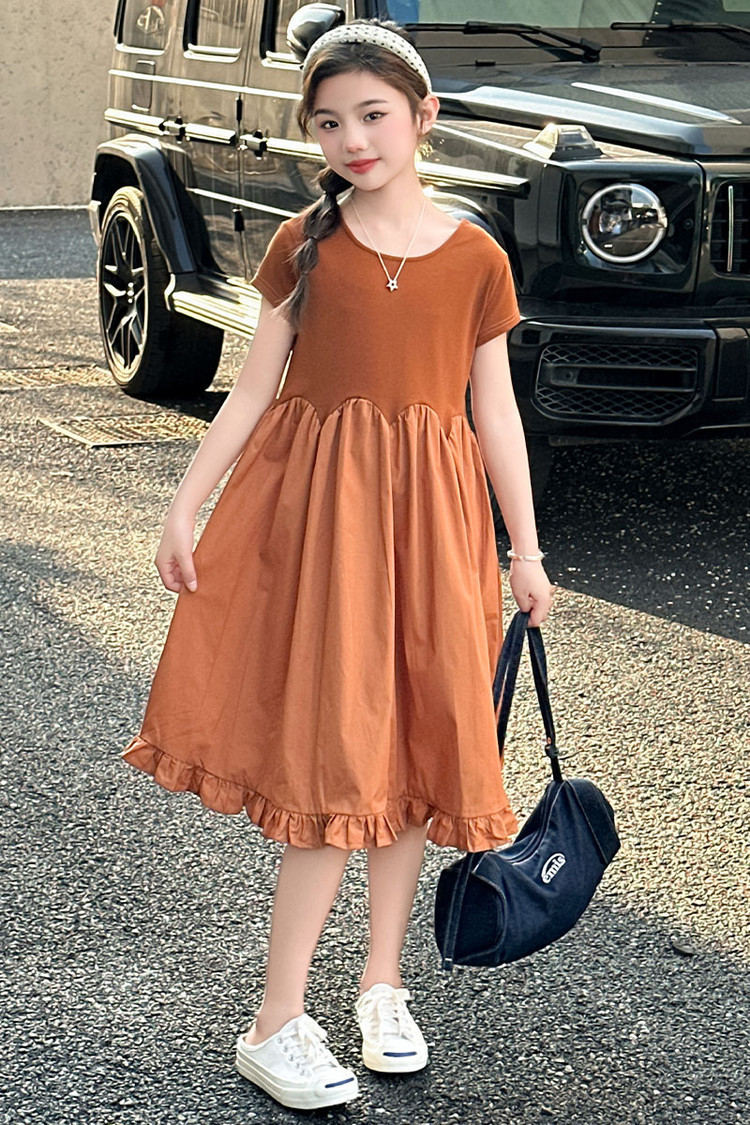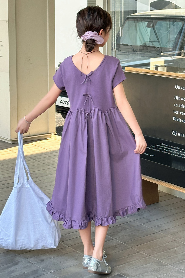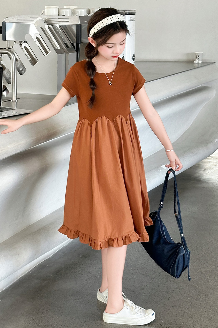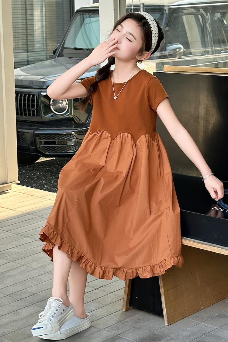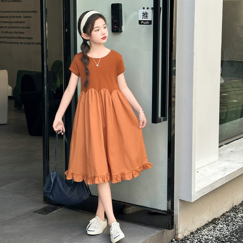 여자 소녀의 치마 2025 서양식 공주 원피스 한국 스타일 바느질 레이스 짧은 소매 원피스 꽃잎 달콤한 여름