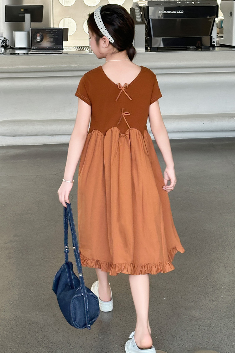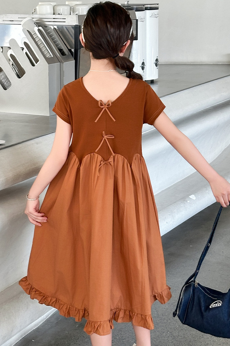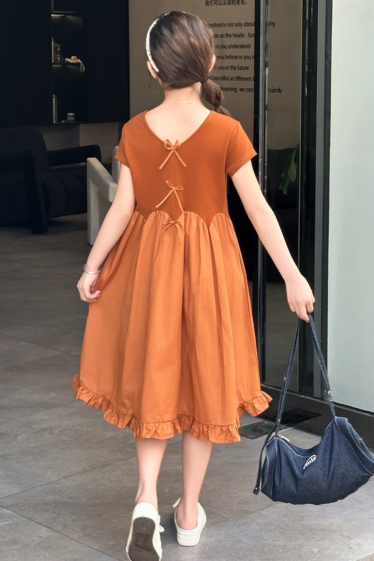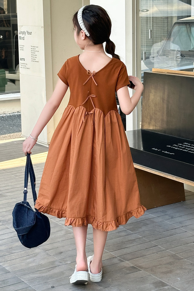 여자 소녀의 치마 2025 서양식 공주 원피스 한국 스타일 바느질 레이스 짧은 소매 원피스 꽃잎 달콤한 여름