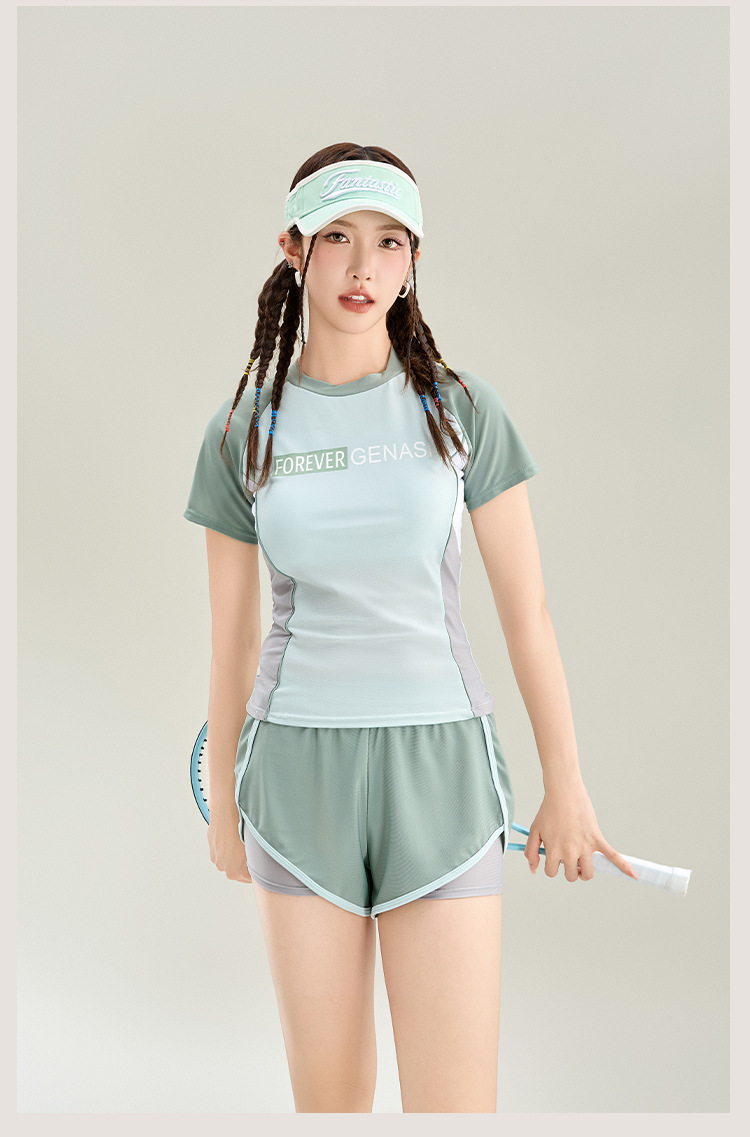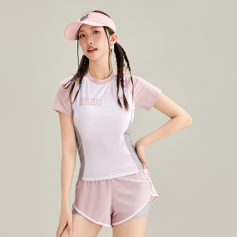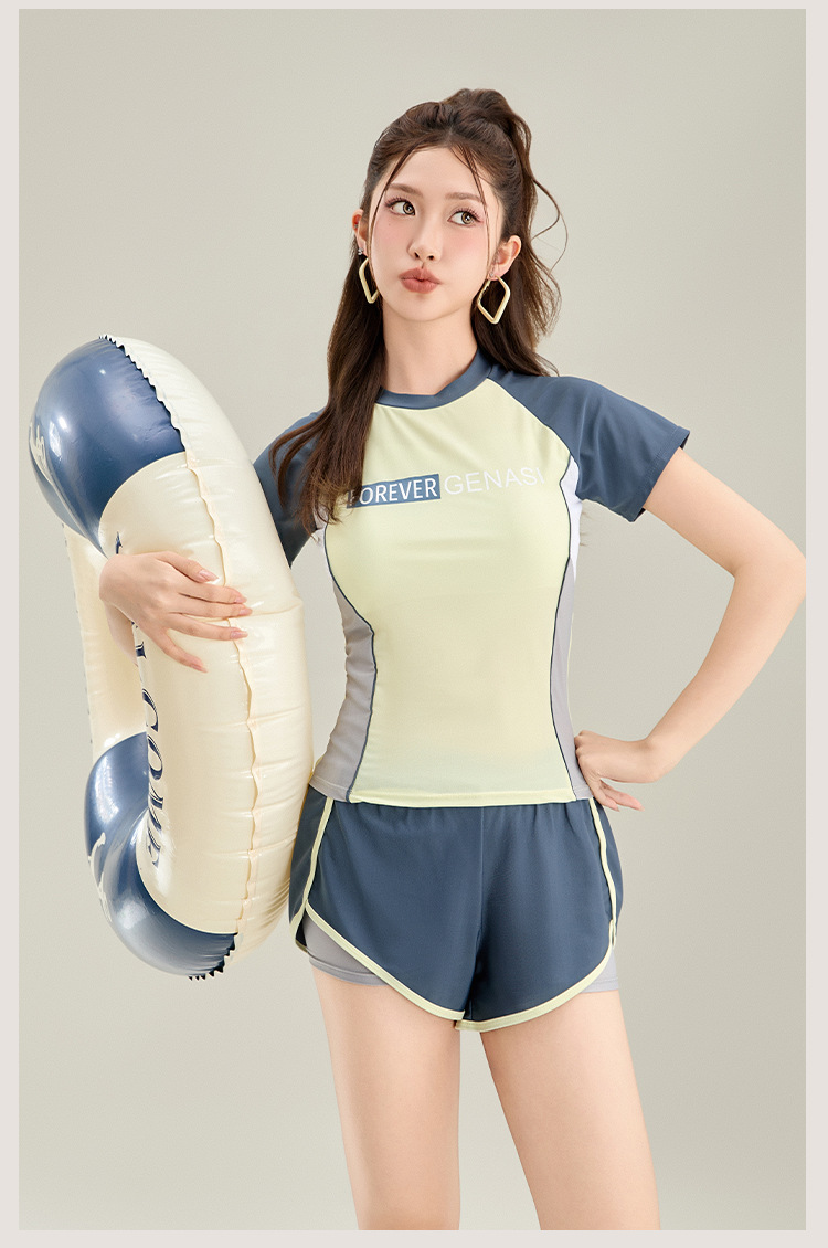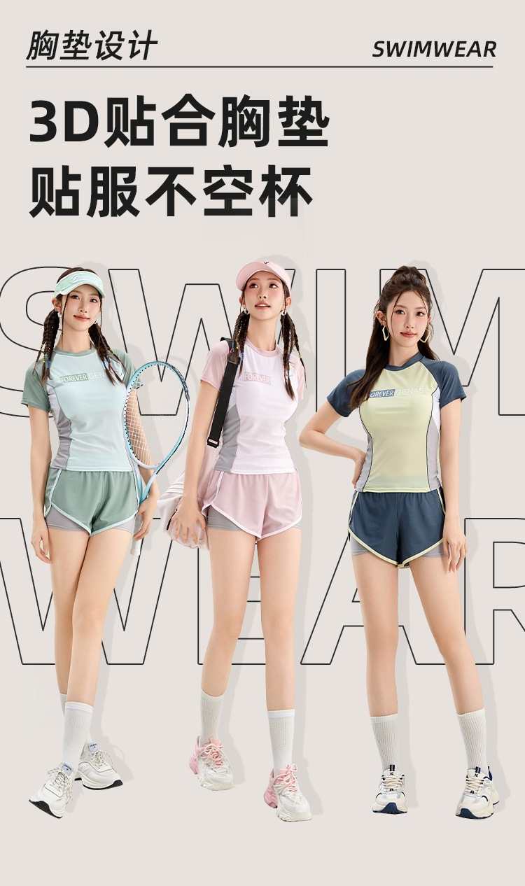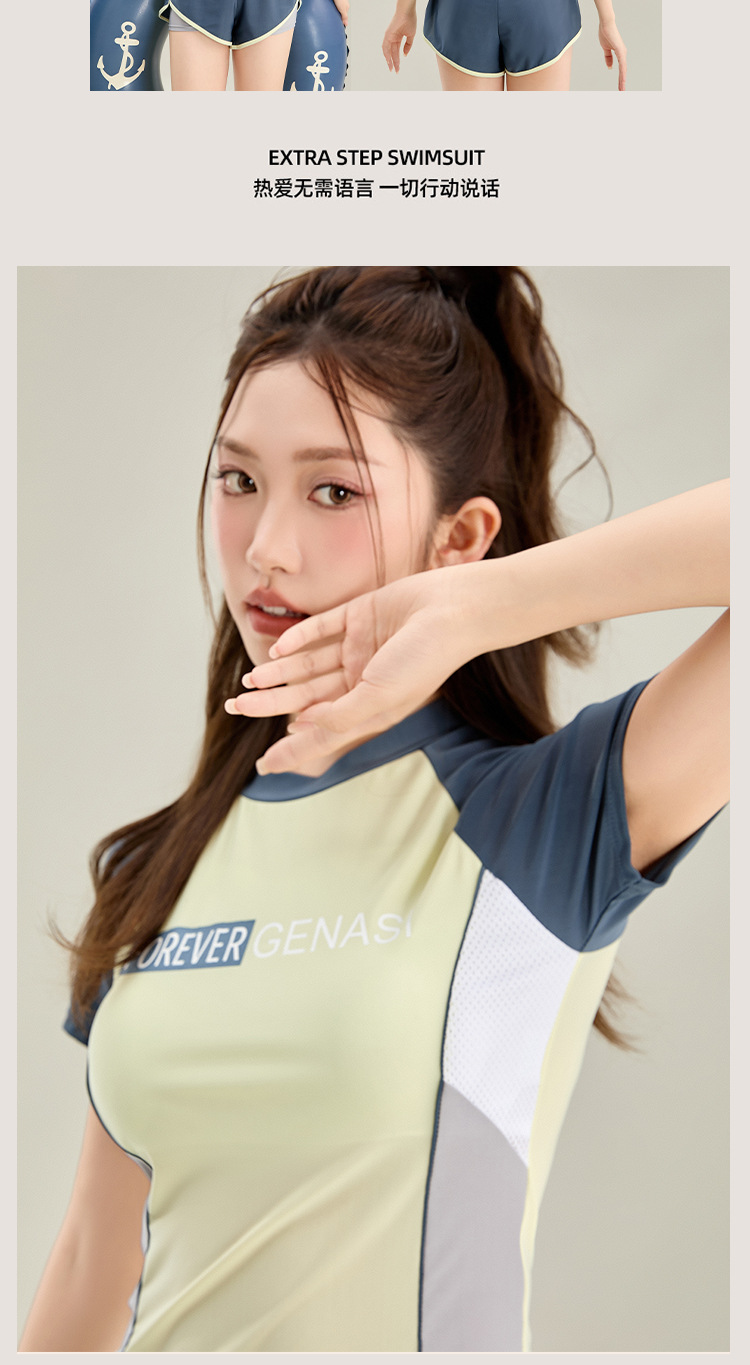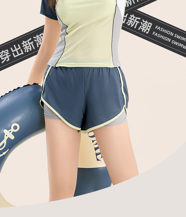 작은 신선한 팬 분할 수영복 여성의 보수적 인 슬림 배꼽 평평한 각도 스포츠 수영복 학생 뜨거운 봄 수영복 도매