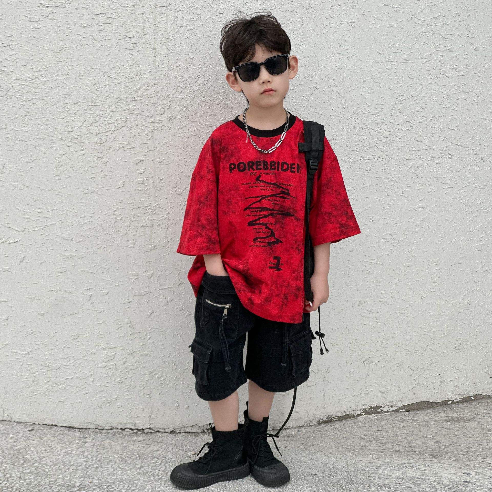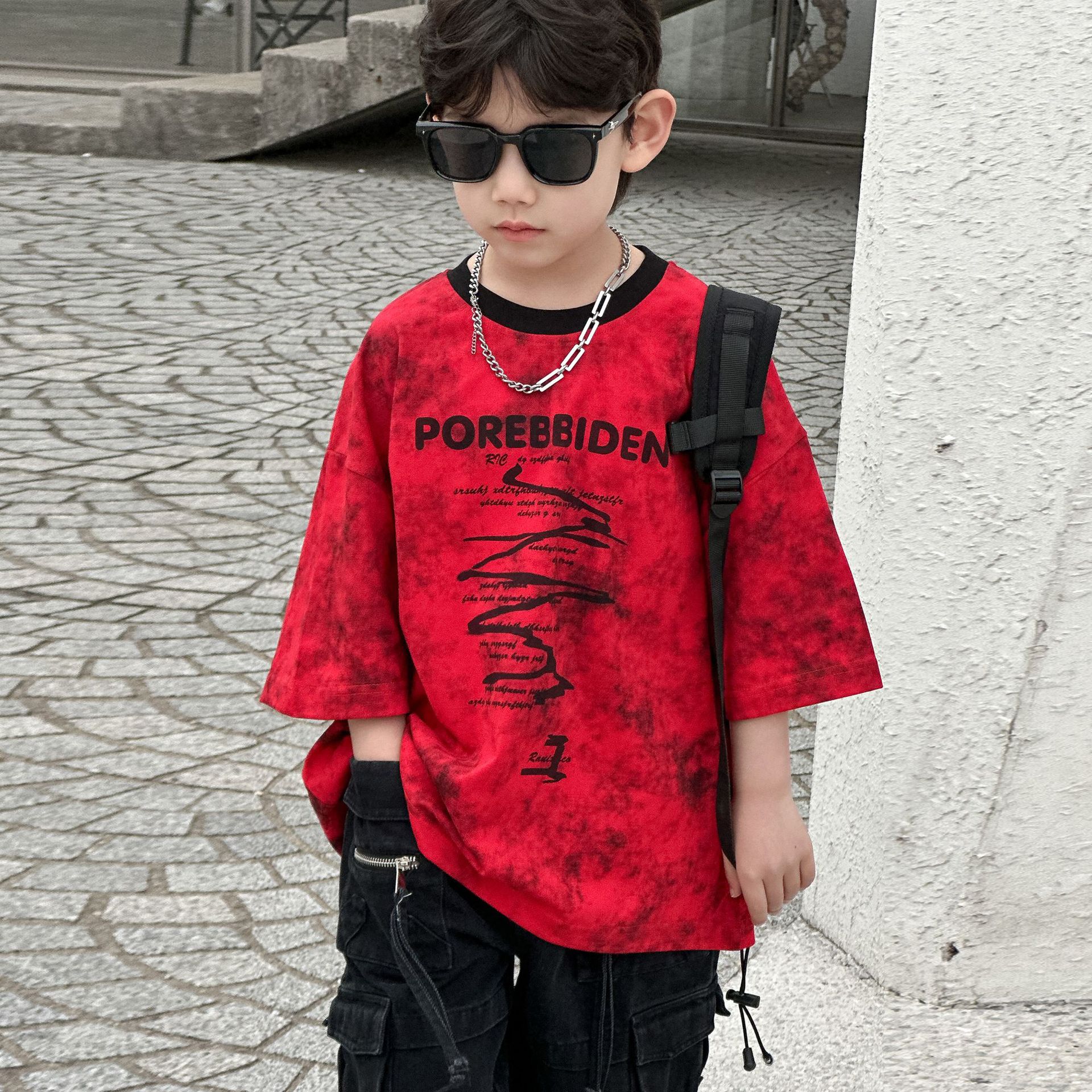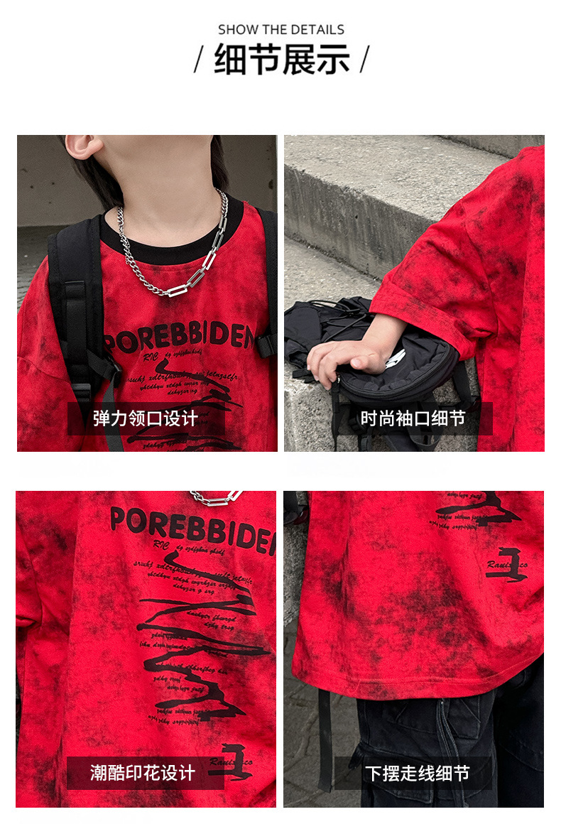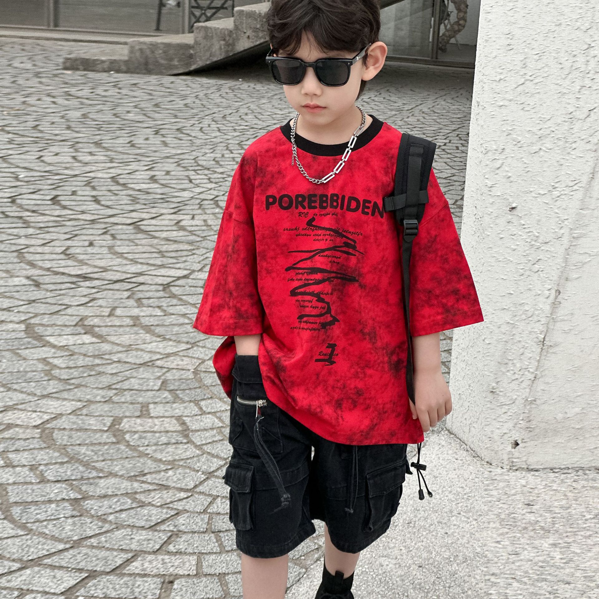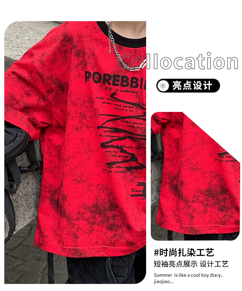 2025 년 여름 새 아동면 반팔 티셔츠 넥타이 염색 잉크 스타일 코튼 T 남성 아동복 한국 여름 패션스토어 가기