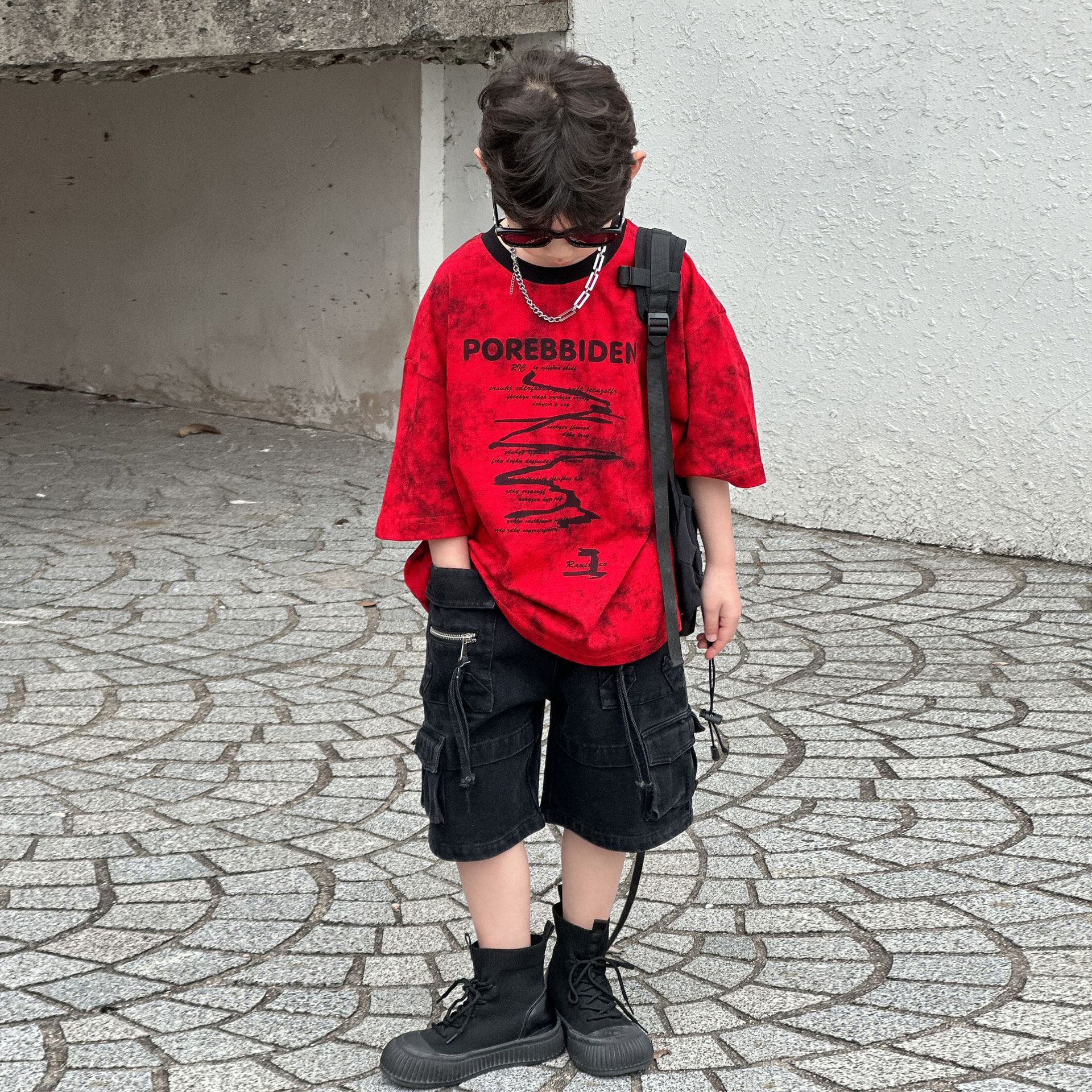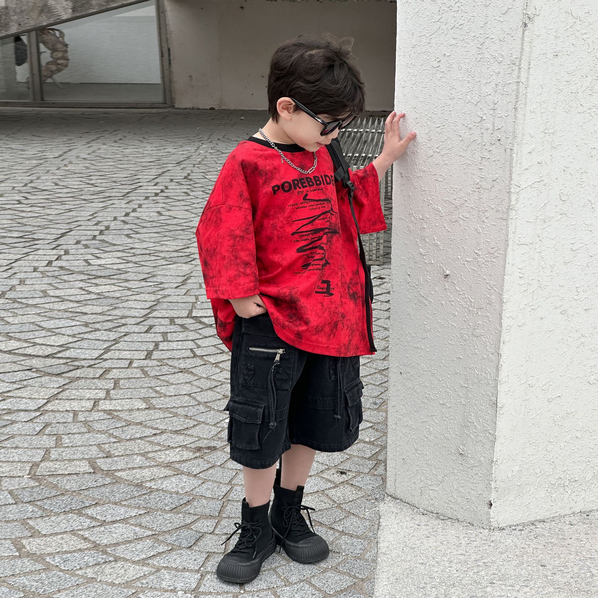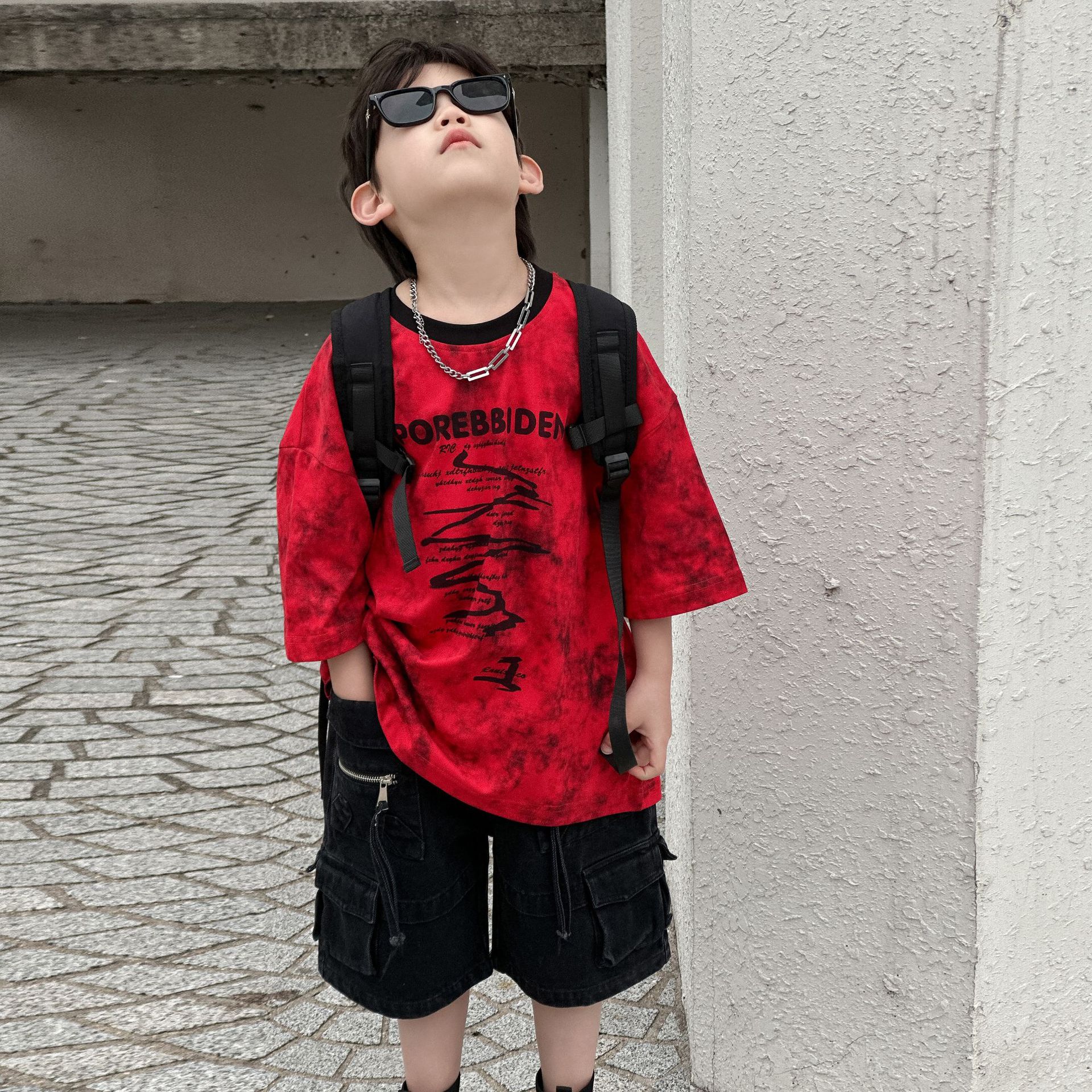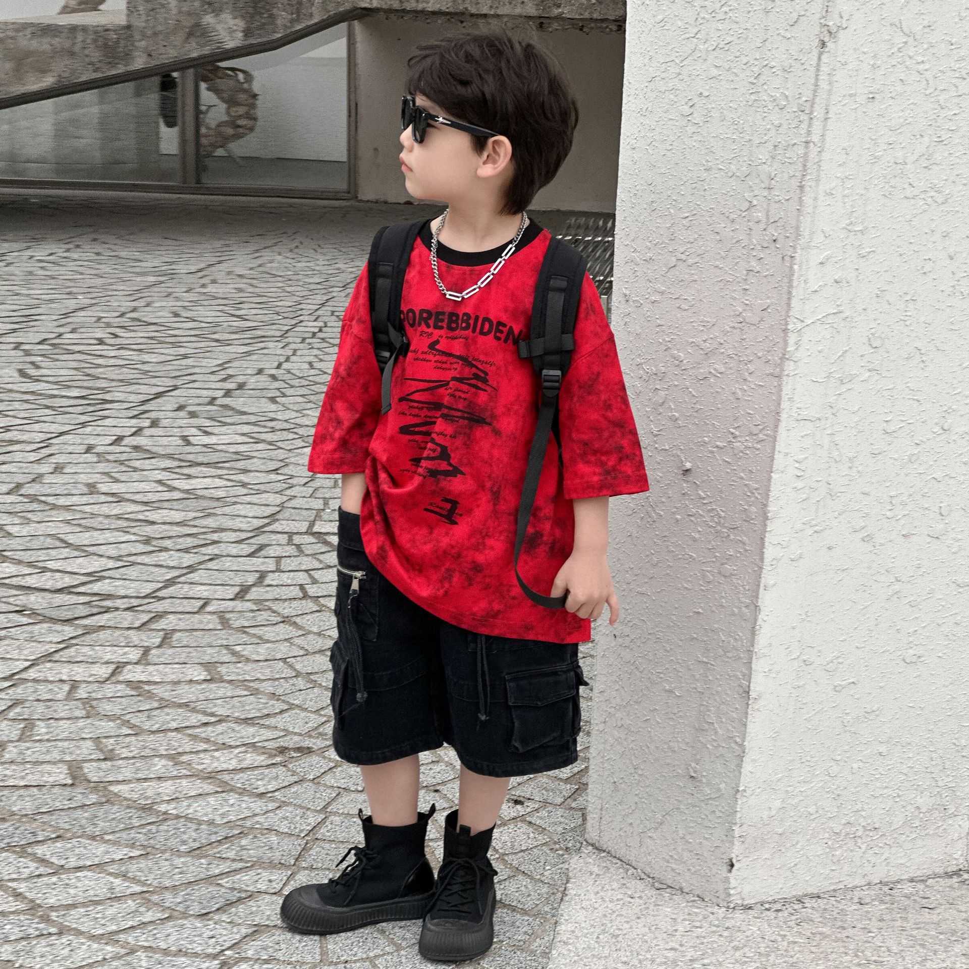 2025 년 여름 새 아동면 반팔 티셔츠 넥타이 염색 잉크 스타일 코튼 T 남성 아동복 한국 여름 패션스토어 가기