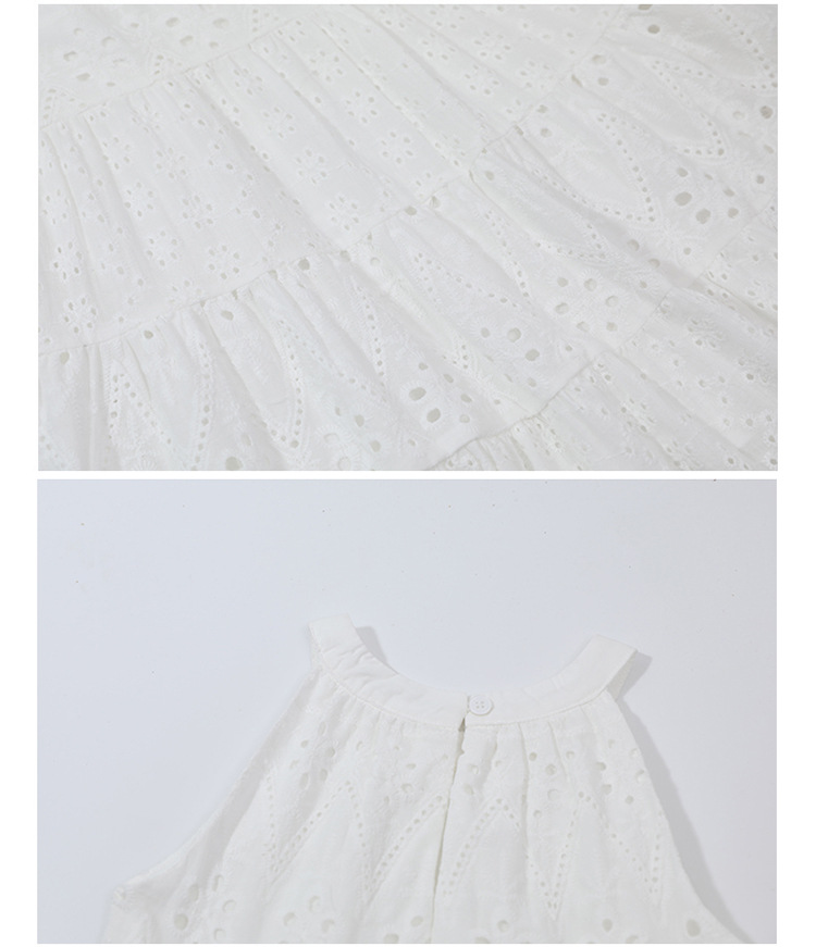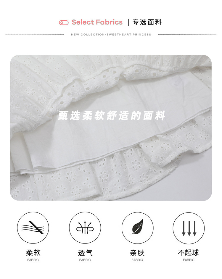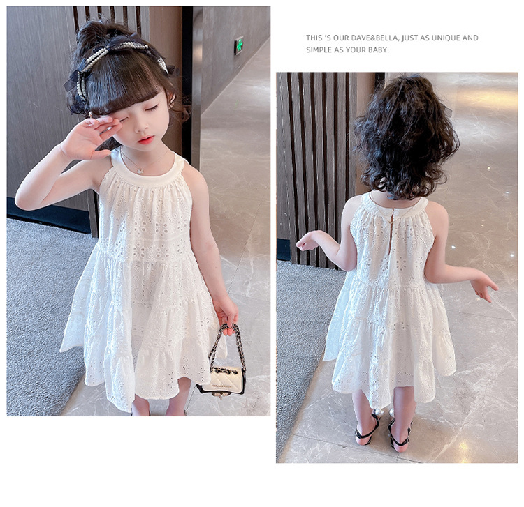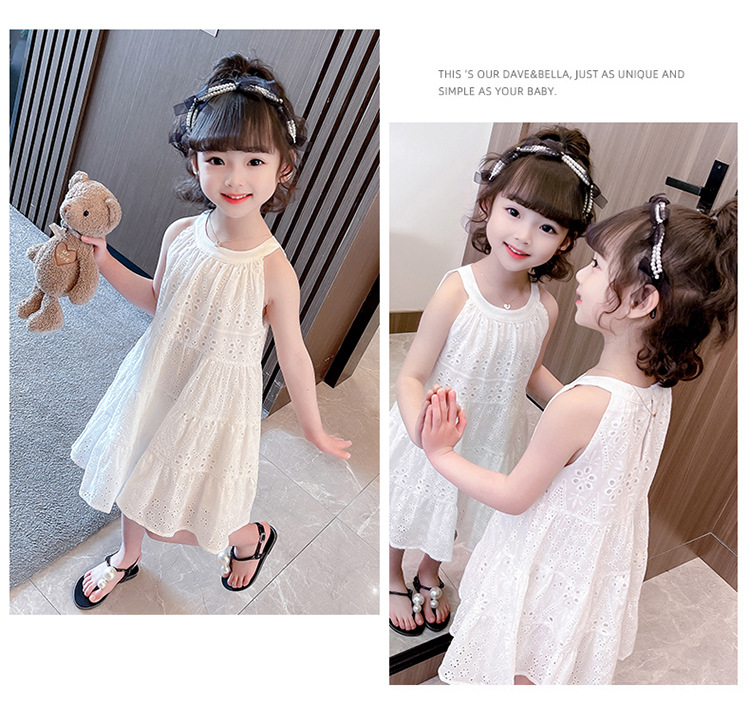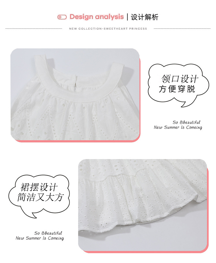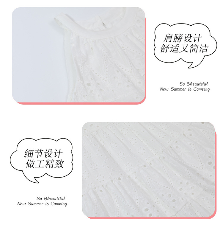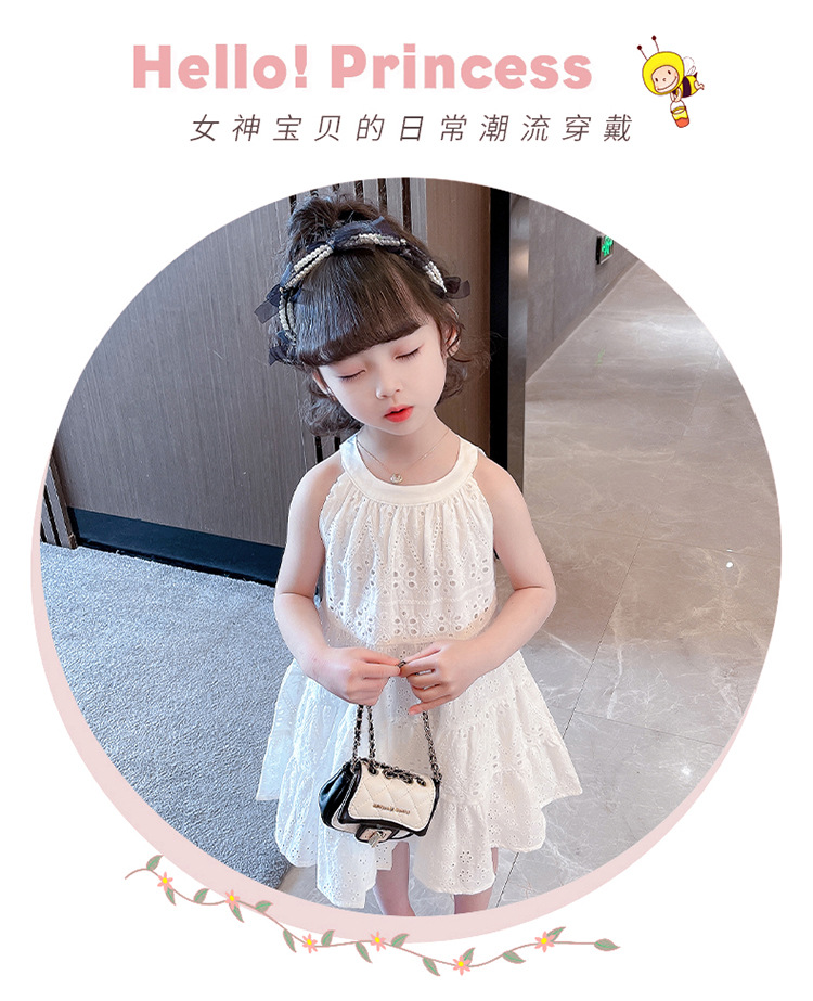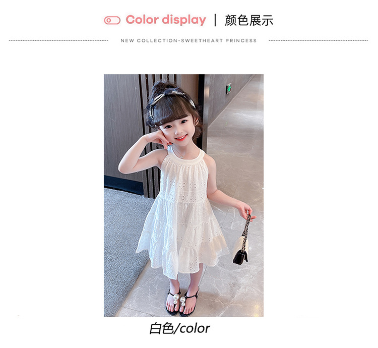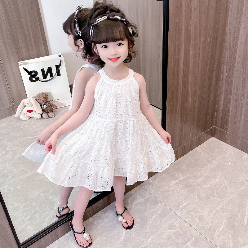 소녀 화이트 자카드 원피스 2025 여름 새 스타일 민소매 레이스 할로우 공주 원피스 어린 소녀스토어 가기