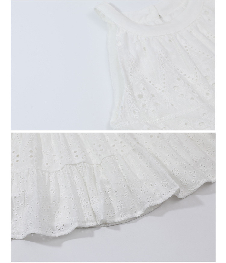 소녀 화이트 자카드 원피스 2025 여름 새 스타일 민소매 레이스 할로우 공주 원피스 어린 소녀