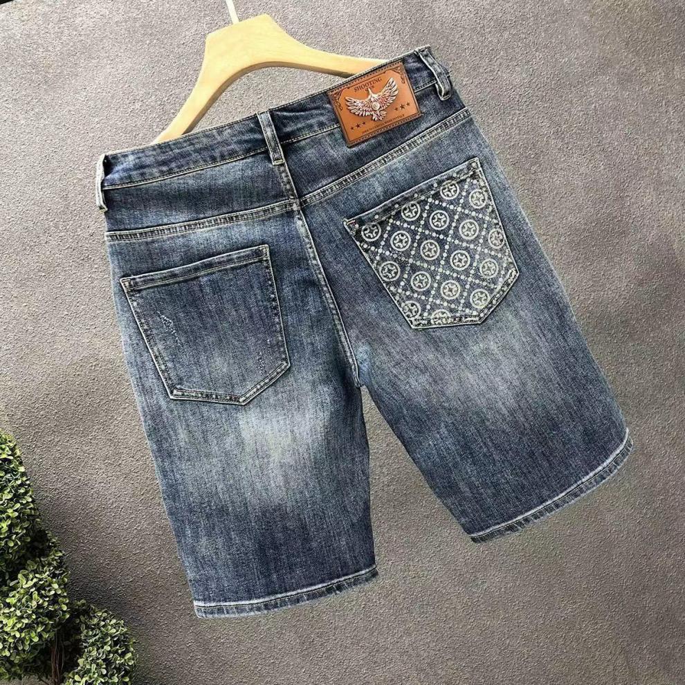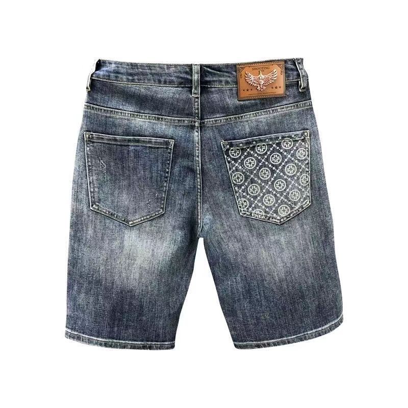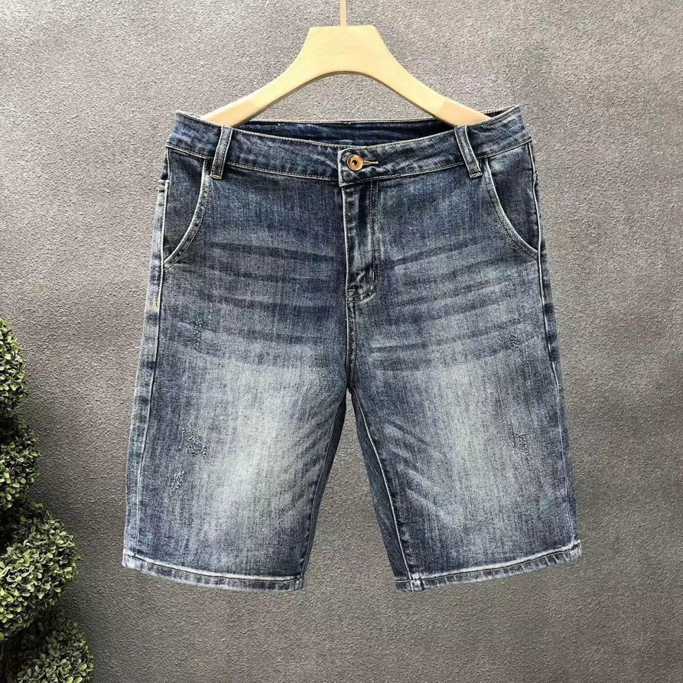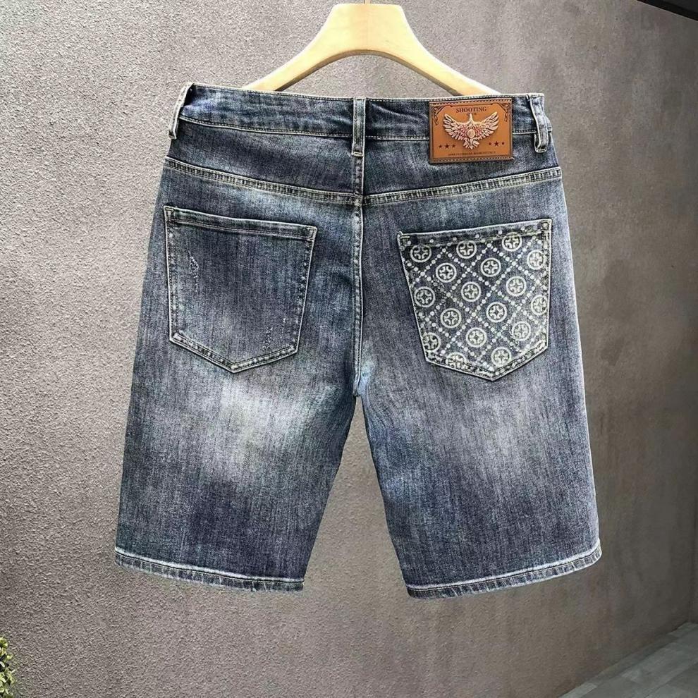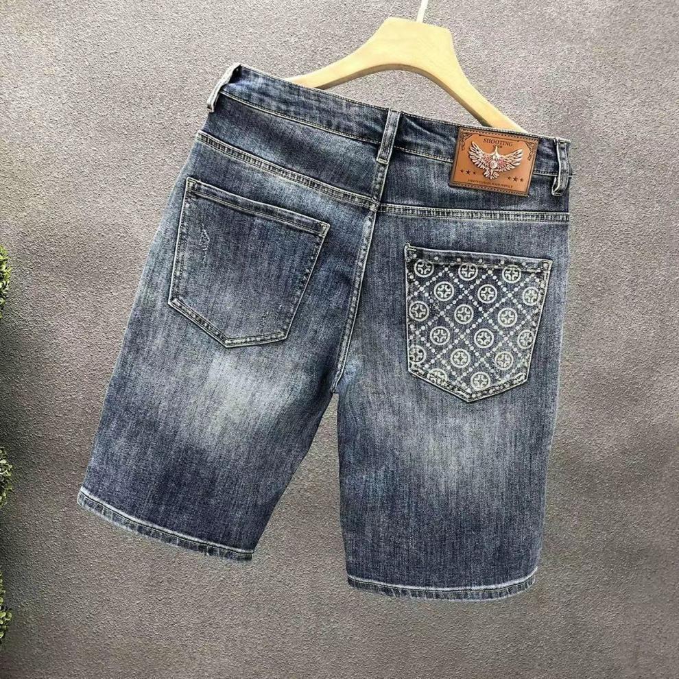 데님 반바지 남자의 여름 얇은 5 점 바지 유행 남자의 유행 하이 엔드 5 점 바지 라이트 블루 인쇄 잘생긴 외부 착용스토어 가기