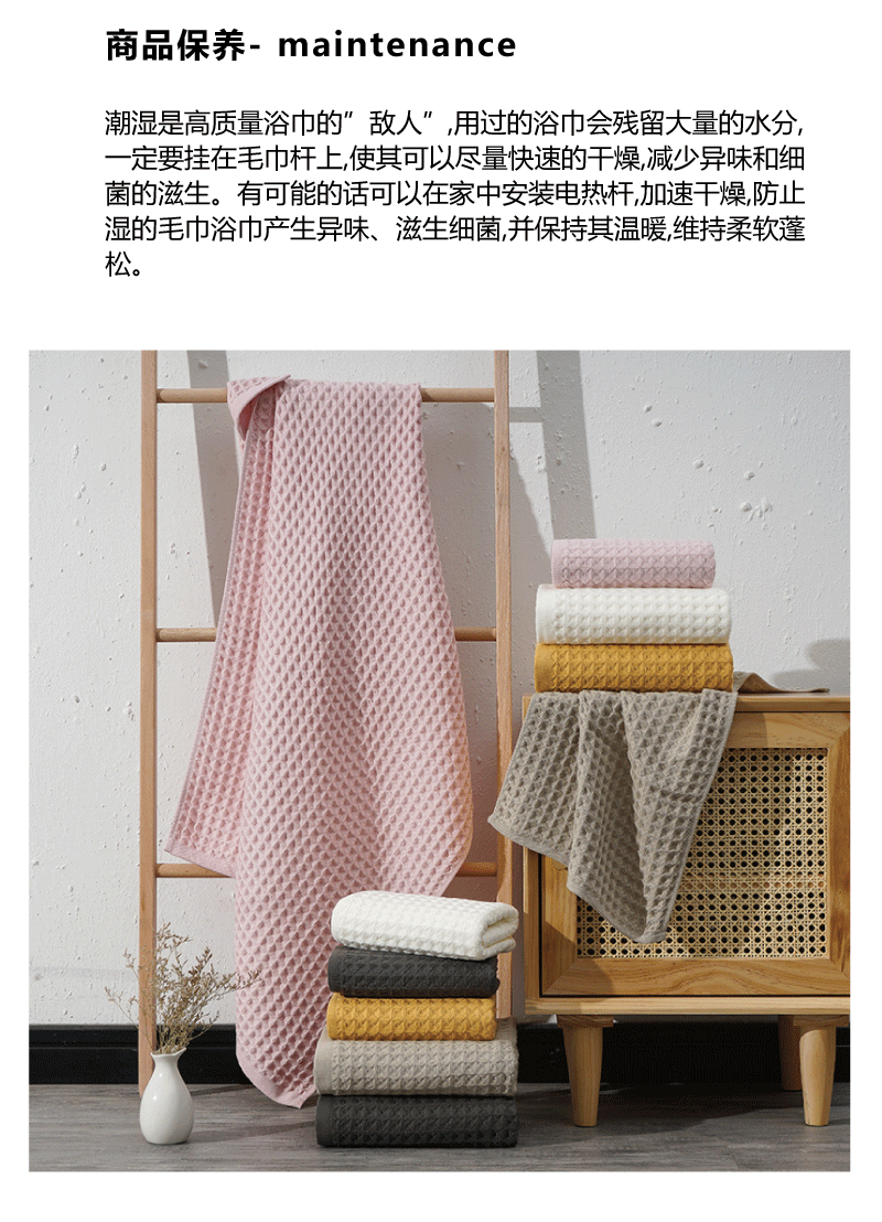 순면 벌집형 A급 목욕 타월 가정용 일상용 숙박업소용 흡수성 좋은 순면 대형 와플 도매 초부드러움스토어 가기