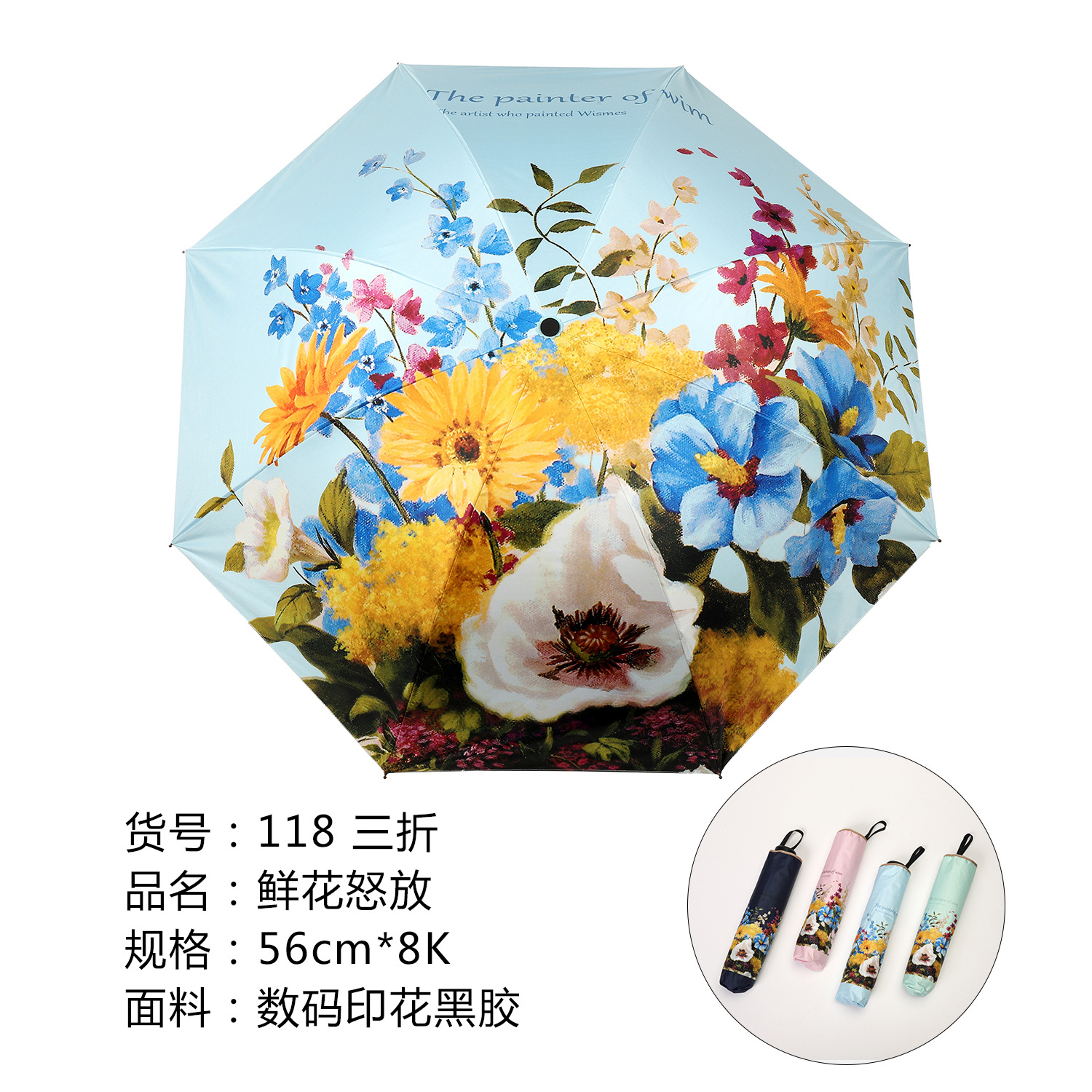 빈티지 인쇄 접히는 빈티지 우산 맑고 비오는 듀얼-야외 트라이 폴드 우산 여름 안티-UV 햇빛 햇빛 우산스토어 가기