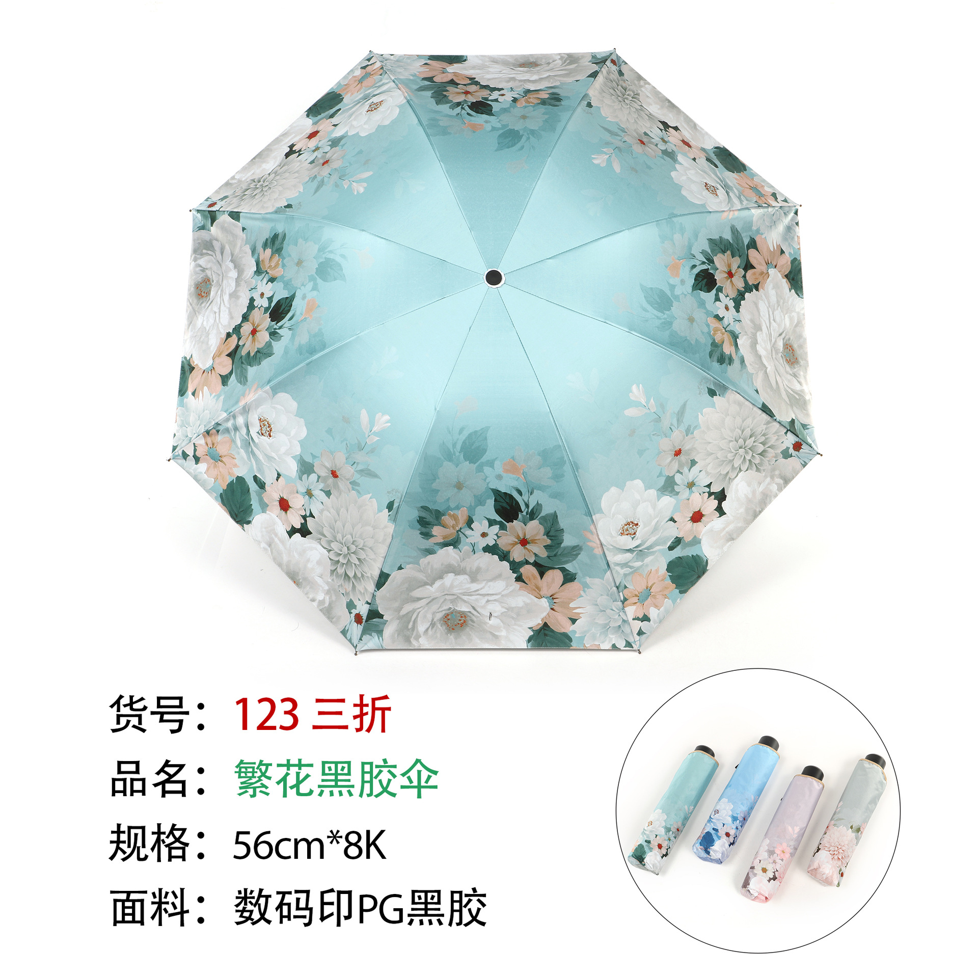 • 123 70% off 꽃무늬 검정 비닐우산 청록색