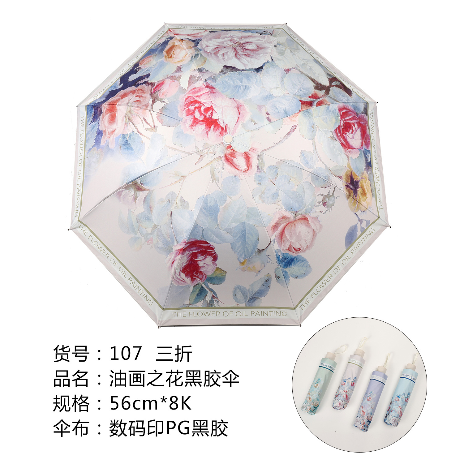 빈티지 인쇄 접히는 빈티지 우산 맑고 비오는 듀얼-야외 트라이 폴드 우산 여름 안티-UV 햇빛 햇빛 우산
