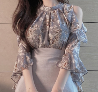 꽃 쉬폰 셔츠 2025 프랑스 여름 오픈 숄더 숄더 탑 웨스턴 스타일 달콤한 슈퍼 페어리 셔츠 여성 디자인 감각스토어 가기
