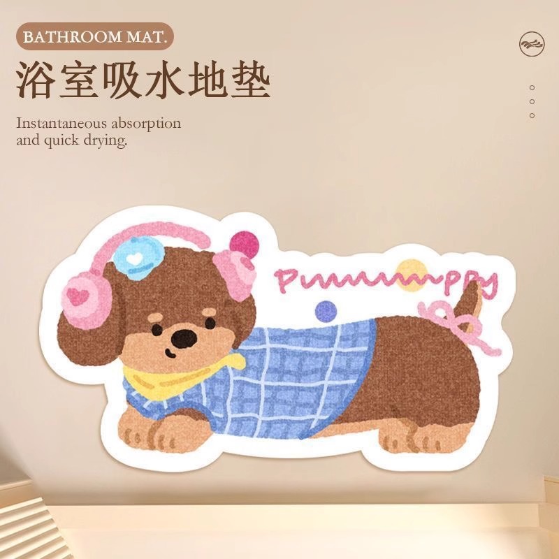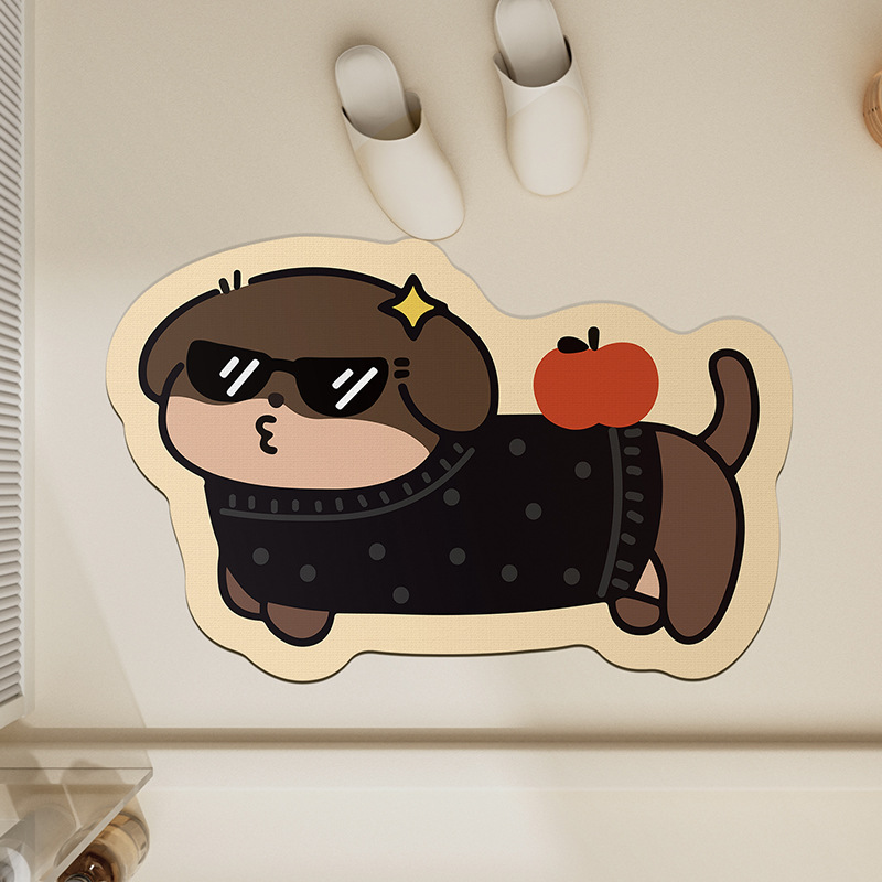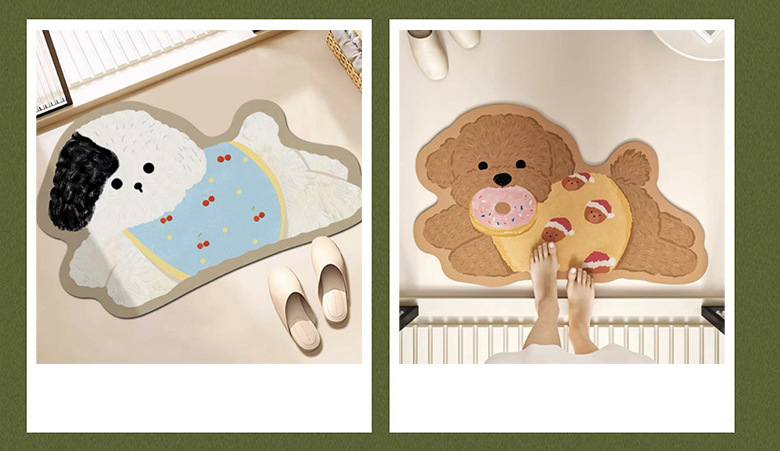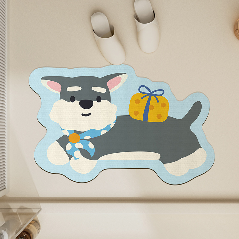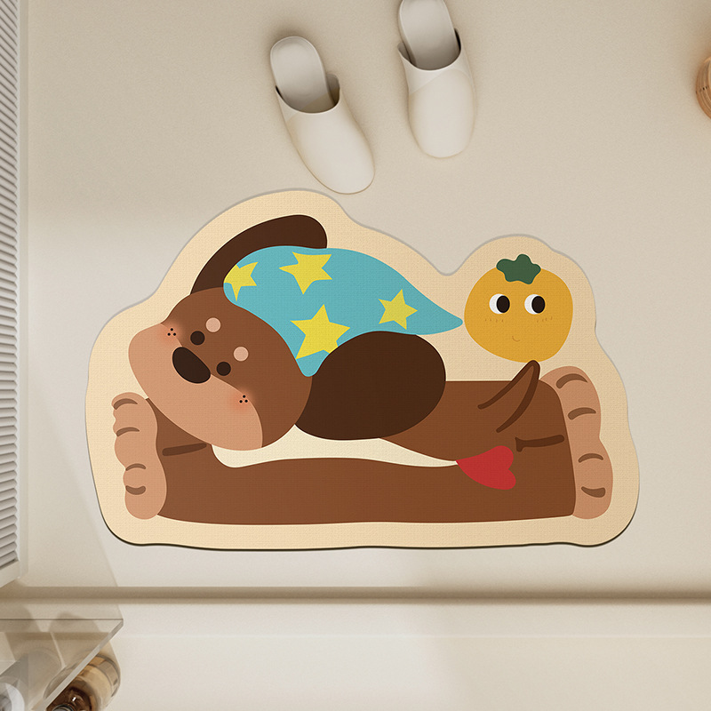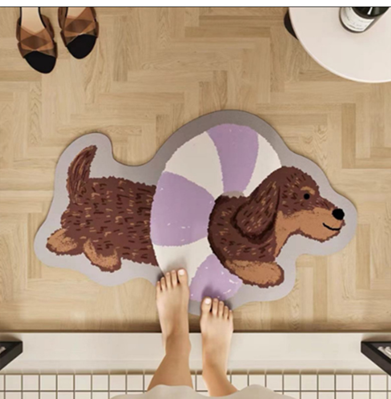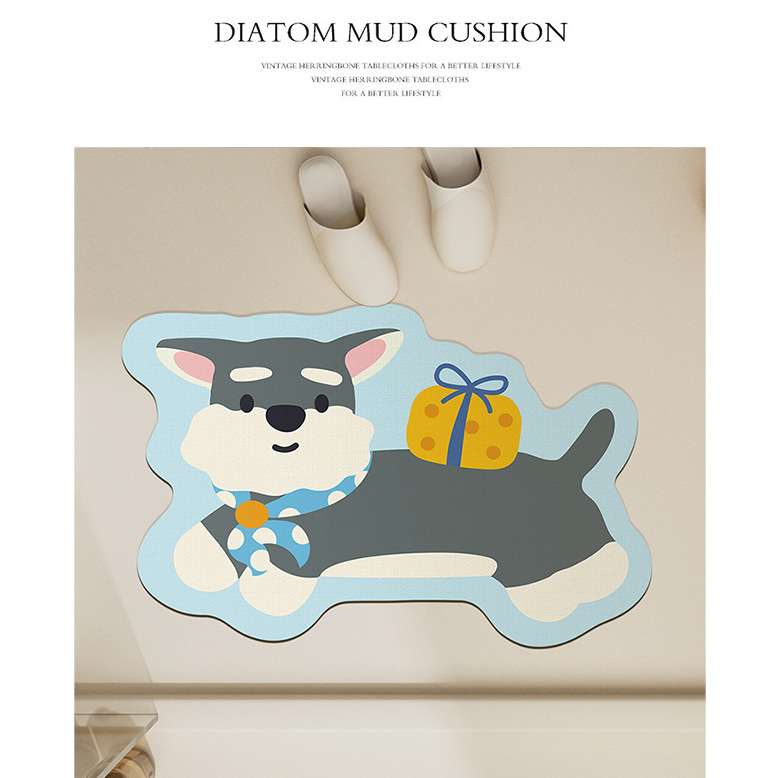 욕실 바닥 매트 diatom 진흙 빠른 건조 흡수 매트 귀여운 강아지 먼지 방지 미끄럼 방지 매트 가정용 청소하기 쉬운 발 매트 도매