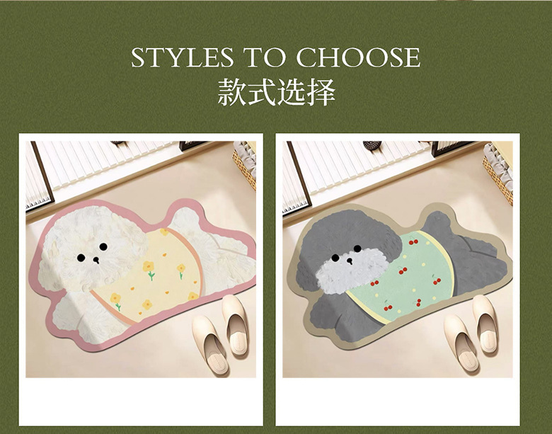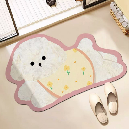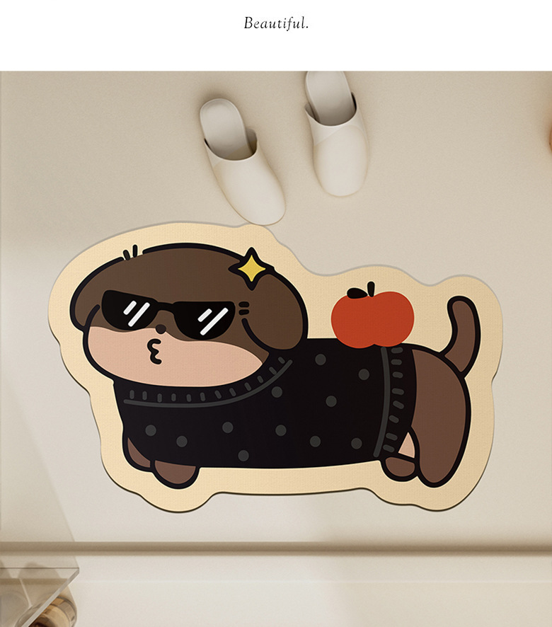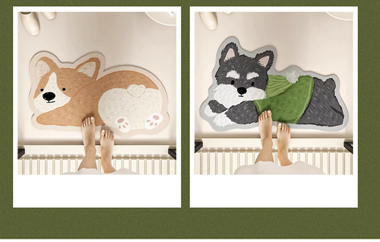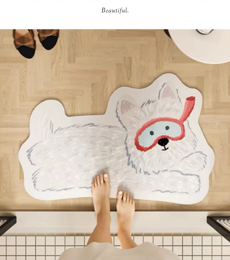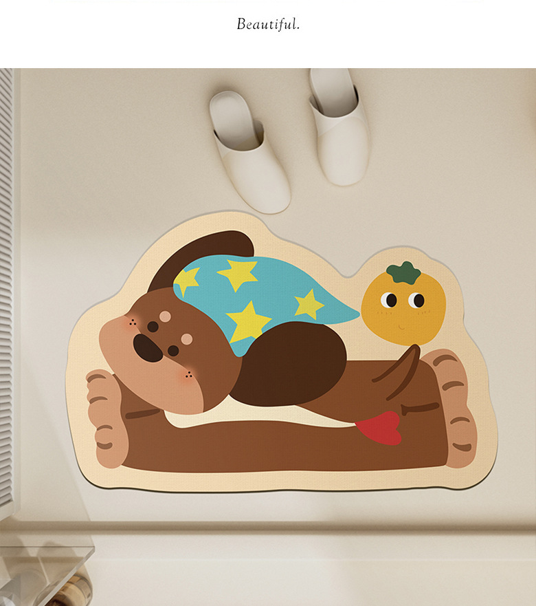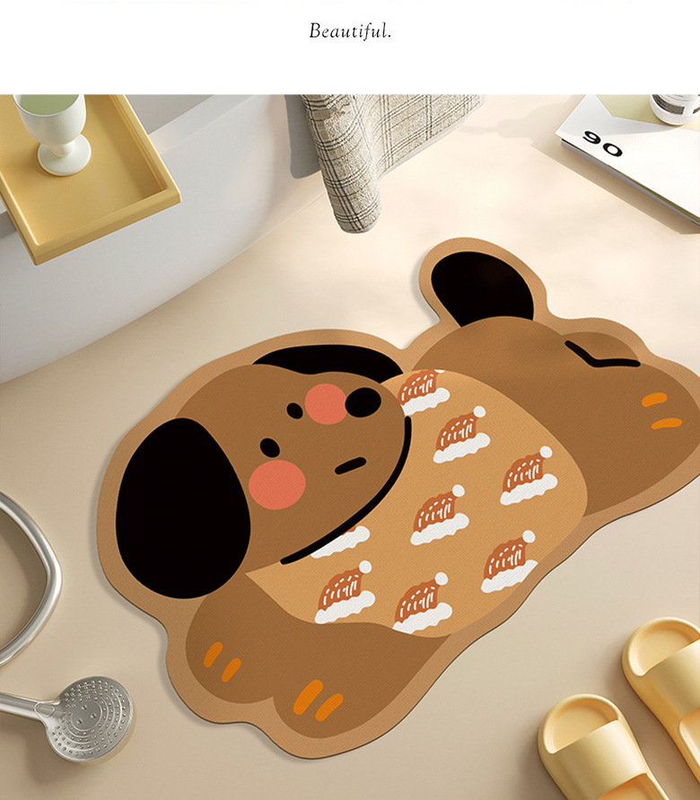욕실 바닥 매트 diatom 진흙 빠른 건조 흡수 매트 귀여운 강아지 먼지 방지 미끄럼 방지 매트 가정용 청소하기 쉬운 발 매트 도매