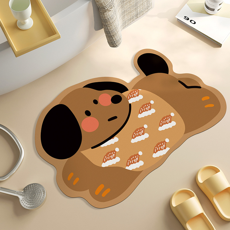 욕실 바닥 매트 diatom 진흙 빠른 건조 흡수 매트 귀여운 강아지 먼지 방지 미끄럼 방지 매트 가정용 청소하기 쉬운 발 매트 도매스토어 가기