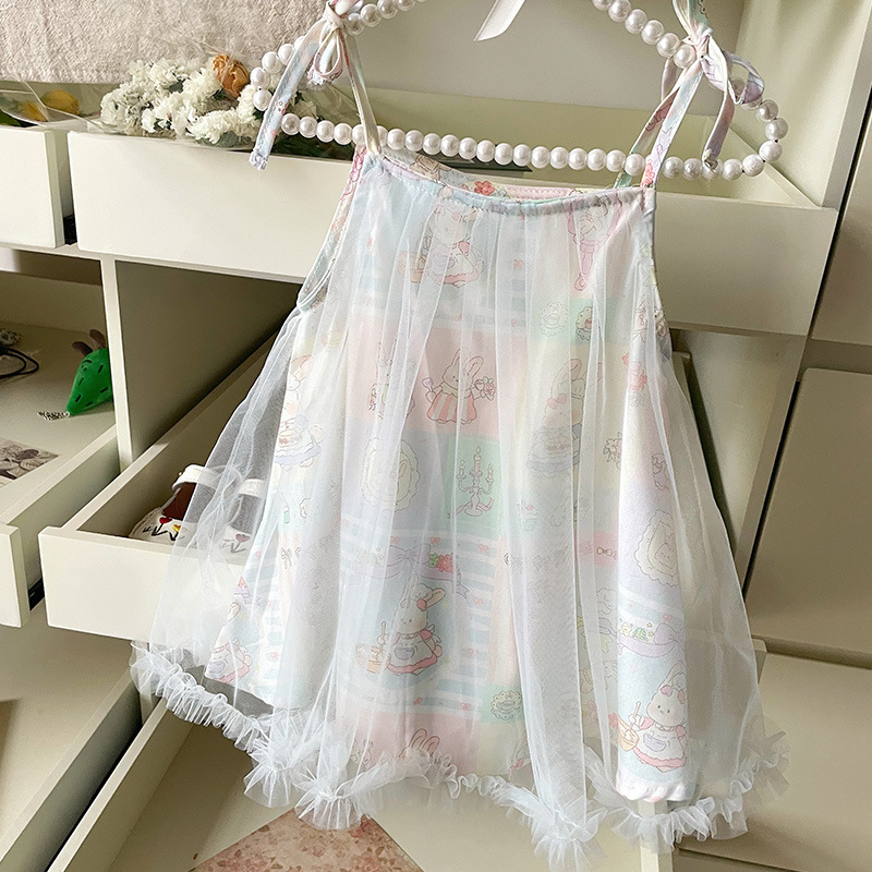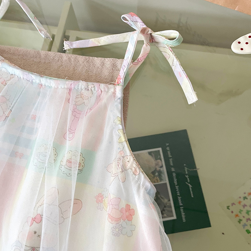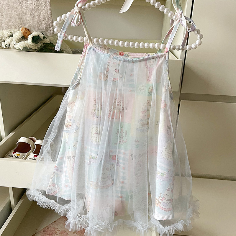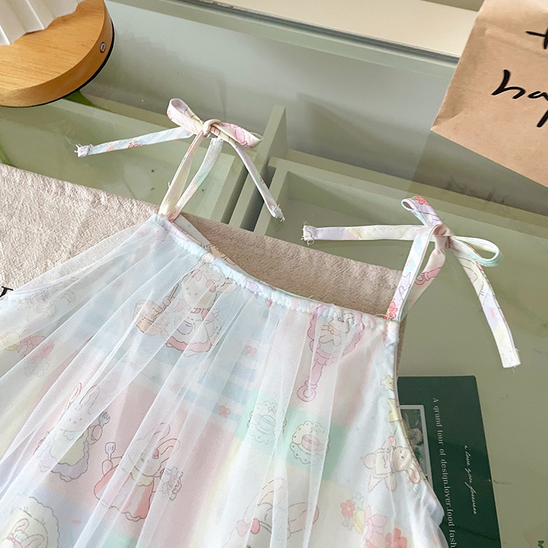[재고] XQ259207 여자 원피스 2025 여름 새로운 어린이 재미 kt 고양이 거즈 외국 스타일 어린이 치마스토어 가기