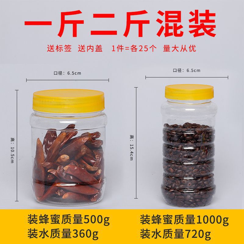허니 병 플라스틱 병 1.00kg 팩 두꺼운 투명 플라스틱 식품 등급 병 0.50kg 꿀 항아리 밀도