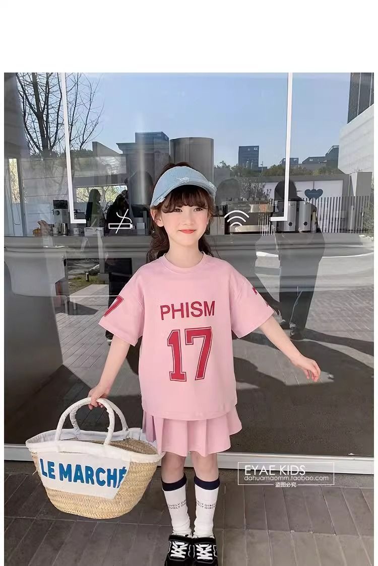 여름 한국 스타일 여아 정장 2025 여름 새로운 스타일 여아 캐주얼 반팔 중대형 어린이 주름 치마 투피스 세트스토어 가기