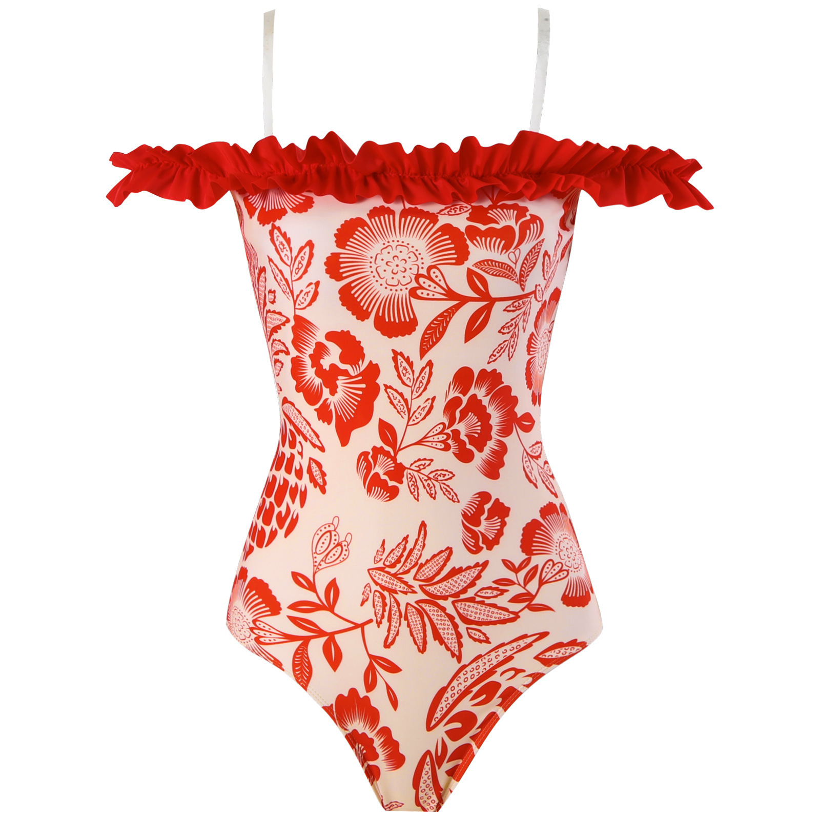 유럽과 미국의 2025 새로운 스타일의 세련되고 섹시한 여성용 원피스 수영복, 벨트, 등이없는 메쉬 스커트 수영복 세트