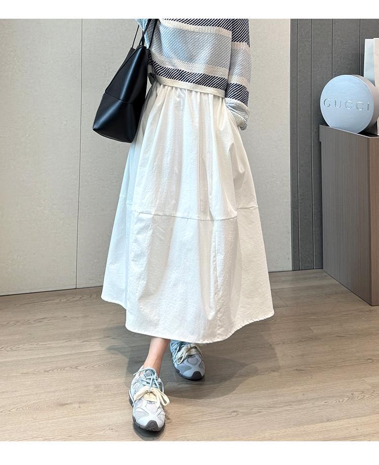 裙身两道立体拼接线设计,给干净利落的版型添加了设计感