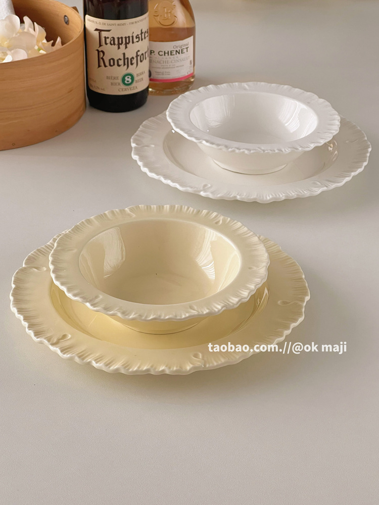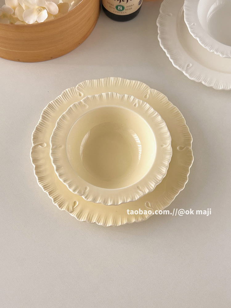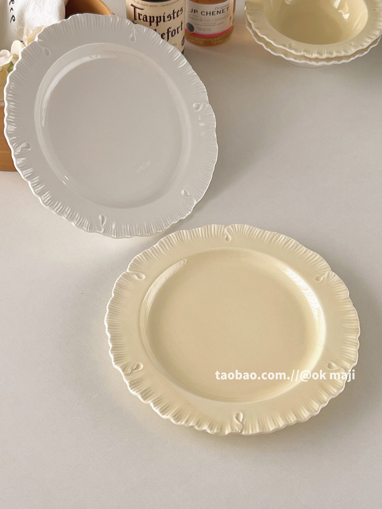 OK maji 한국 크림 세라믹 식기 접시 가정용 딥 플레이트 웨스턴 레스토랑 스테이크 파스타 플레이트