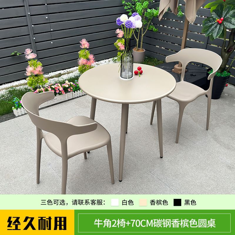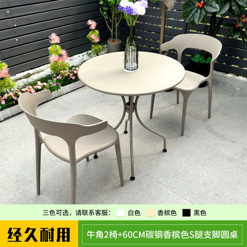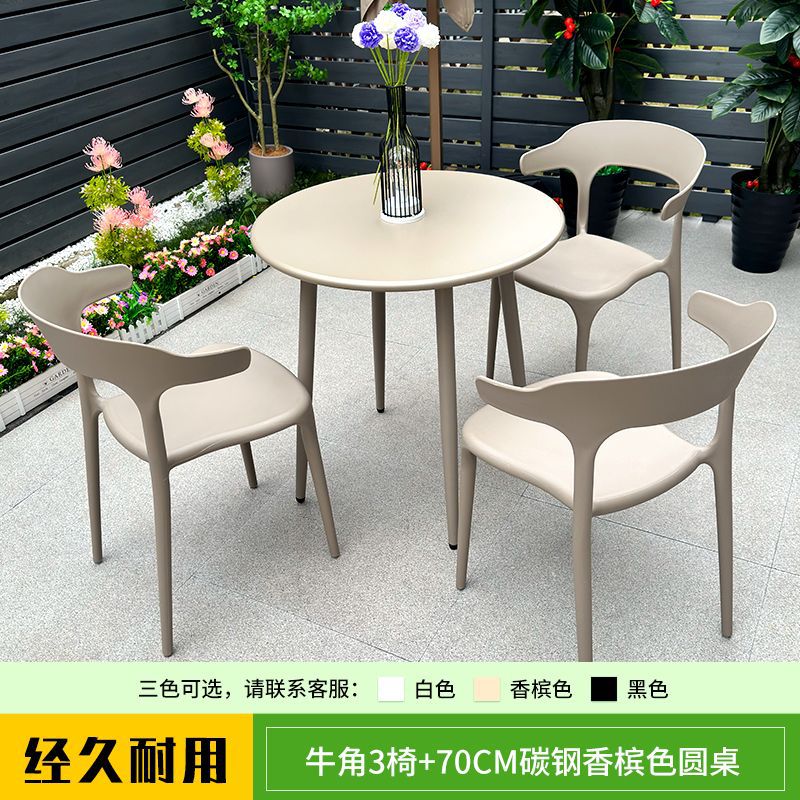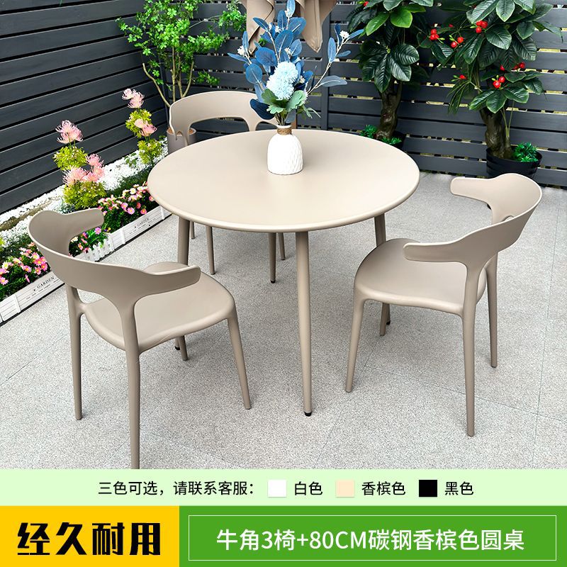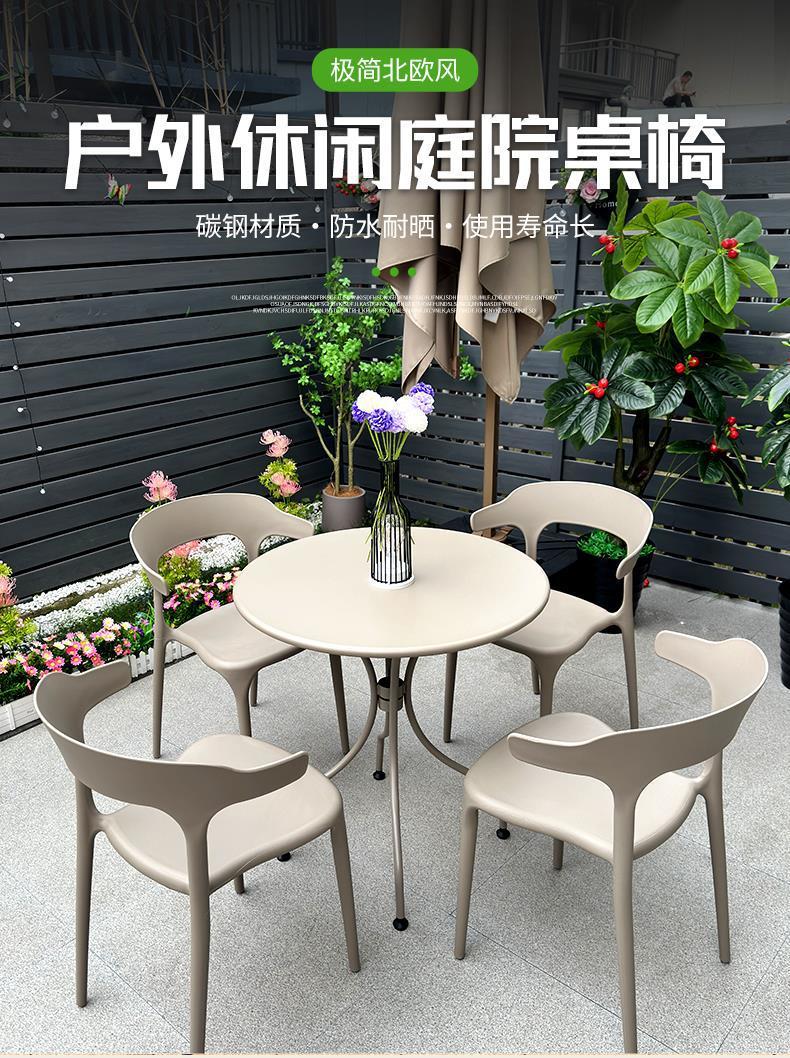 야외 인터넷 인기있는 테이블과 의자 세트 발코니 레저 커피 우유 차 가게 탄소 강철 라운드 테이블 레저 지역 코트야드 야외 식사 테이블스토어 가기