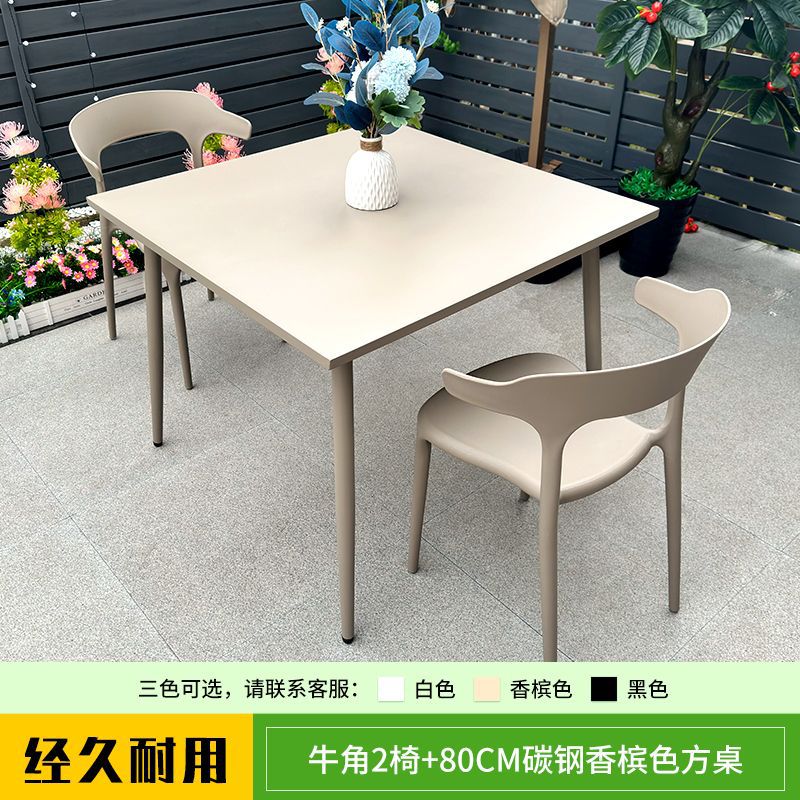 • 80 샴페인 컬러 콘 다리 탄소강 사각 테이블 + 샴페인 컬러 혼 의자 X2