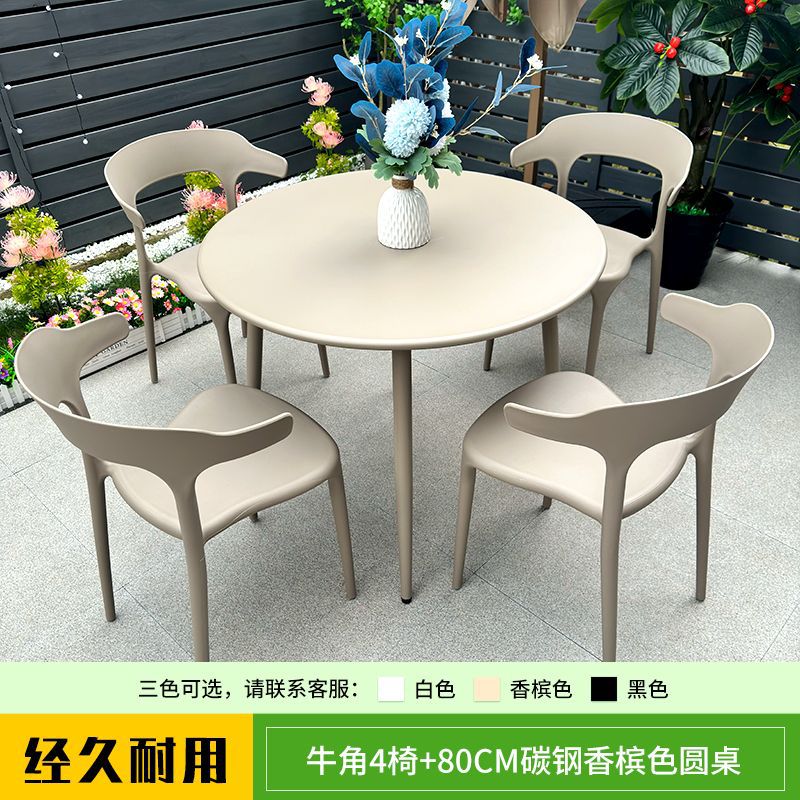 • 80 샴페인 컬러 콘다리 카본 스틸 라운드 테이블 + 샴페인 컬러 혼 체어 X4