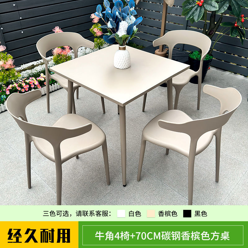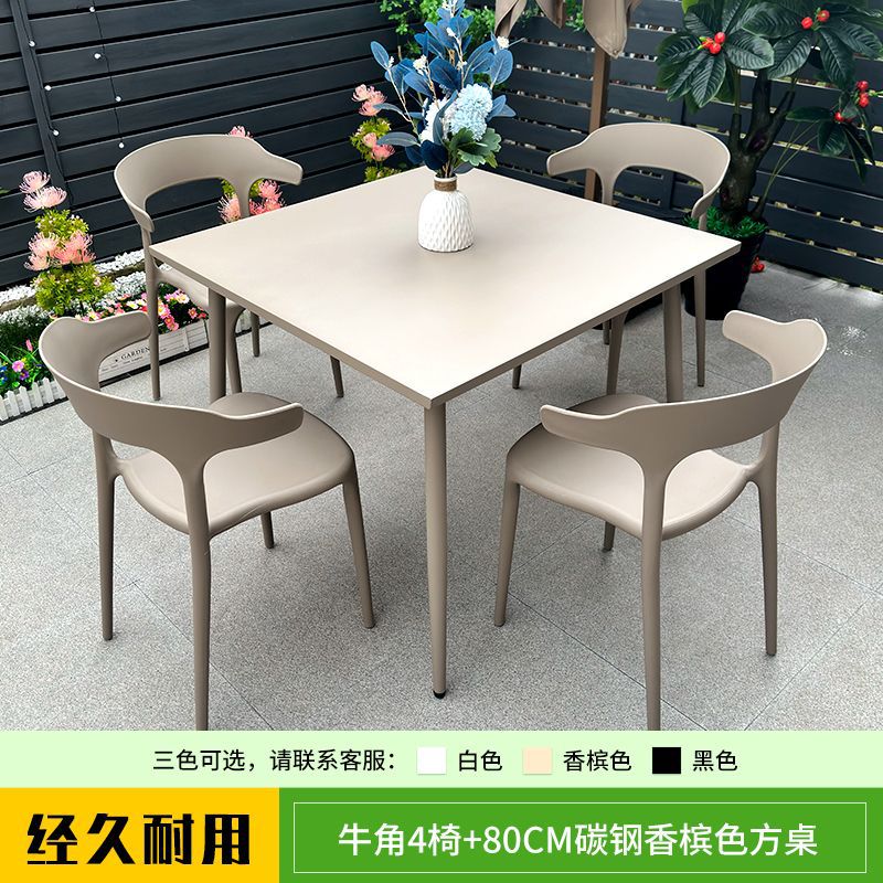 • 70 샴페인 컬러 콘다리 카본 스틸 스퀘어 테이블 + 샴페인 컬러 혼 체어 X4