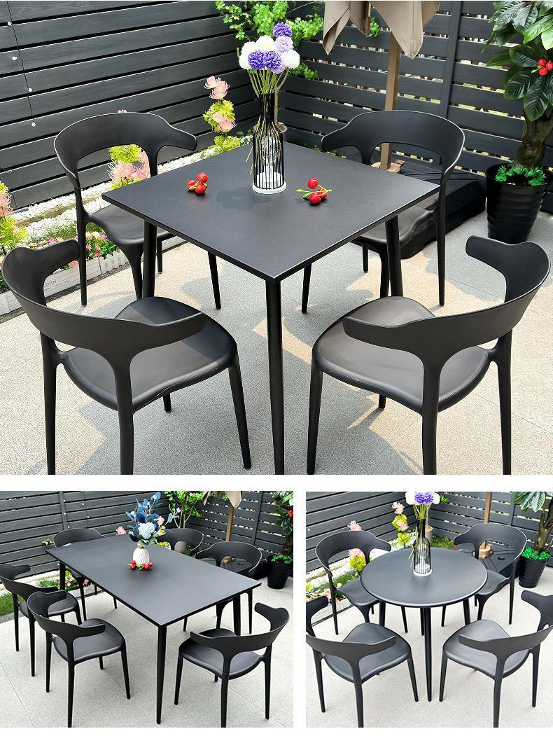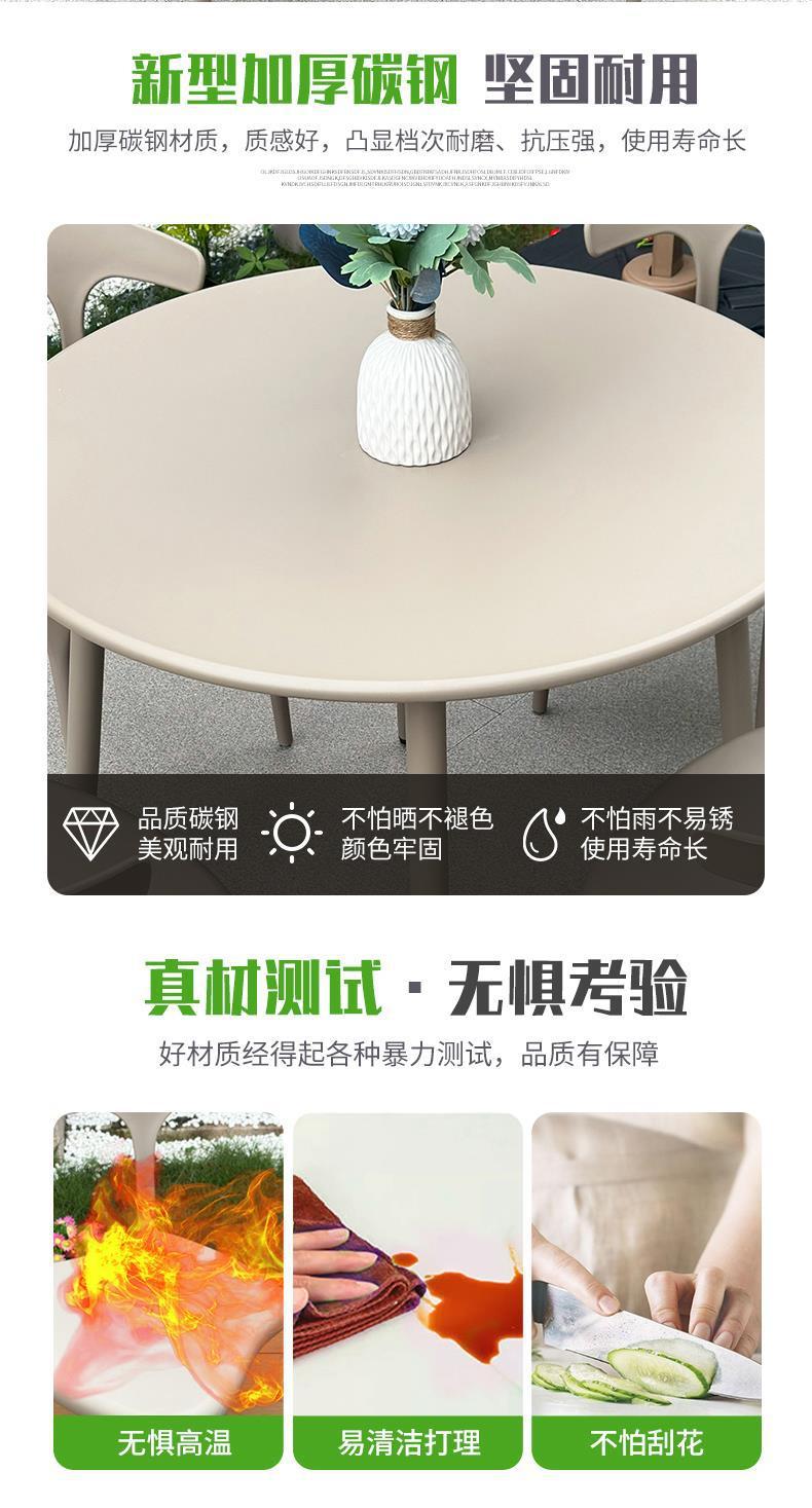 야외 인터넷 인기있는 테이블과 의자 세트 발코니 레저 커피 우유 차 가게 탄소 강철 라운드 테이블 레저 지역 코트야드 야외 식사 테이블