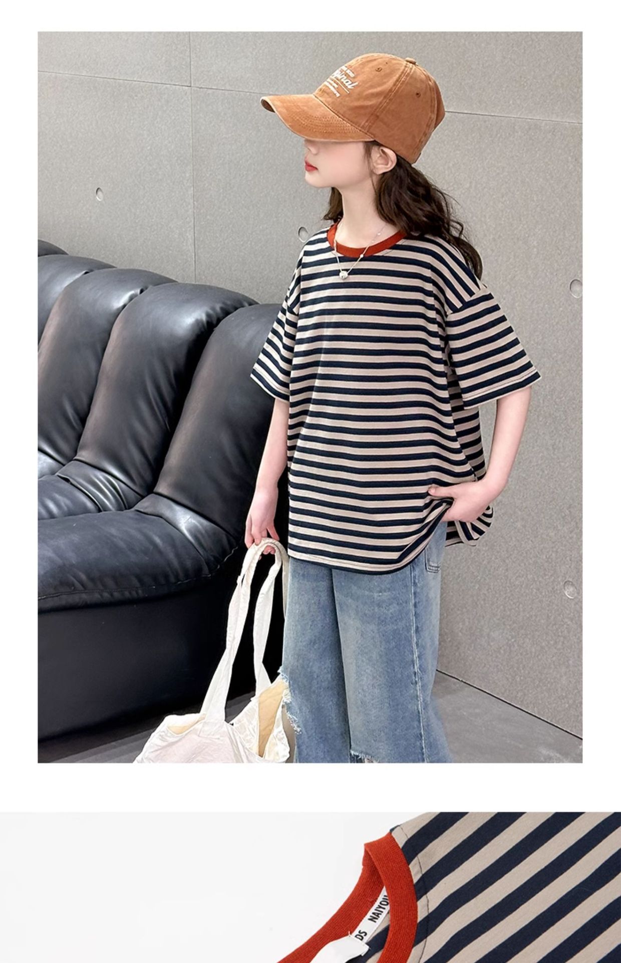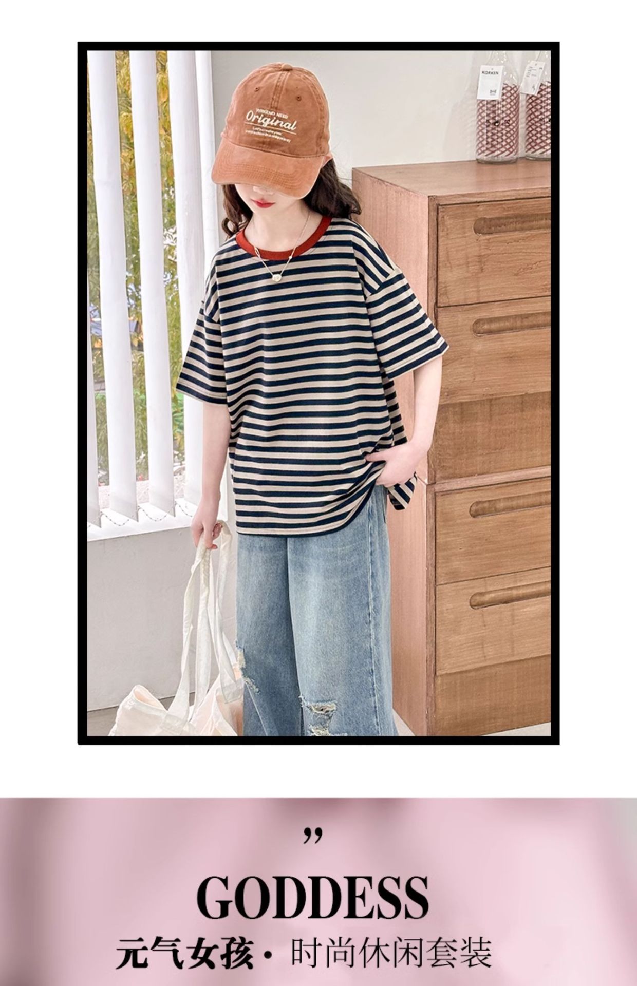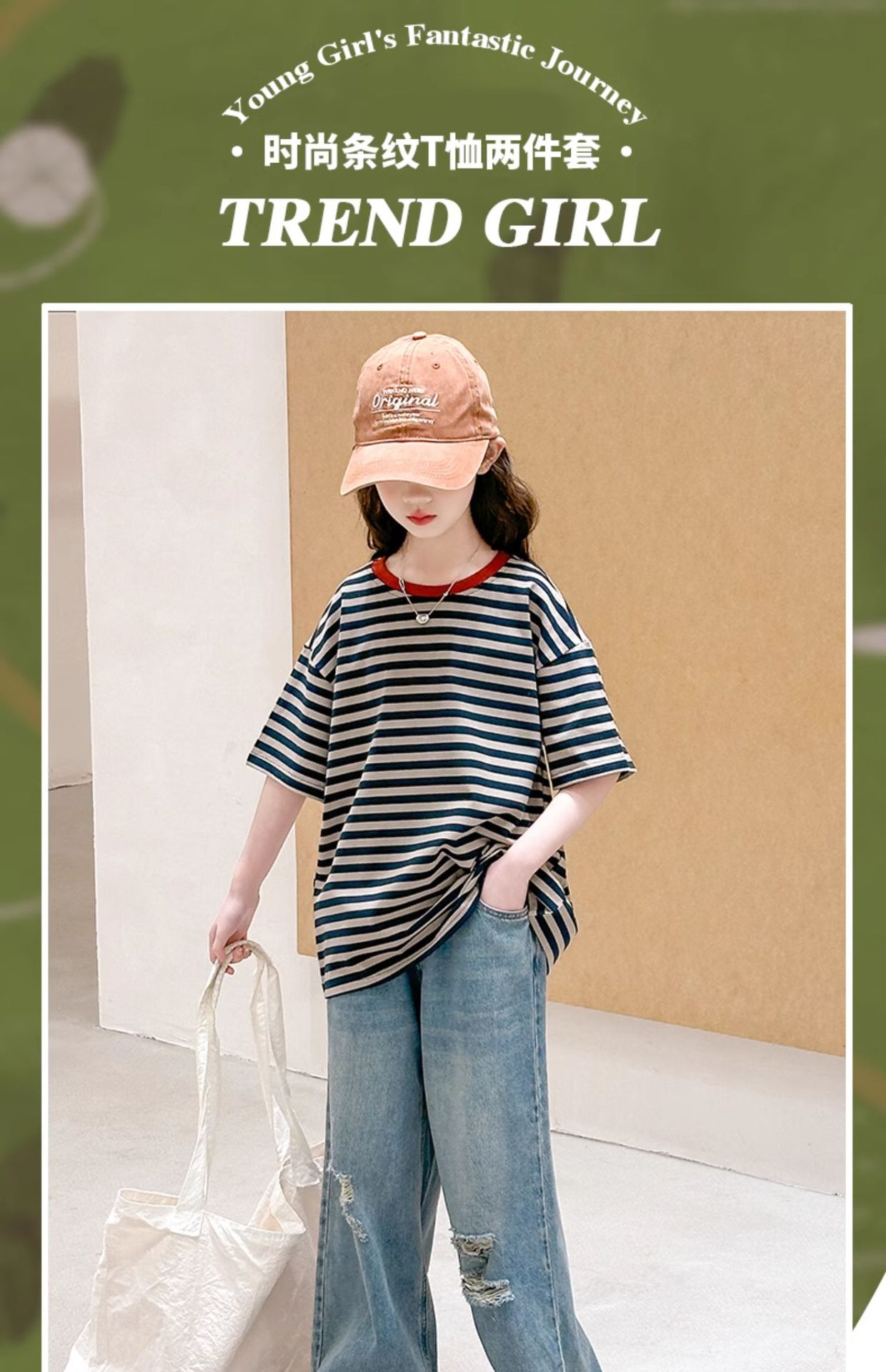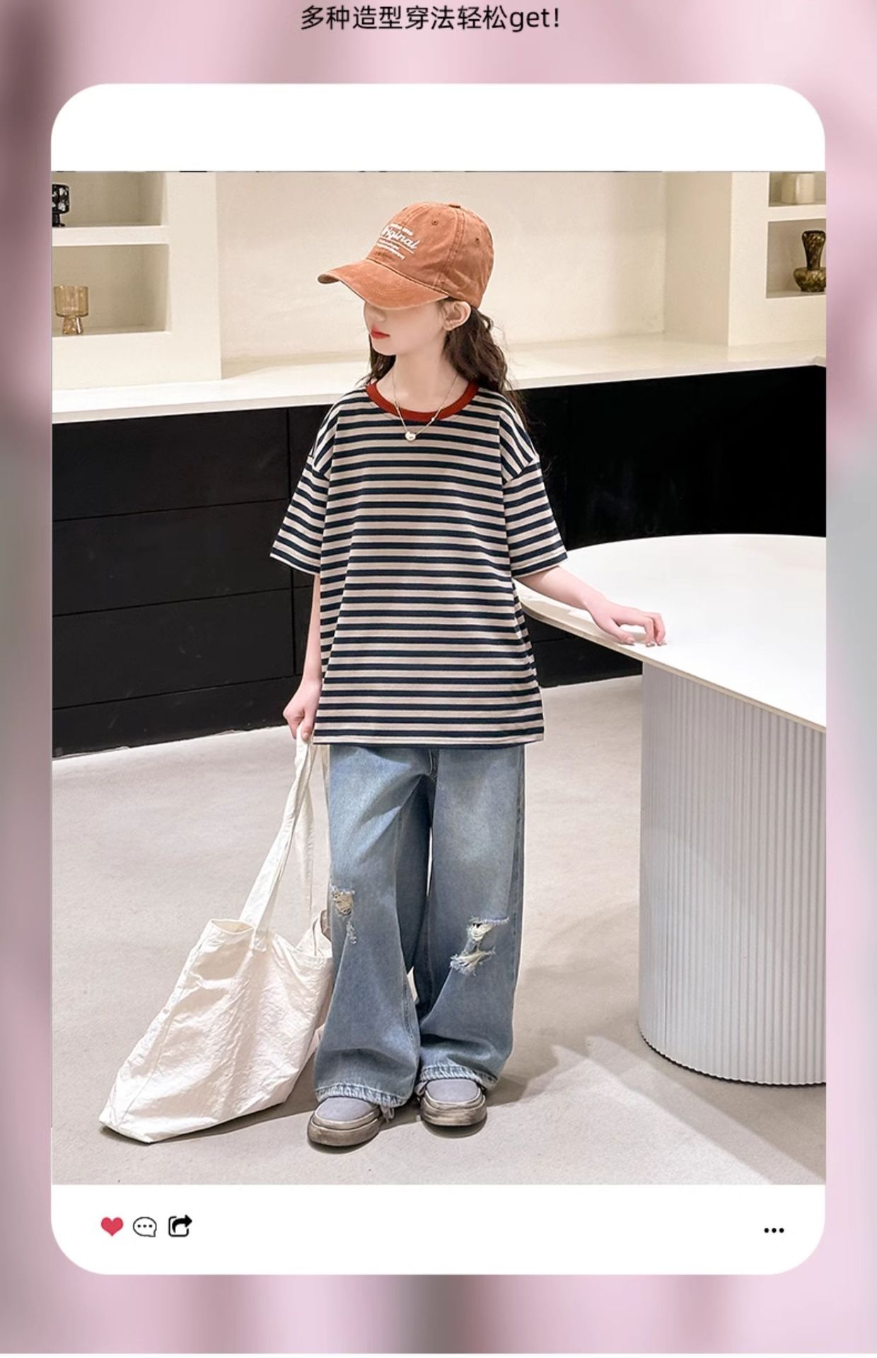 여자 반팔 세트 얇은 2025 새로운 어린이 소녀 여름 착용 여자 슈퍼 좋은 줄무늬 여름 원피스스토어 가기