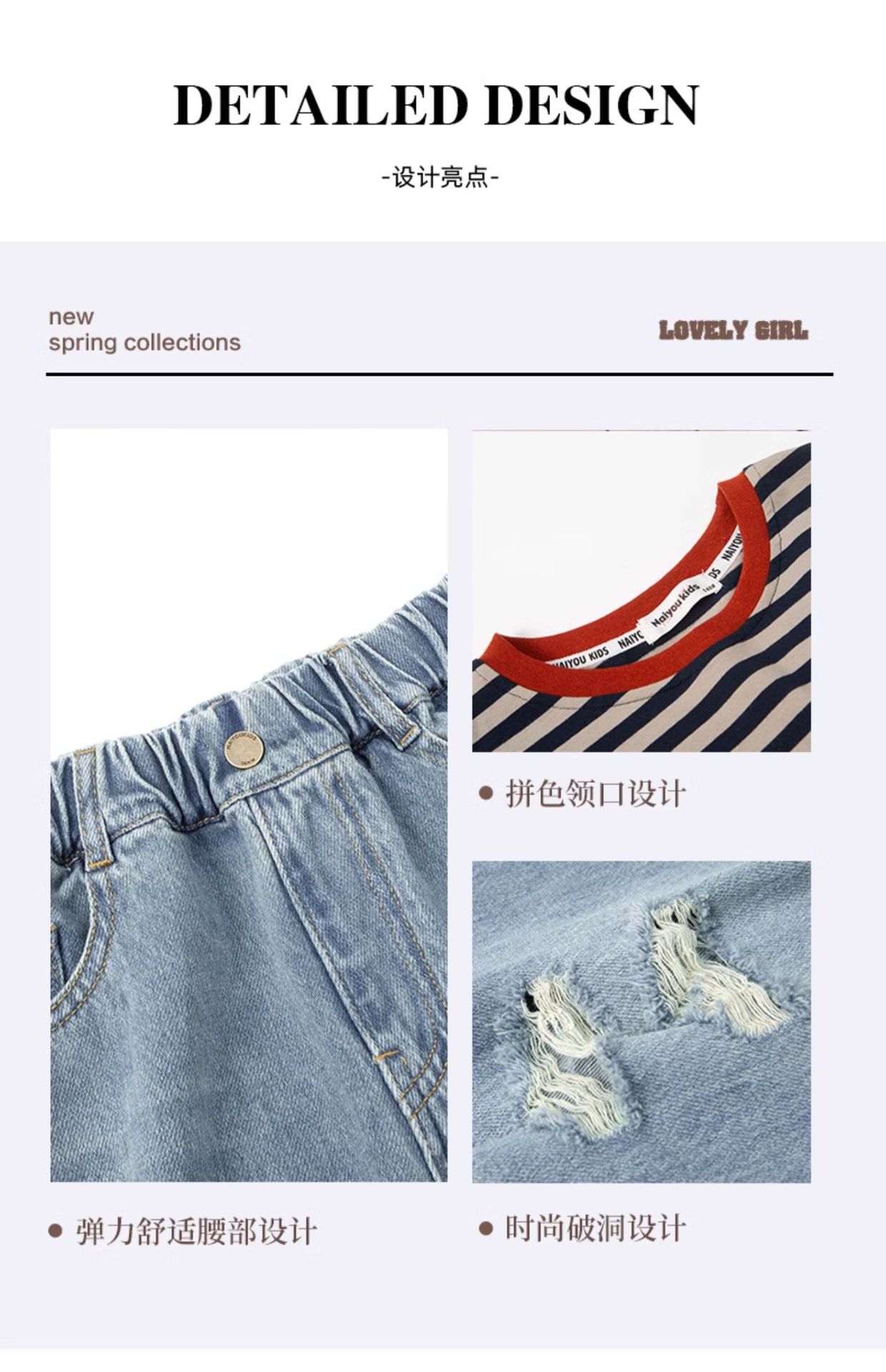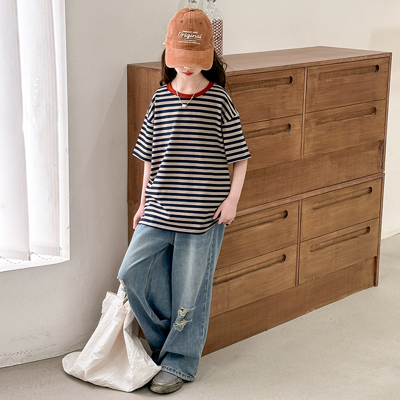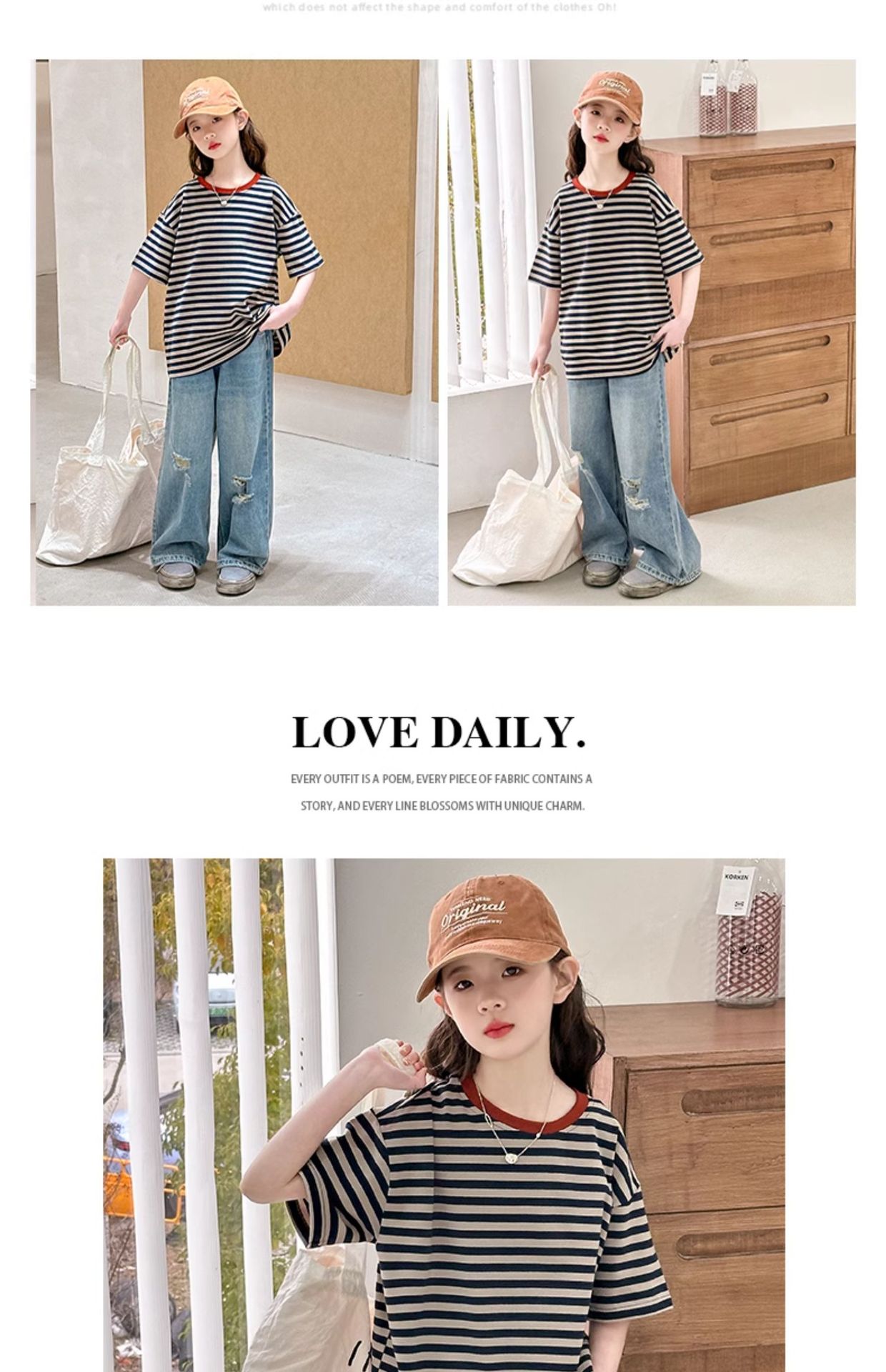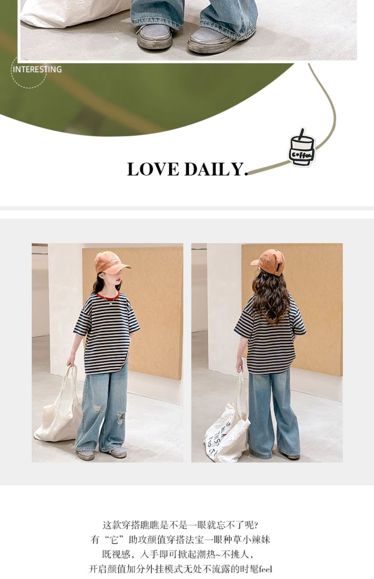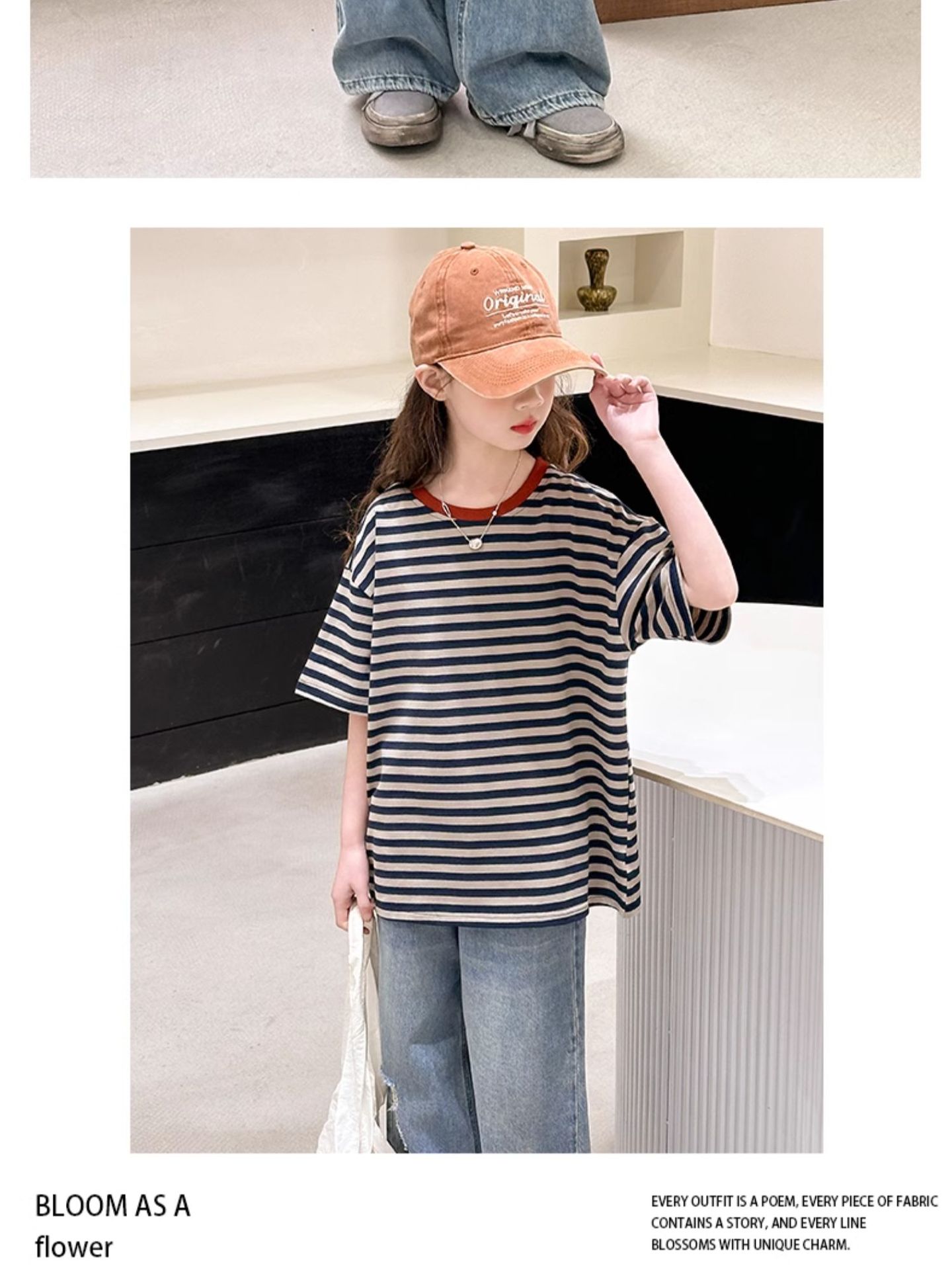 여자 반팔 세트 얇은 2025 새로운 어린이 소녀 여름 착용 여자 슈퍼 좋은 줄무늬 여름 원피스스토어 가기