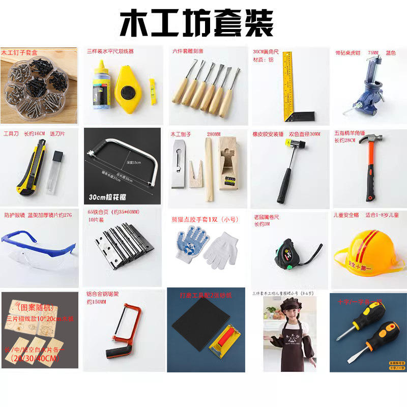 목공 작업장 세트 보호 헬멧 조각 보드 모자 도구 재료 패키지 유치원 수제 DIY스토어 가기