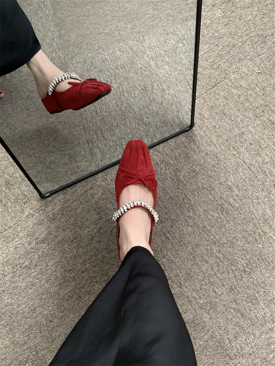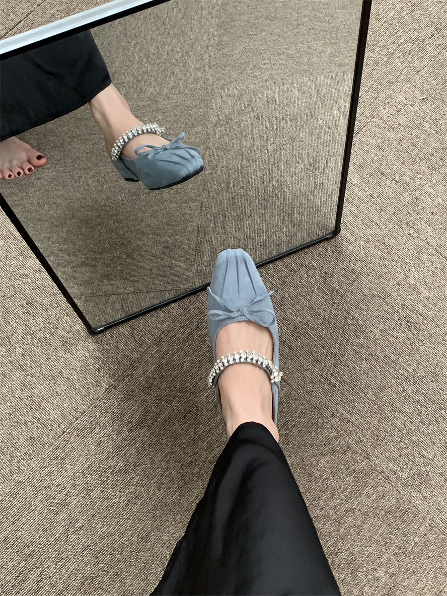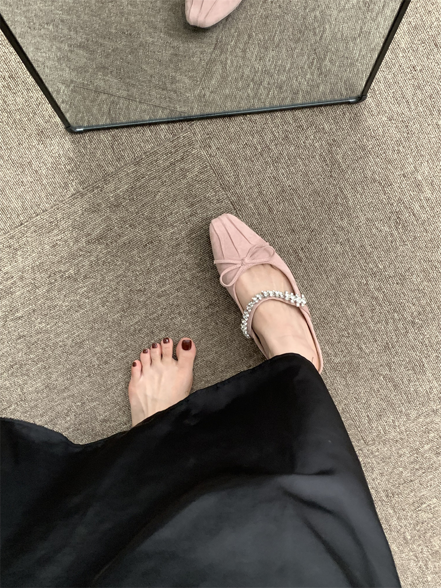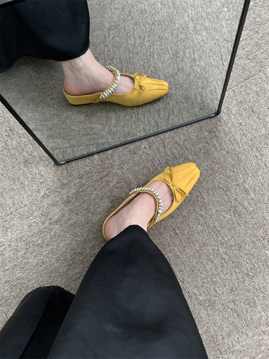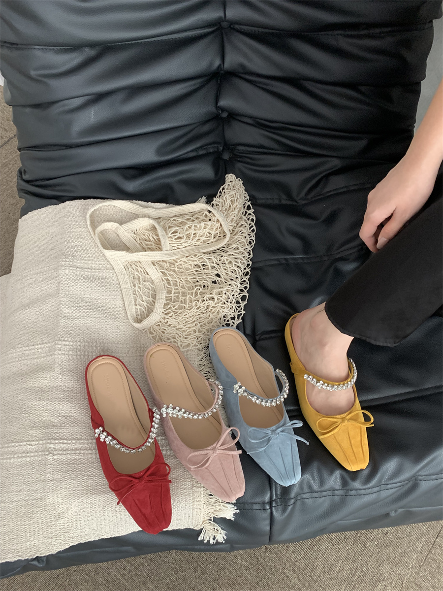 여성용 바오터우 하프 슬리퍼, 두꺼운 밑창 아우터웨어, 2025 봄 여름 스커트, 스퀘어 토 보우, 라인스톤 내부 키높이 슈즈스토어 가기