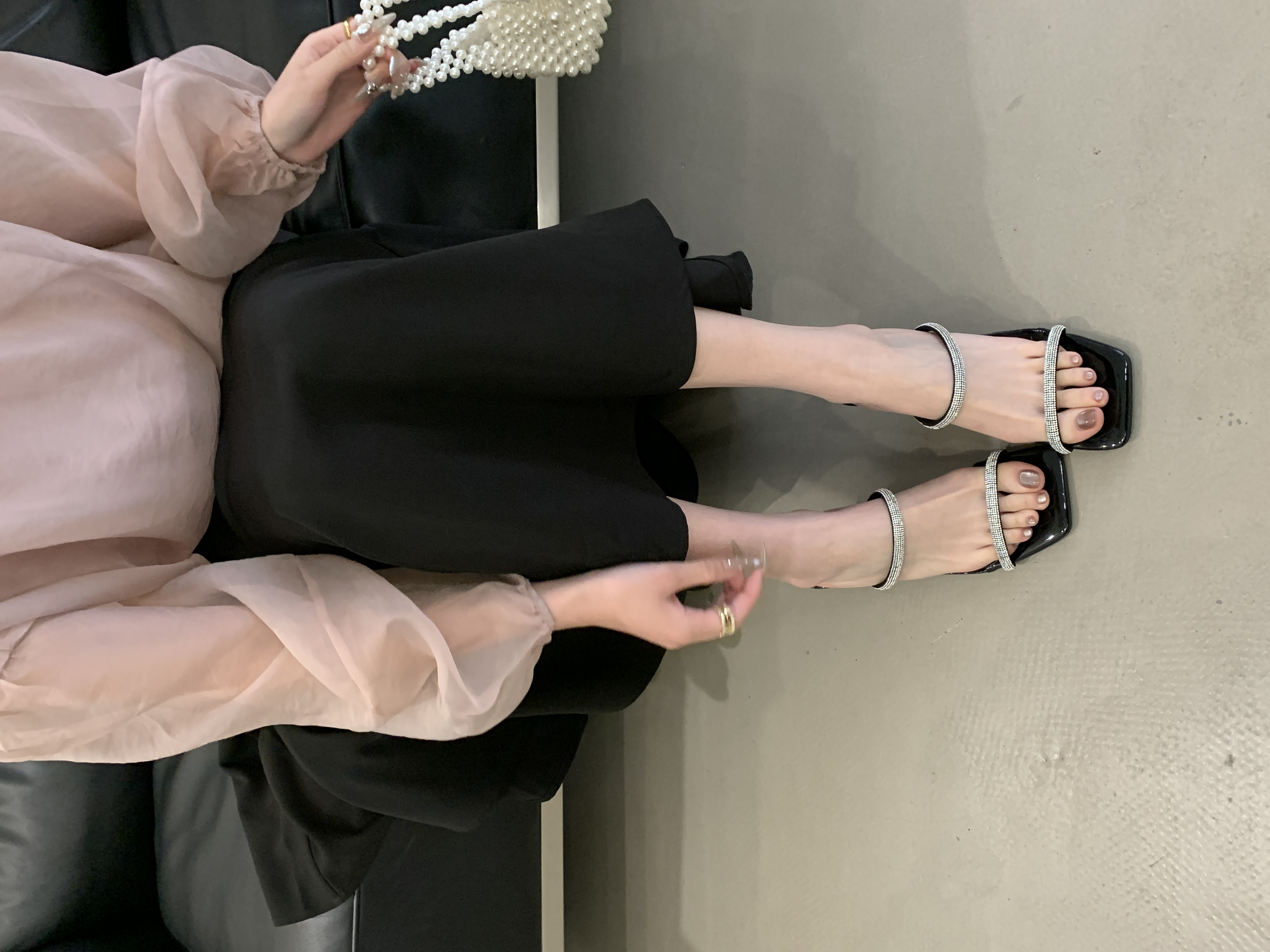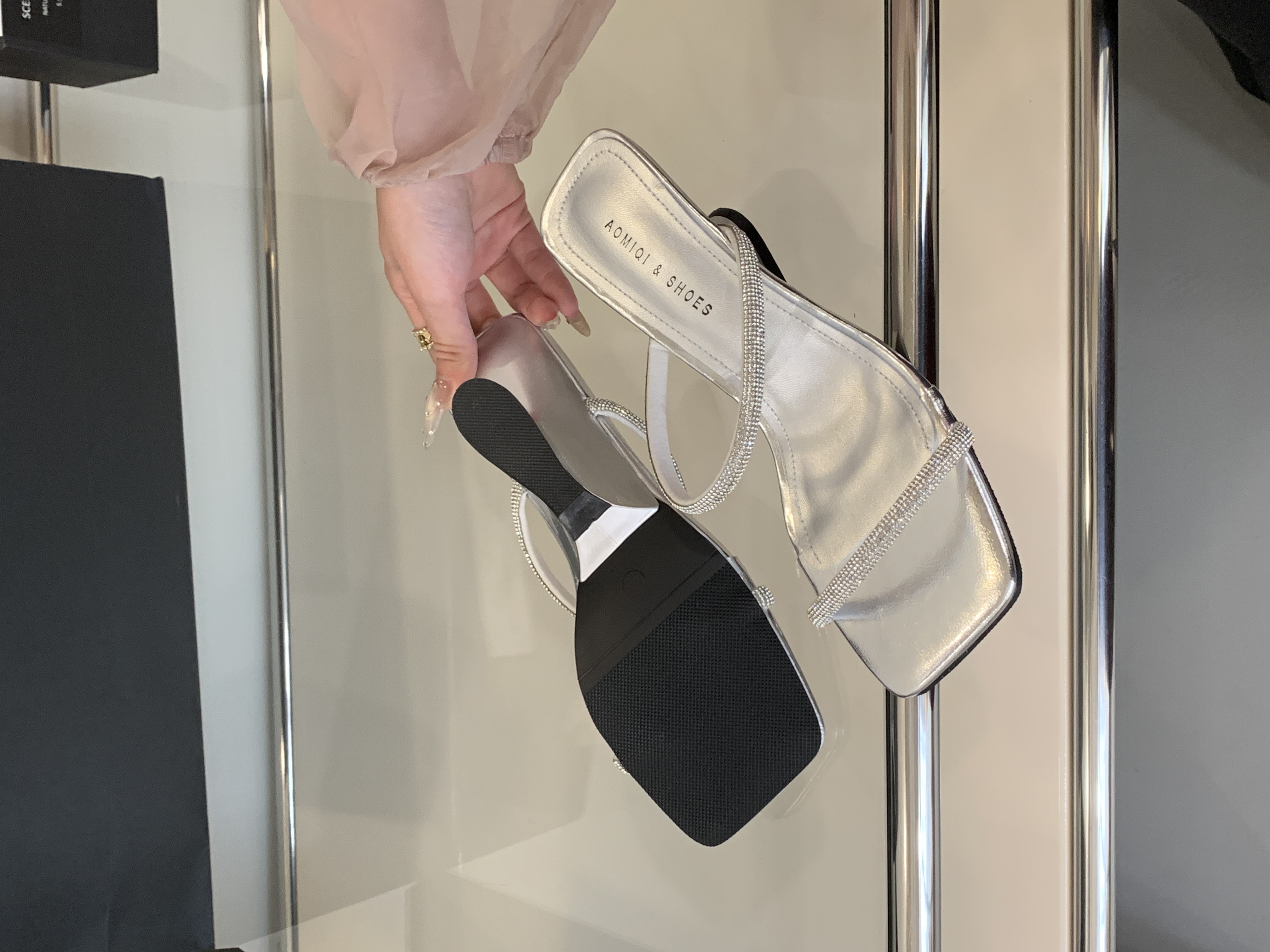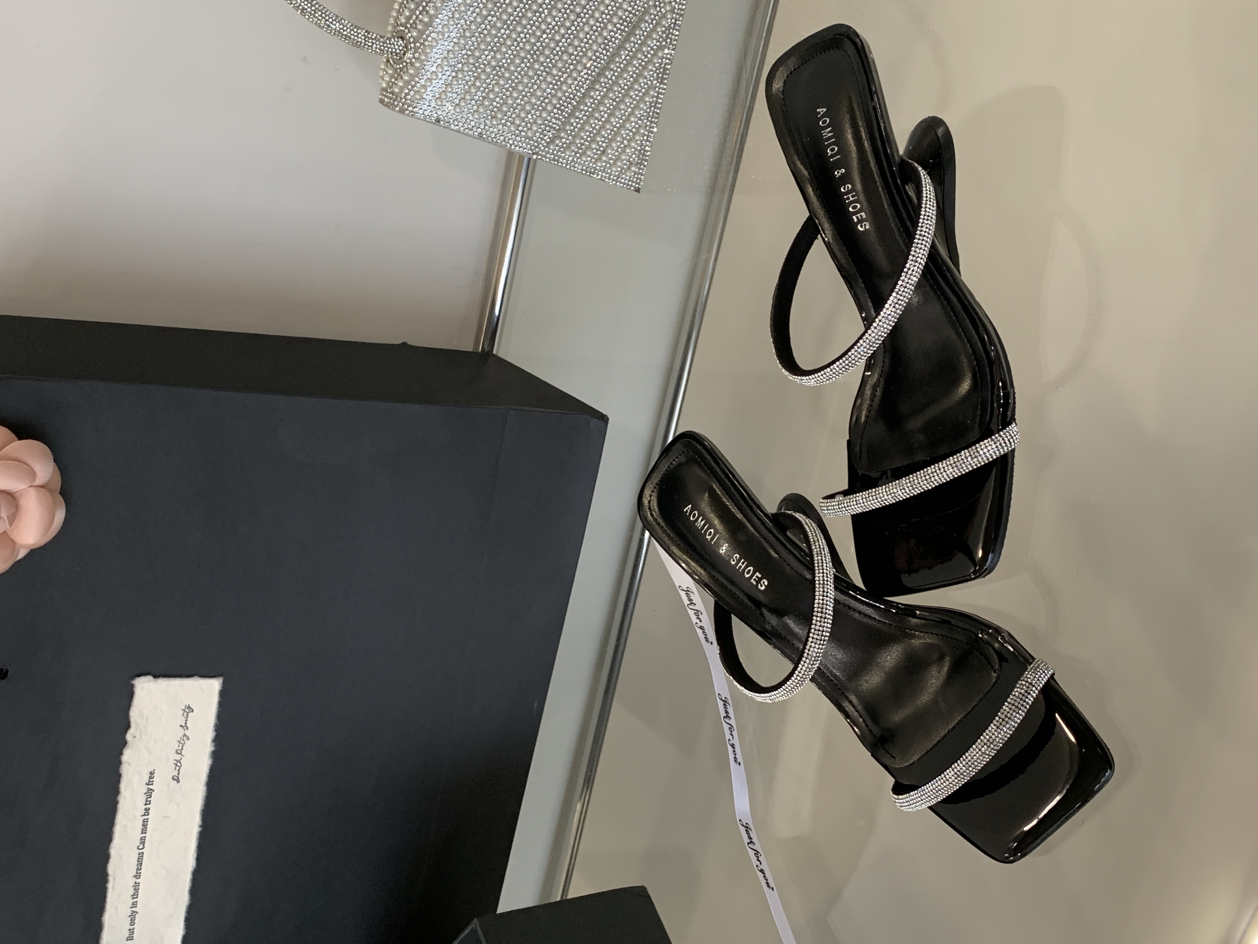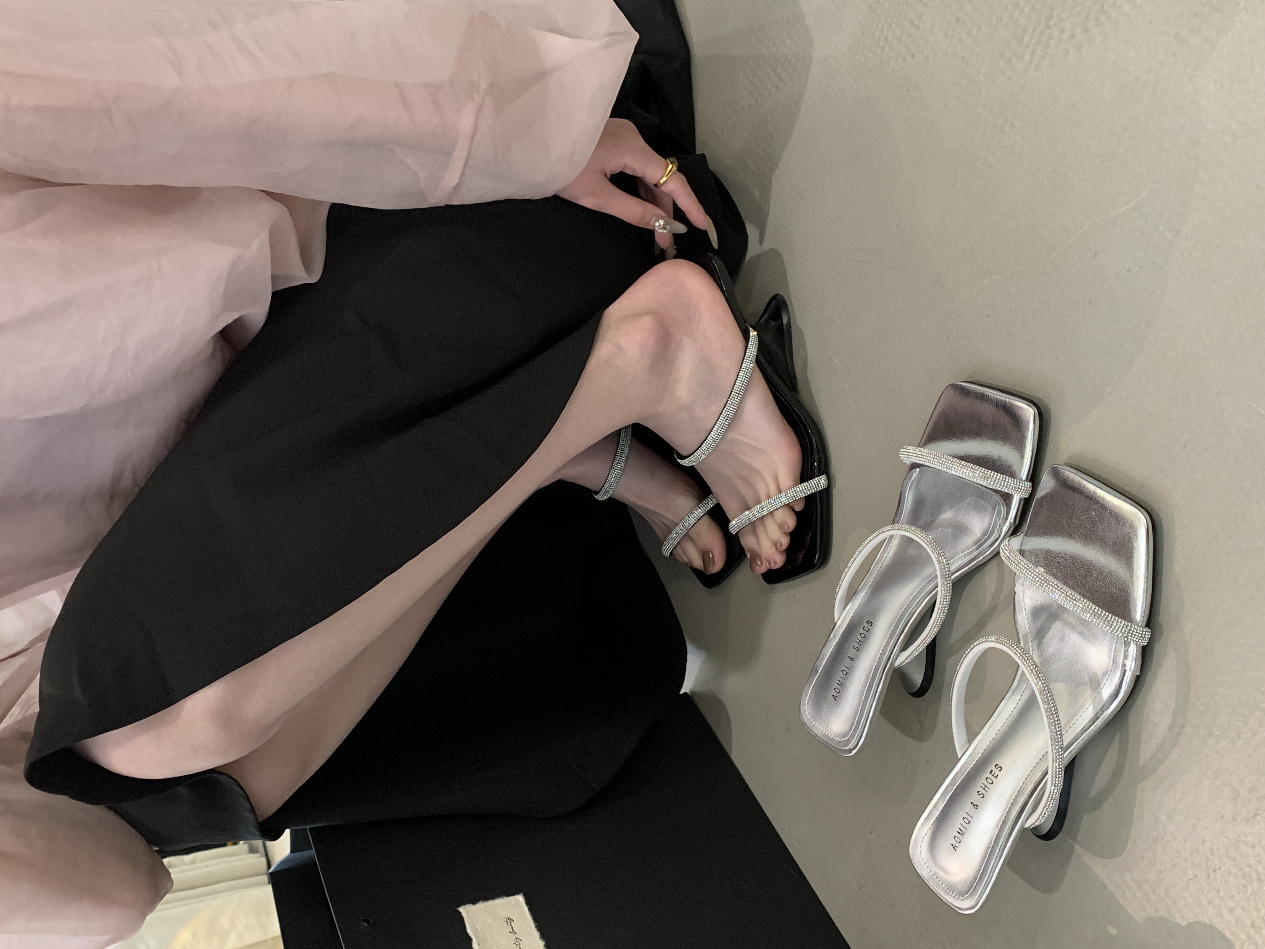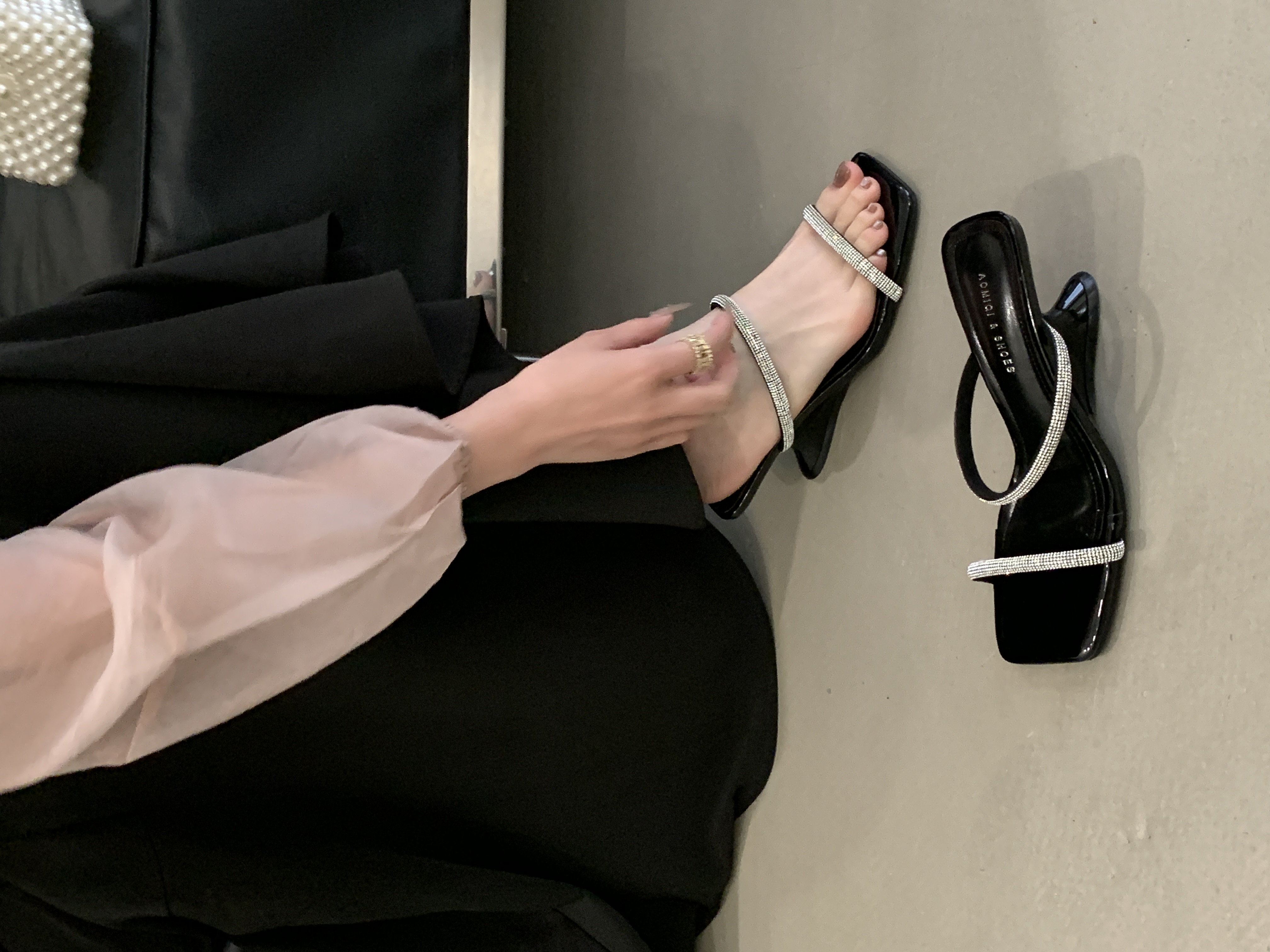 2025 새로운 여름 외출 웨지 라인스톤 샌들, 여성을위한 오픈 토 스퀘어 발가락 프랑스 하이힐스토어 가기