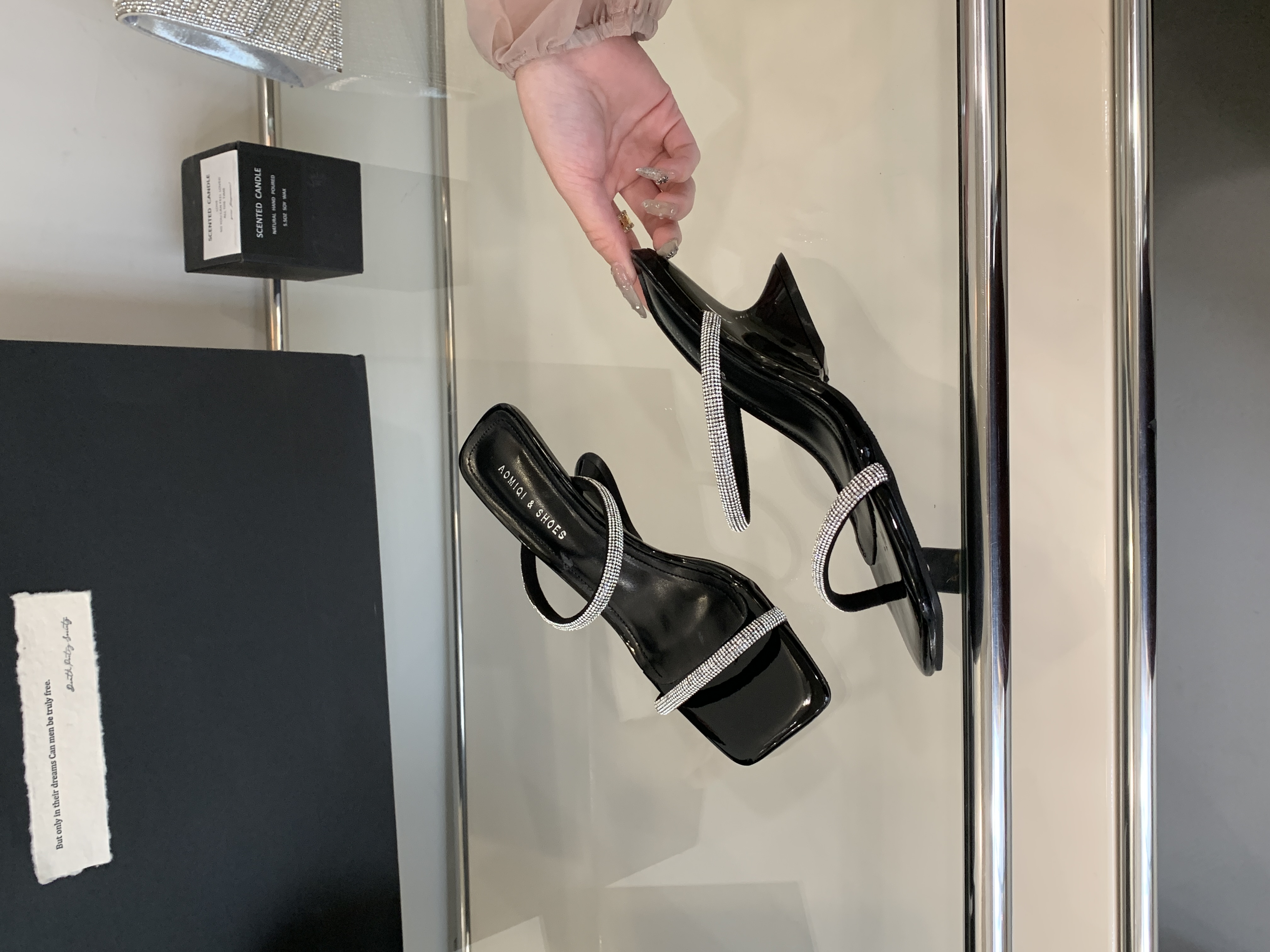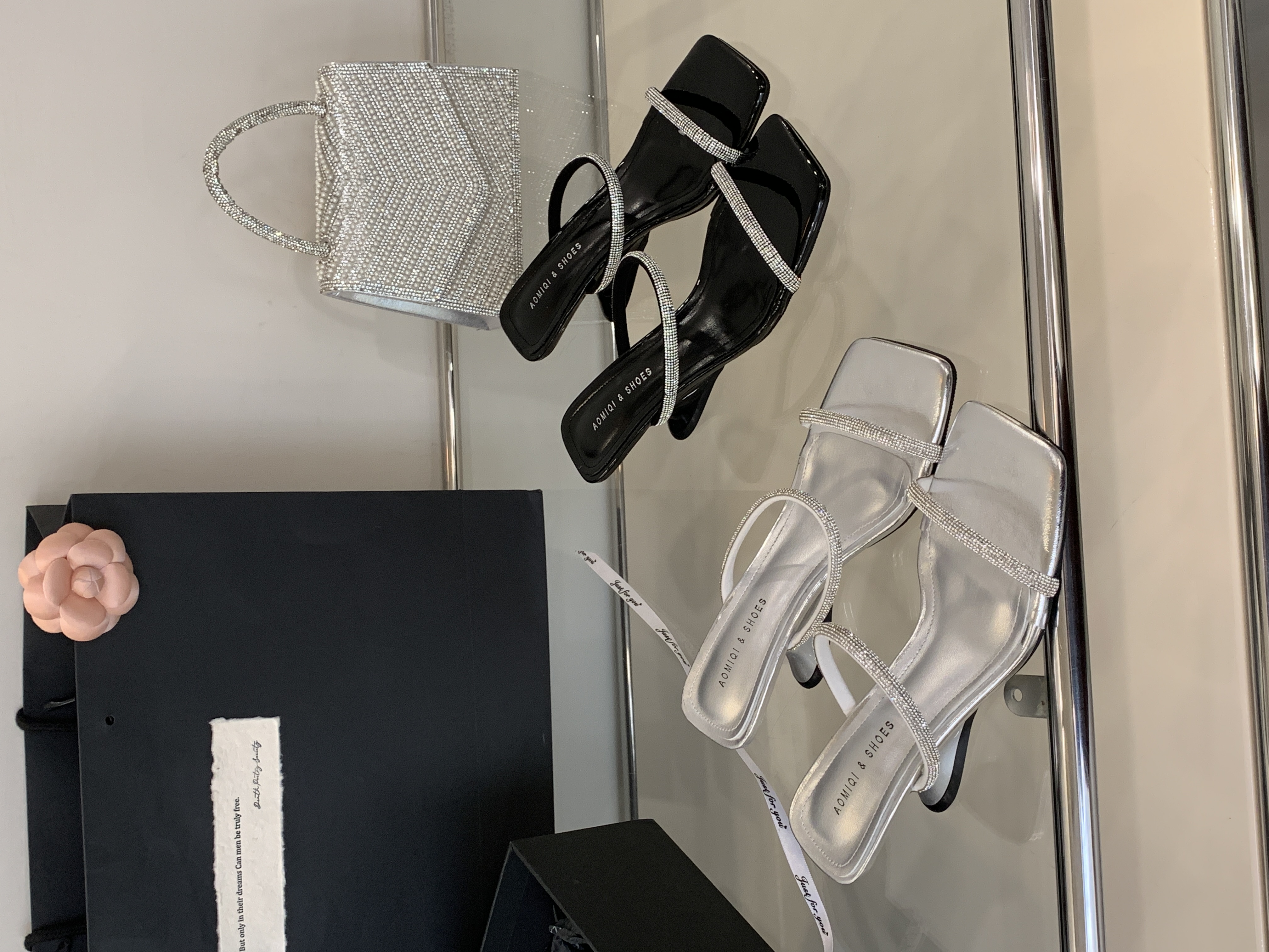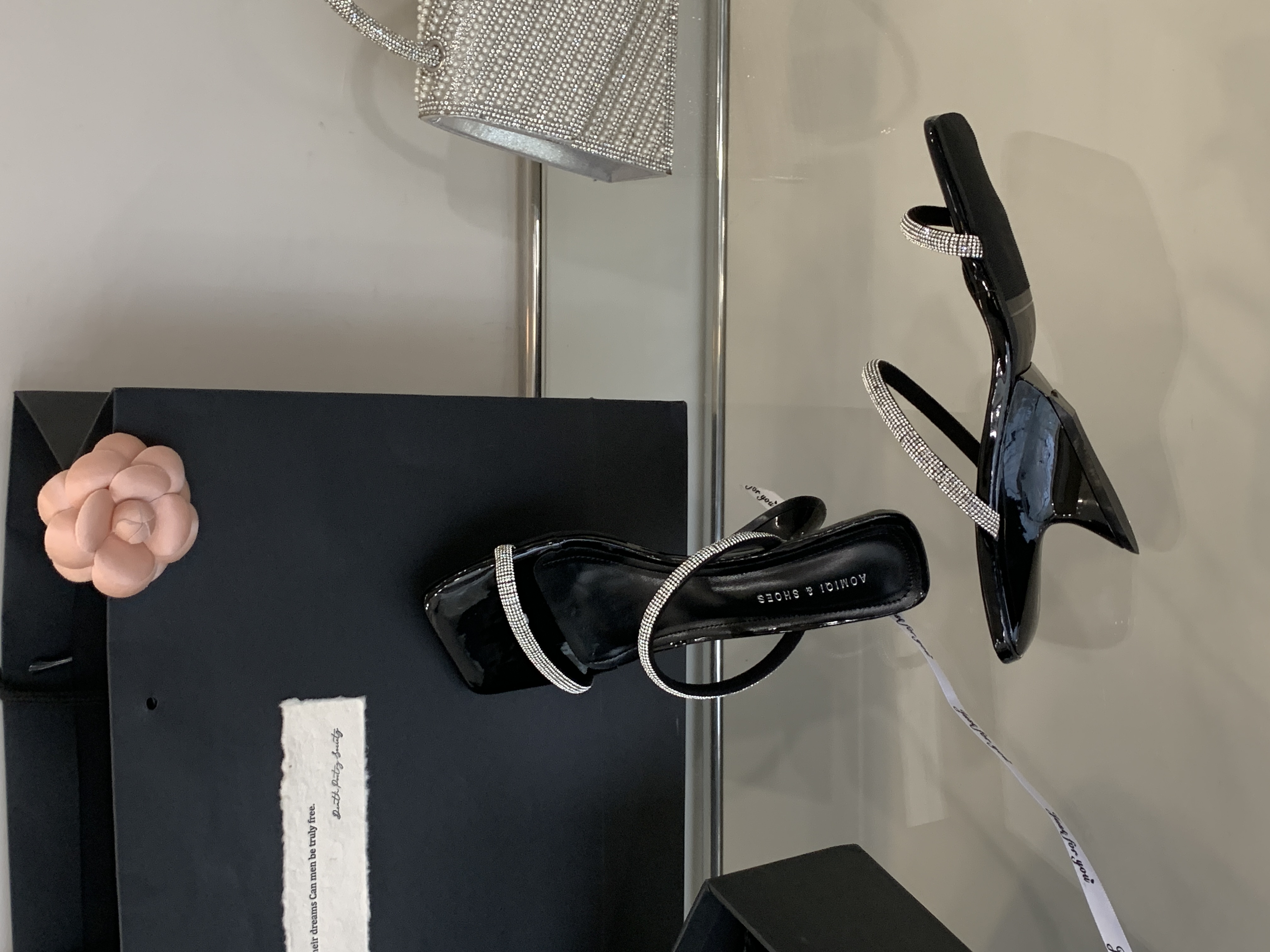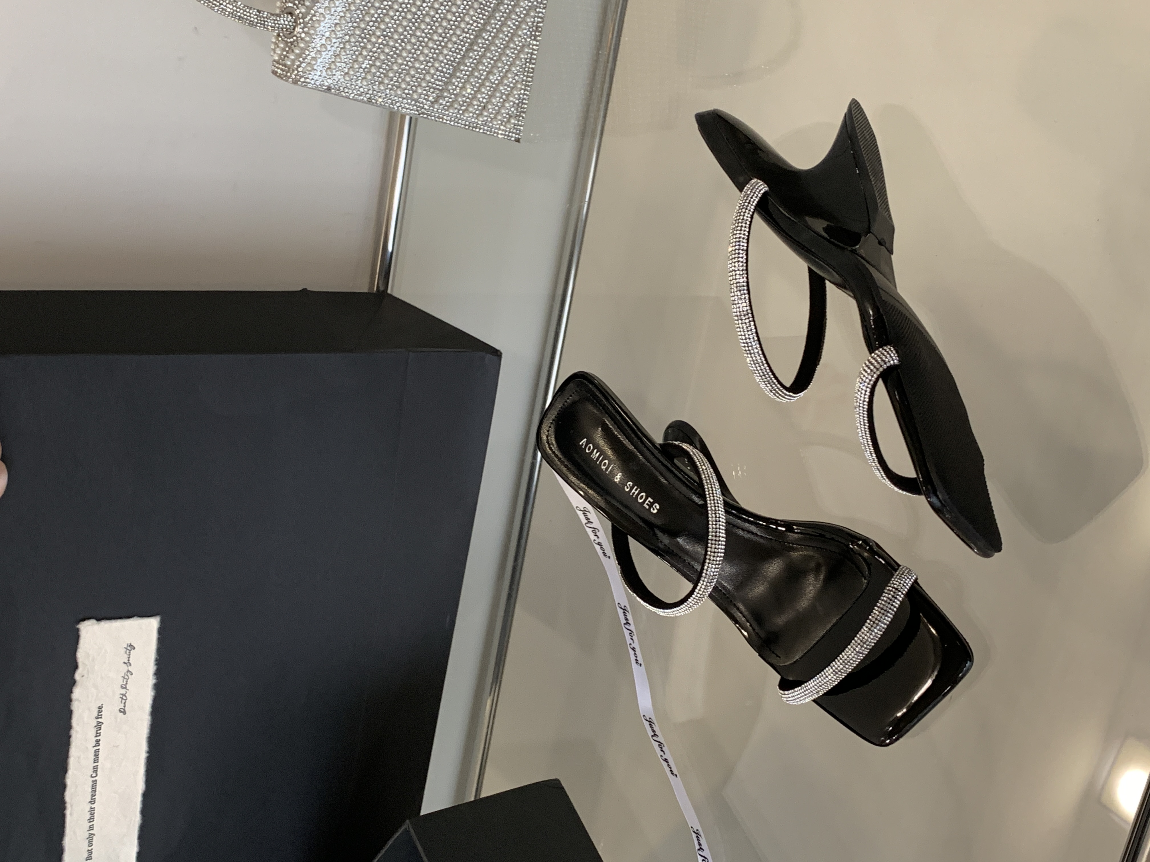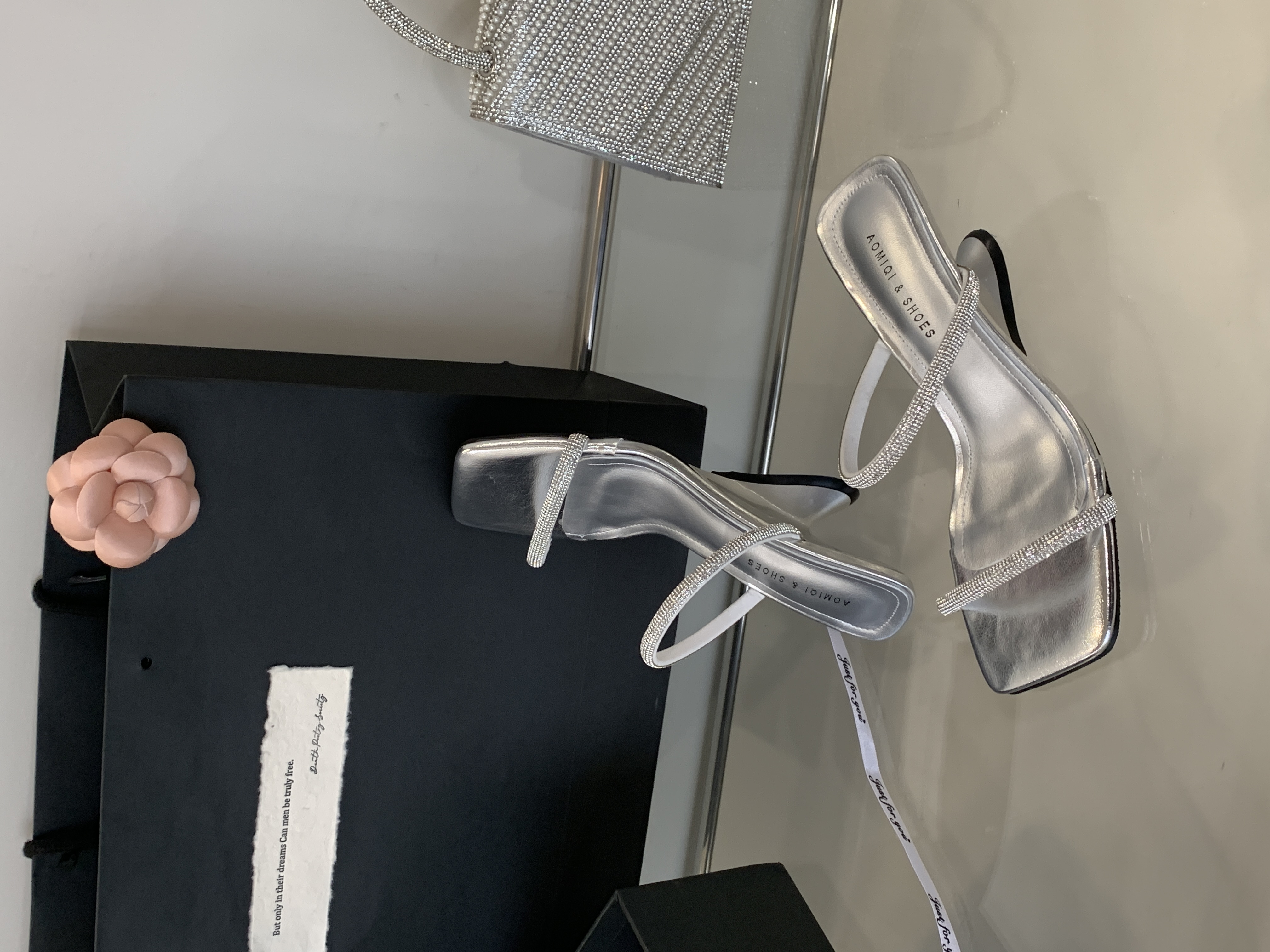 2025 새로운 여름 외출 웨지 라인스톤 샌들, 여성을위한 오픈 토 스퀘어 발가락 프랑스 하이힐스토어 가기